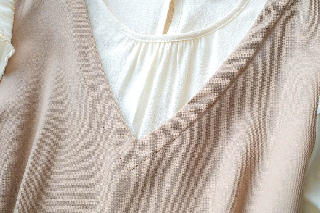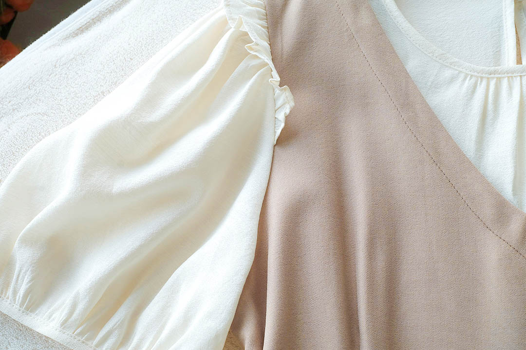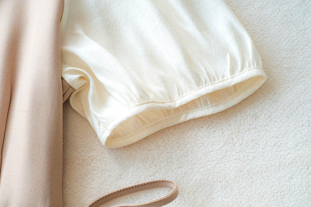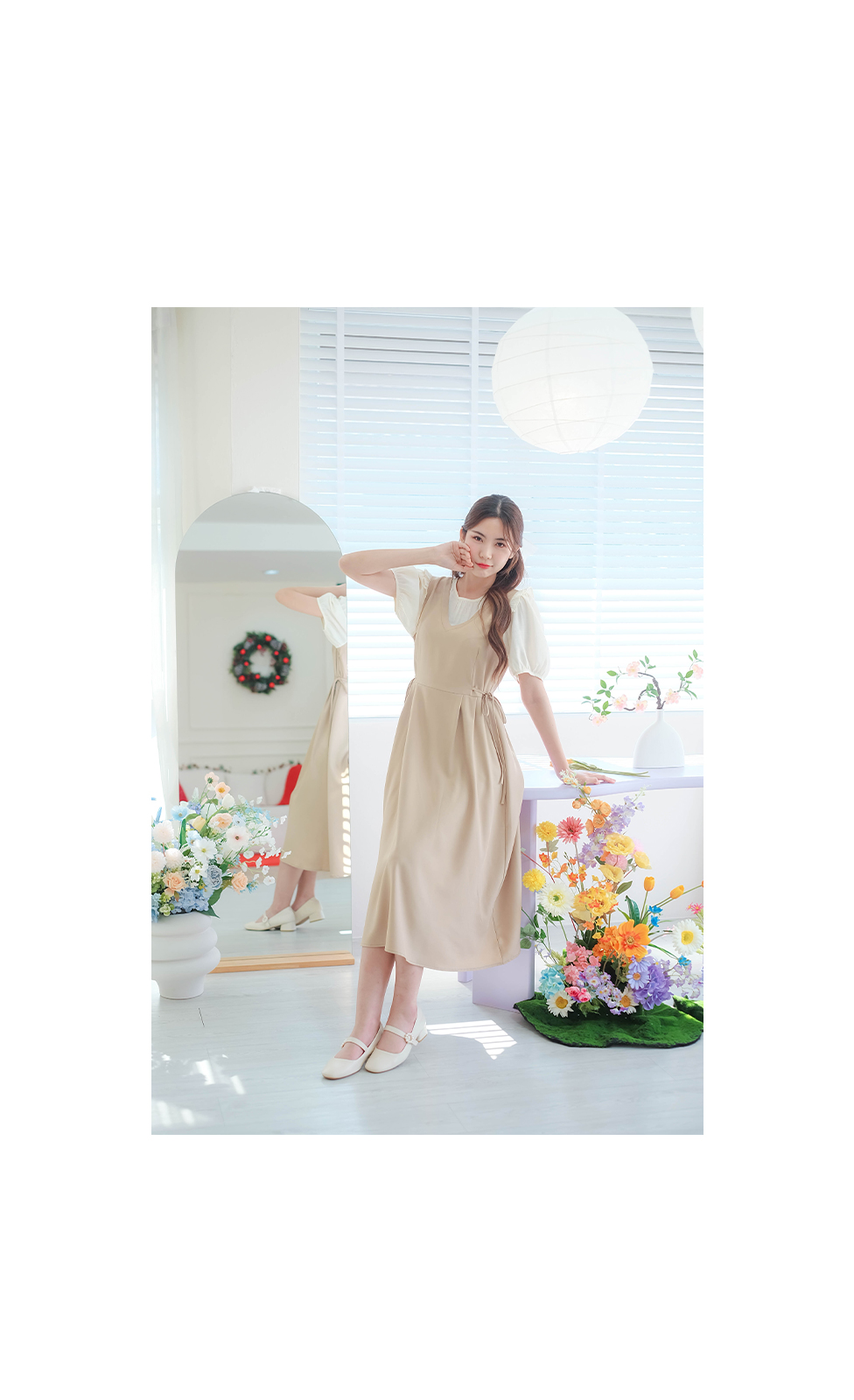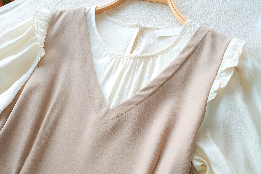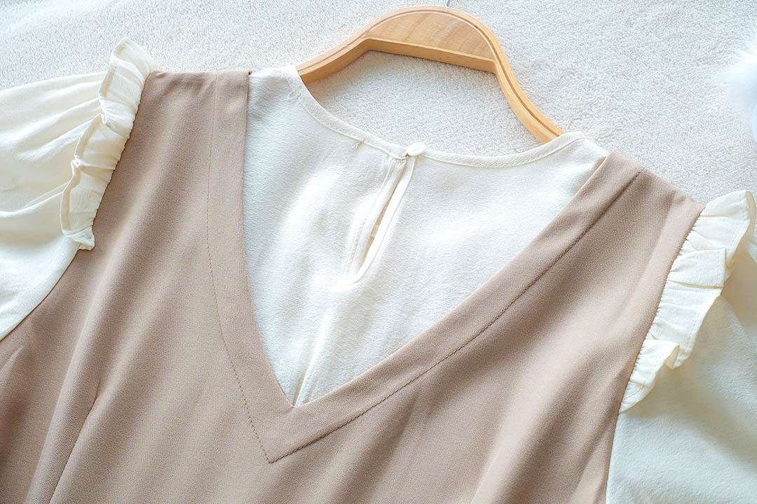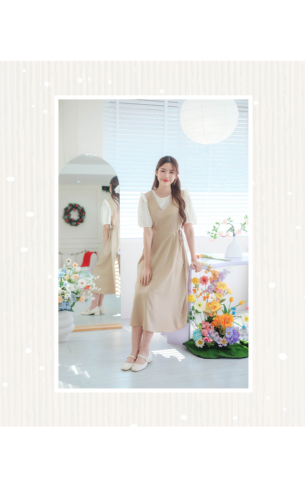 เกาหลีเกาใจ สไตส์น่ารัก ไม่อยากให้พลาดเลยค่า กับชุดเดรสแขนสั้นแบบทูโทน ดีไซน์เป็นเอี้ยมเย็บติดกับตัวเสื้อสีครีม ต้นแขนทำระบายเล็กๆ ช่วงเอวด้านข้างมีสายผูกเป็นโบว์น่ารักๆ มีซิปซ่อนด้านข้าง ชายกระโปรงปล่อยๆ ใส่ได้แบบตัวเดียวจบ ความยาวกำลังดี ทรงสวยใส่ง่าย แบบตัวเดียวอยู่จริงๆ จัดไปไม่ผิกหวัง
