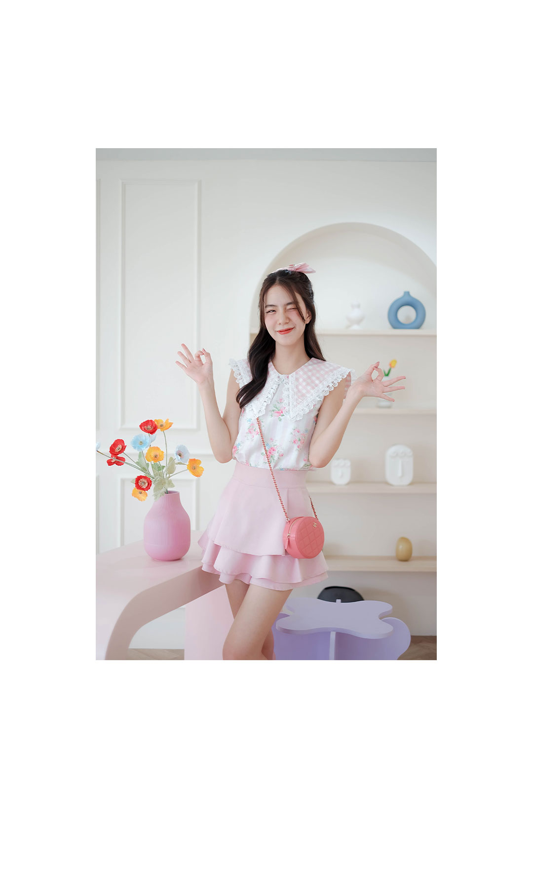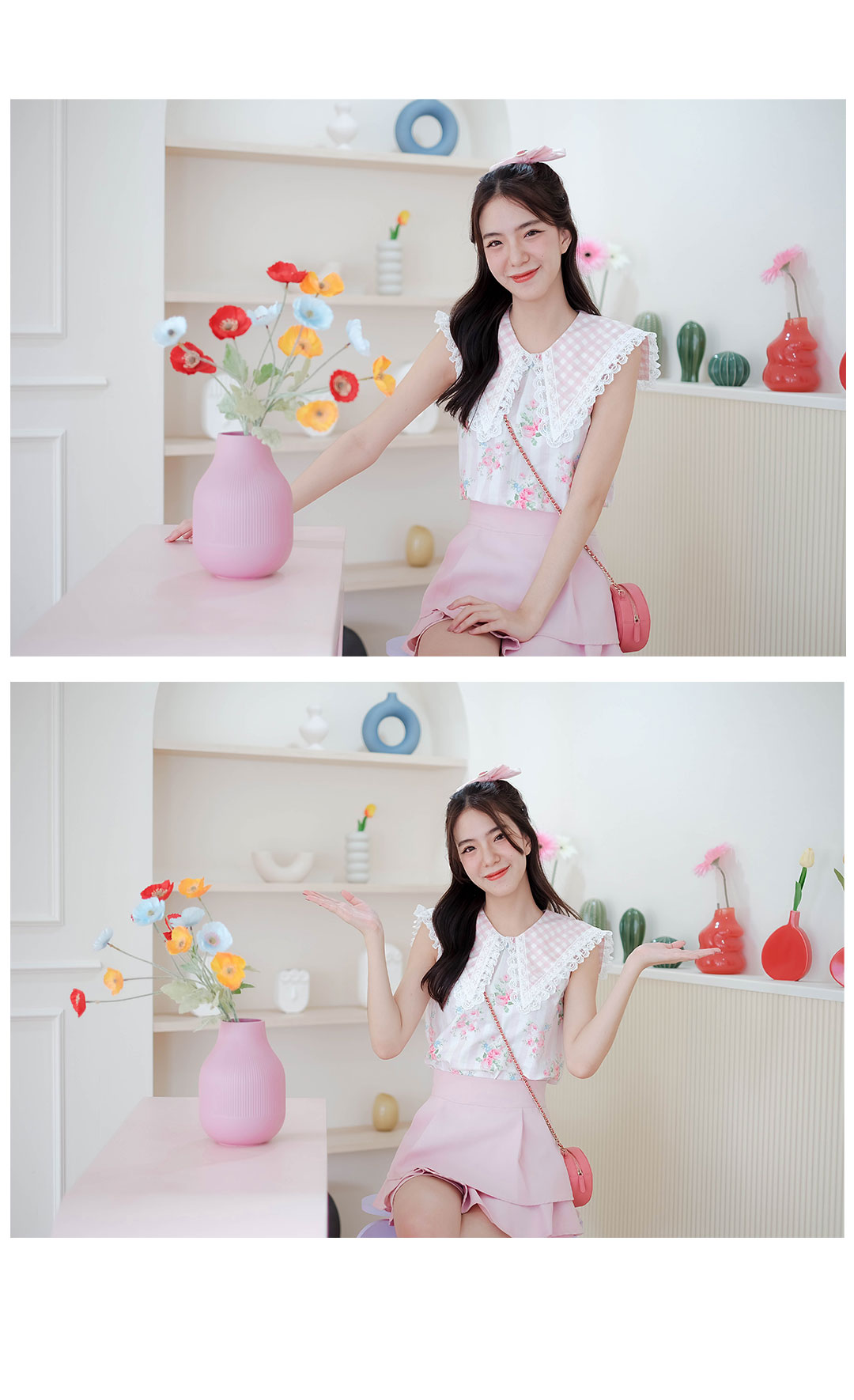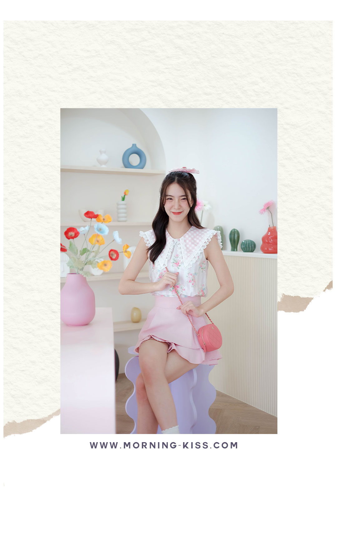 Must Have Item อากาศร้อนๆทำเสื้อแขนกุดน่ารักๆมาฝาก แบบสวนหวานน่ารักมากๆ ช่วงคอปกเป็นผ้าลายตารางสีชมพูสลับขาวแต่งระบายด้วยผ้าลูกไม้สีขาว ตัวเสื้อเป็นลายริ้วขาวสลับชมพูงานปริ้นลายดอกไม้หวานๆ ลุคสดใส ดีเทลอัดแน่นเลย รุ่นนี้ไม่ใส่ซับใน ผ้าไม่บางเนื้อทึบไม่โป๊ แมทกับกระโปรงหรือกางเกง ได้หลากหลายโอกาสเลย