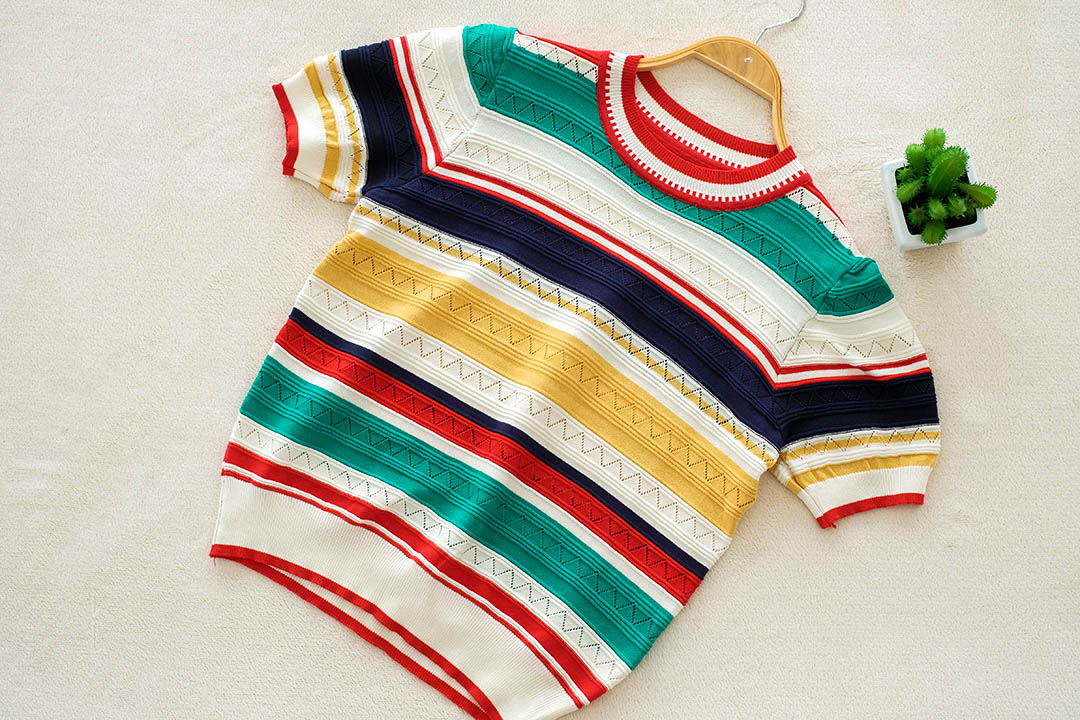 ไอเท็มนี้ ห้ามพลาด ใส่สบายสุดๆ เสื้อแขนสั้นทอลายขวางสลับโทนสีสดใส ผ้า knitting เนื้อดี ไม่หนาไม่บาง เนื้อกลางๆยืดหยุ่นได้เยอะ ทรงใส่สบายๆไม่รัดรูป สีสันสดใสโดดเด่น รับประกันว่าจะต้องติดใจ รุ่นนี้ซักแล้วไม่ต้องรีดเลย เนื้อผ้าดีจริงๆ แมทกับขาสั้นน่ารักเอาเรื่อง