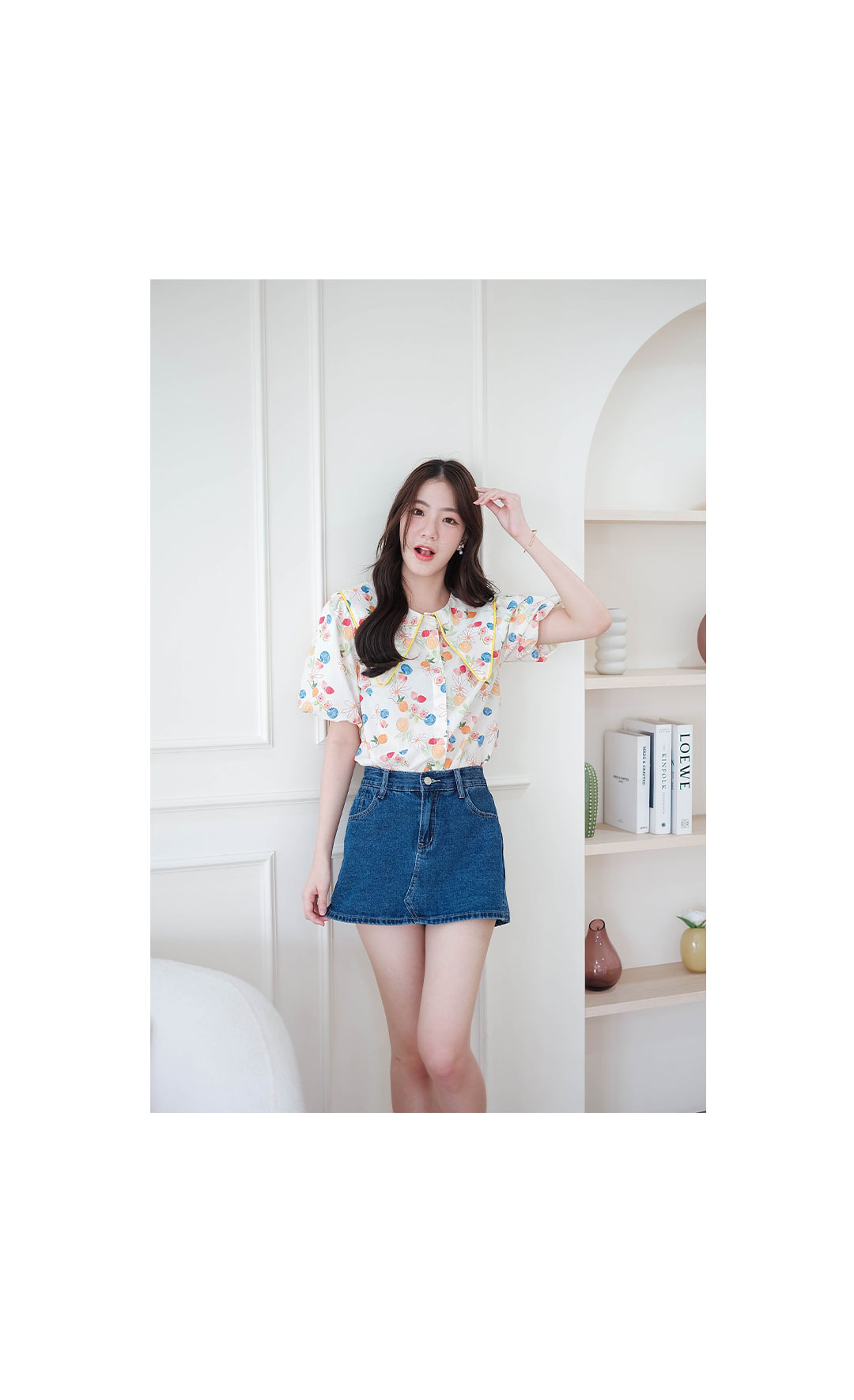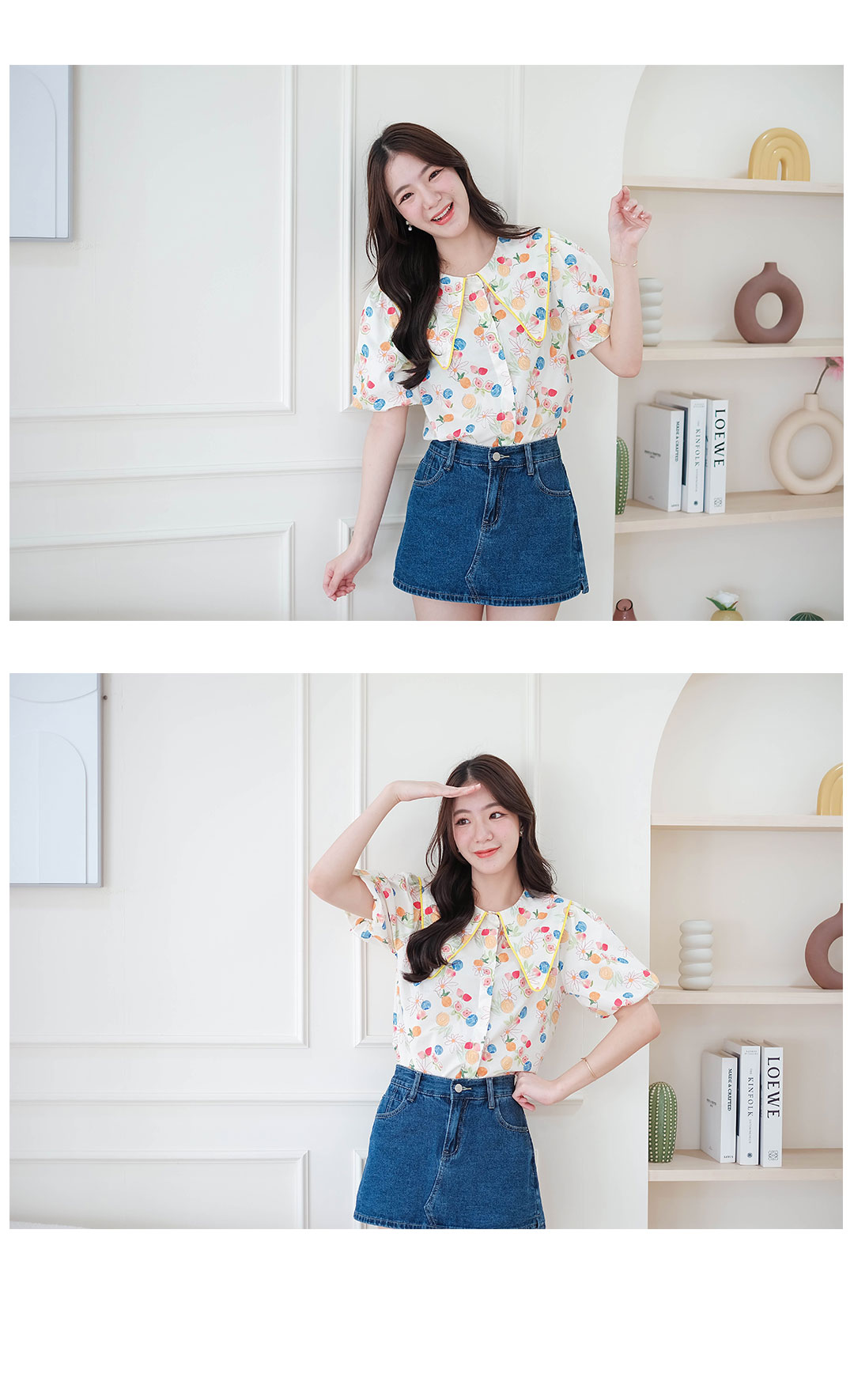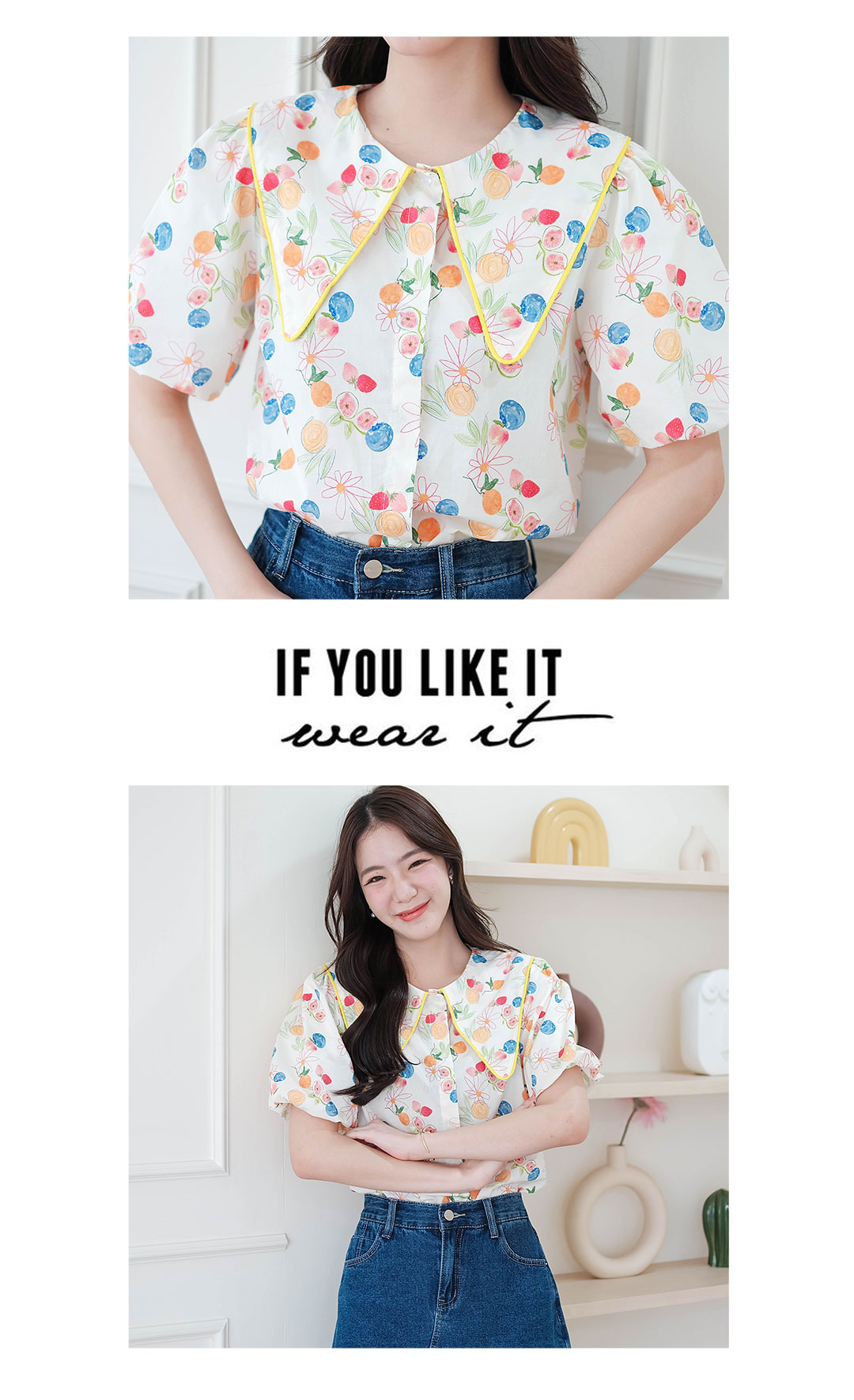 มาในแบบสดใสน่ารักๆกับเสื้อเชิ๊ตคอปกแบบแหลมกุ๊นขอบเหลือง งานปริ้นลายผ้าสีสดใสรอบตัว ทรงแขนบอลลูน มีกระดุมซ่อนด้านหน้า ใส่แล้วน่ารักสุดๆ ใส่ทำงานก็ได้ใส่เที่ยวก็น่ารัก รายการนี้แนะนำเลย