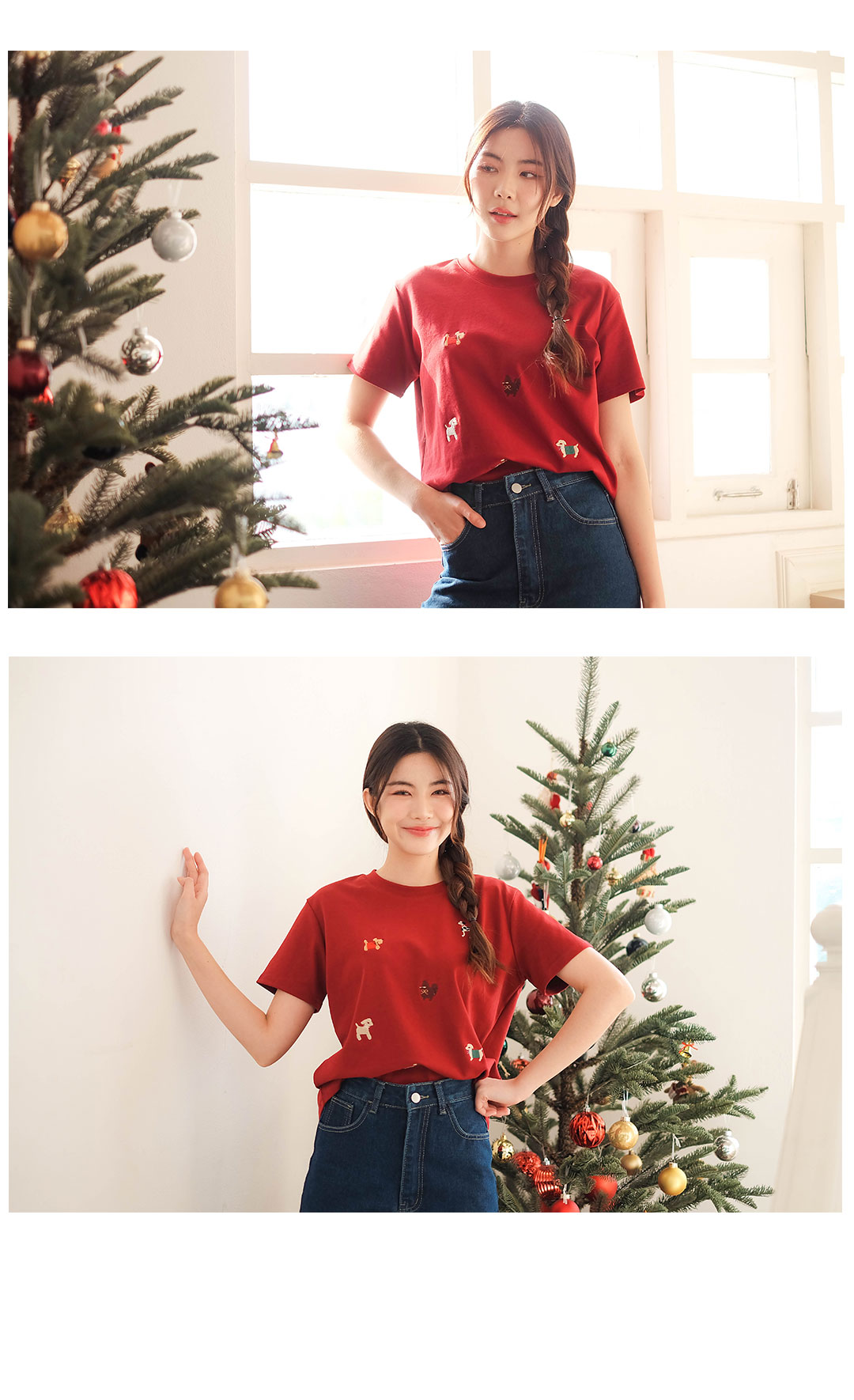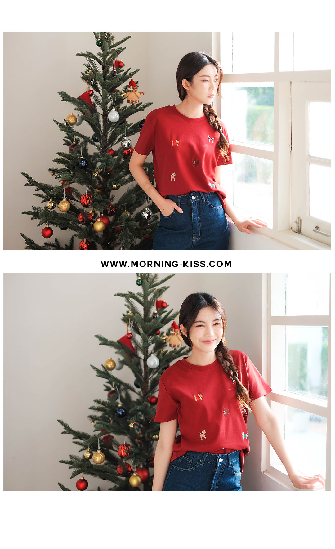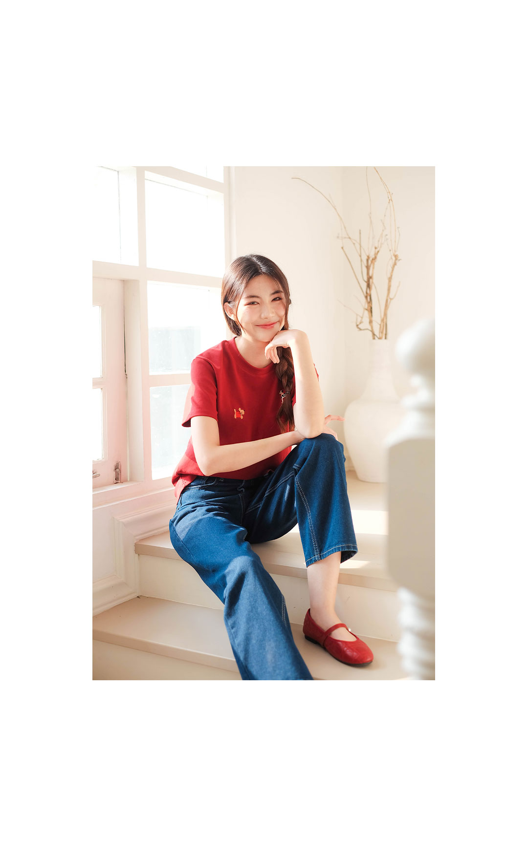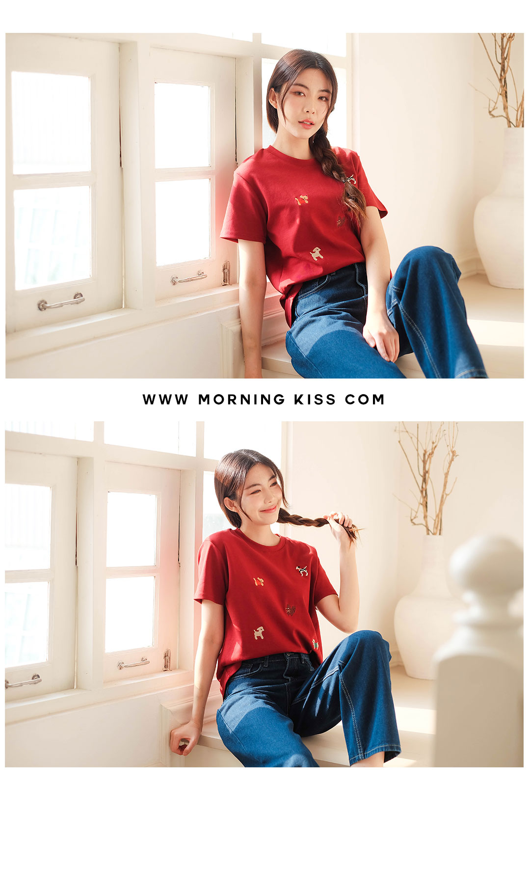 เสื้อยืดน่ารักๆแขนสั้น โทนสีแดง เนื้อผ้าใส่สบายสุดๆ งานปักลายการ์ตูนน่ารักๆด้านหน้า แบบใส่ง่ายใส่สบาย ลุคชิวๆ เนื้อผ้า Cotton ยืดเนื้อนิ่มใส่ทับในกับกางเกงขาสั้น รองเท้าผ้าใบ น่ารักเลย รายการนี้แนะนำเลย
