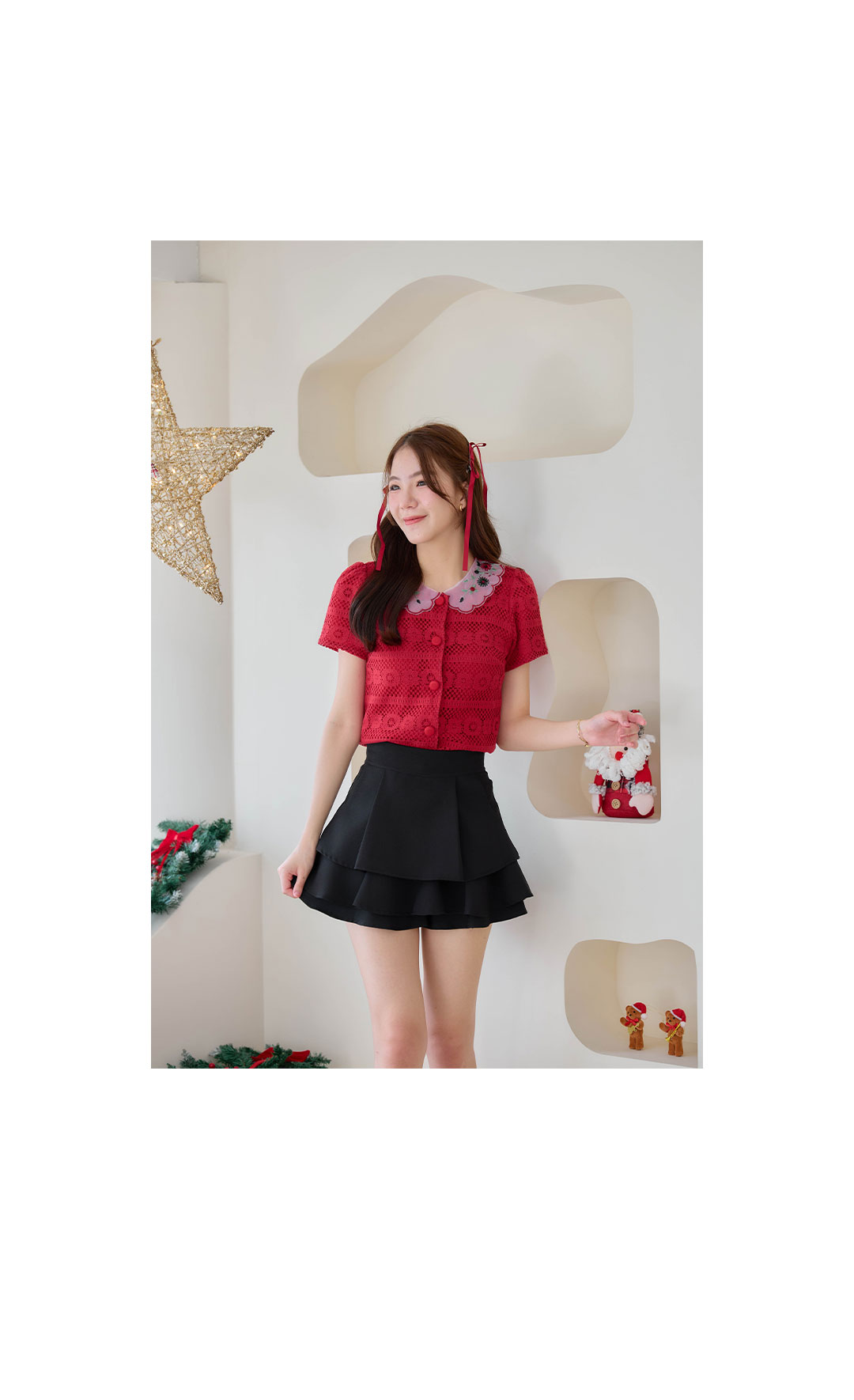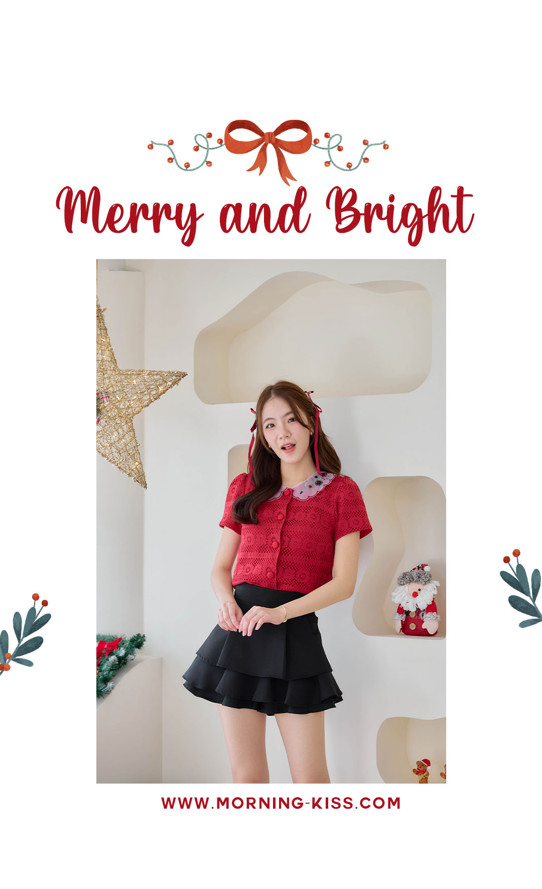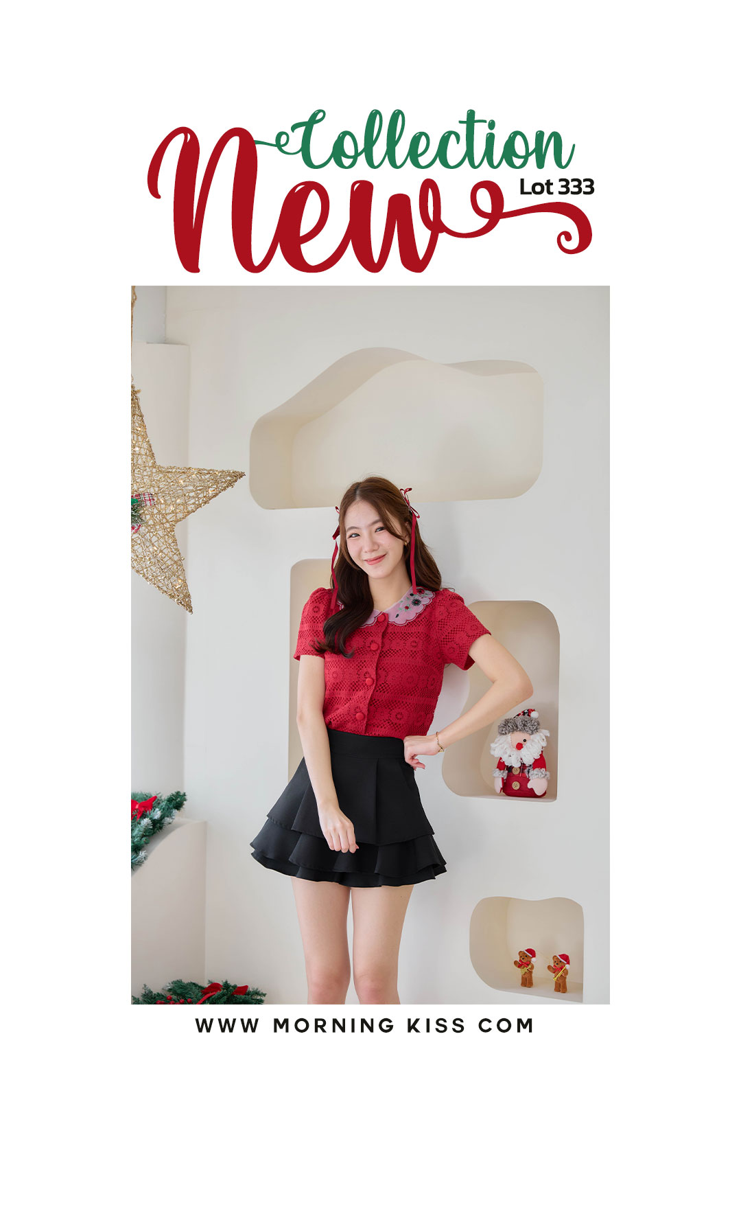 ต้อนรับคริสต์มาสด้วยไอเท็มนี้ สีแดงสวยโดดเด่นกับเสื้อแขนสั้นผ้าฉลุลายลูกไม้ ช่วงคอปกผ้าแก้วทำหยักๆแต่งงานปักดอกไม้ กระดุมขาวเรียงหน้า ซับในทั้งตัว แมทกับกระโปรงหรือกางเกงก็น่ารัก ไอเท็มนี้แนะนำเลย คริสมาส หรือ ตรุษจีน จัดตัวนี้ไปสวยปังแน่นอน