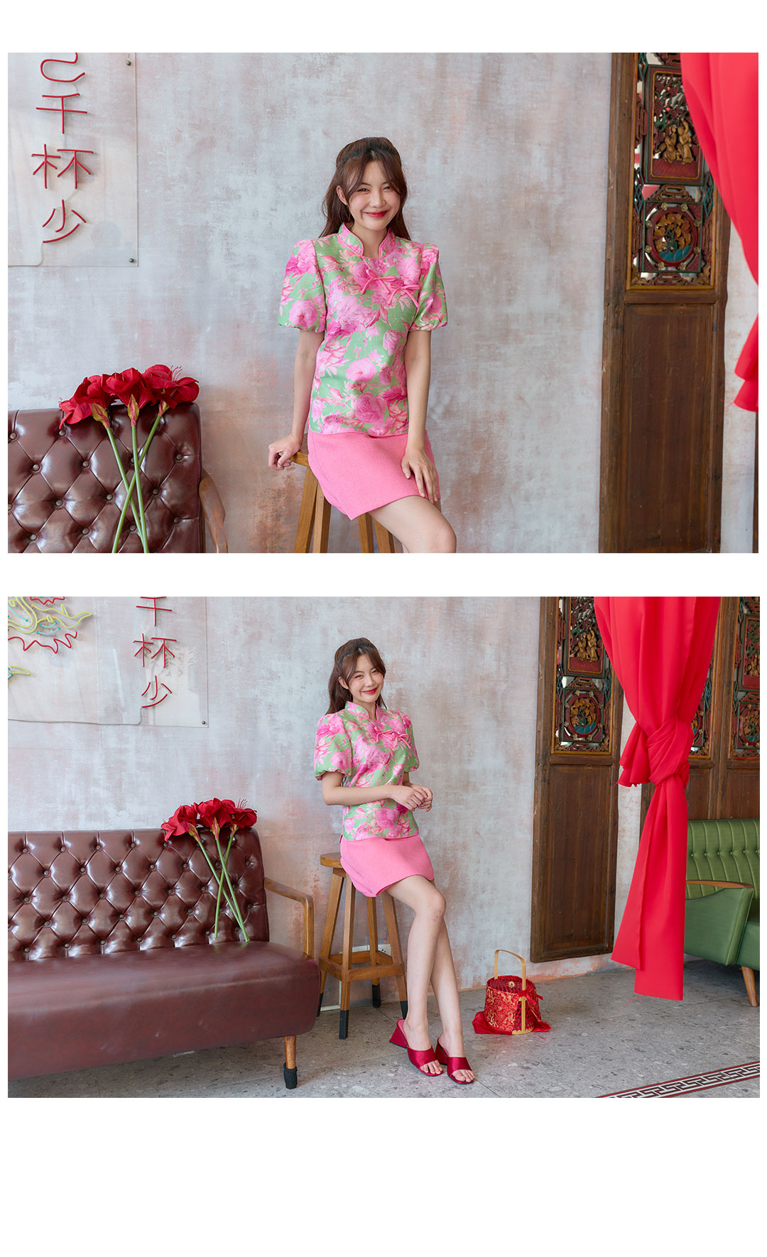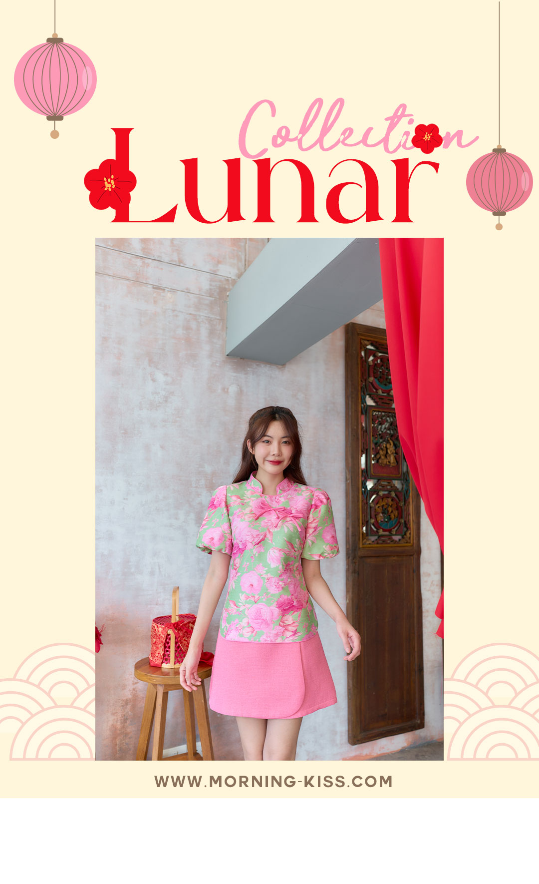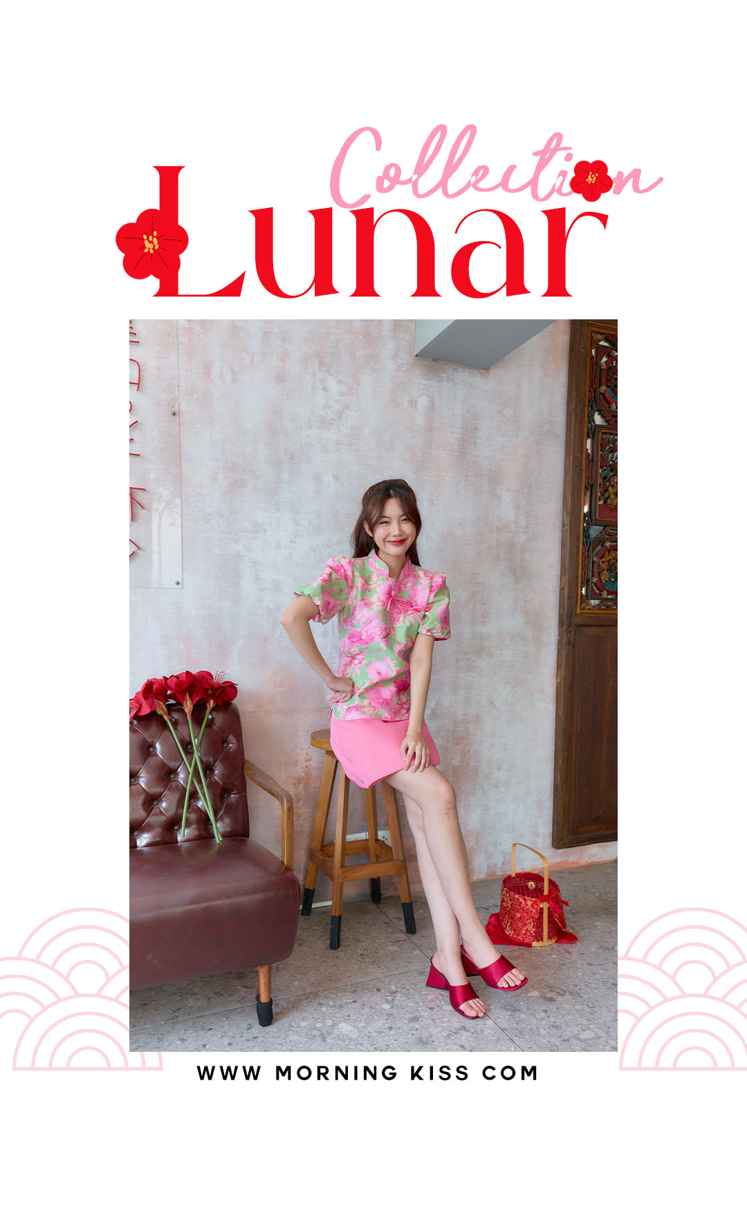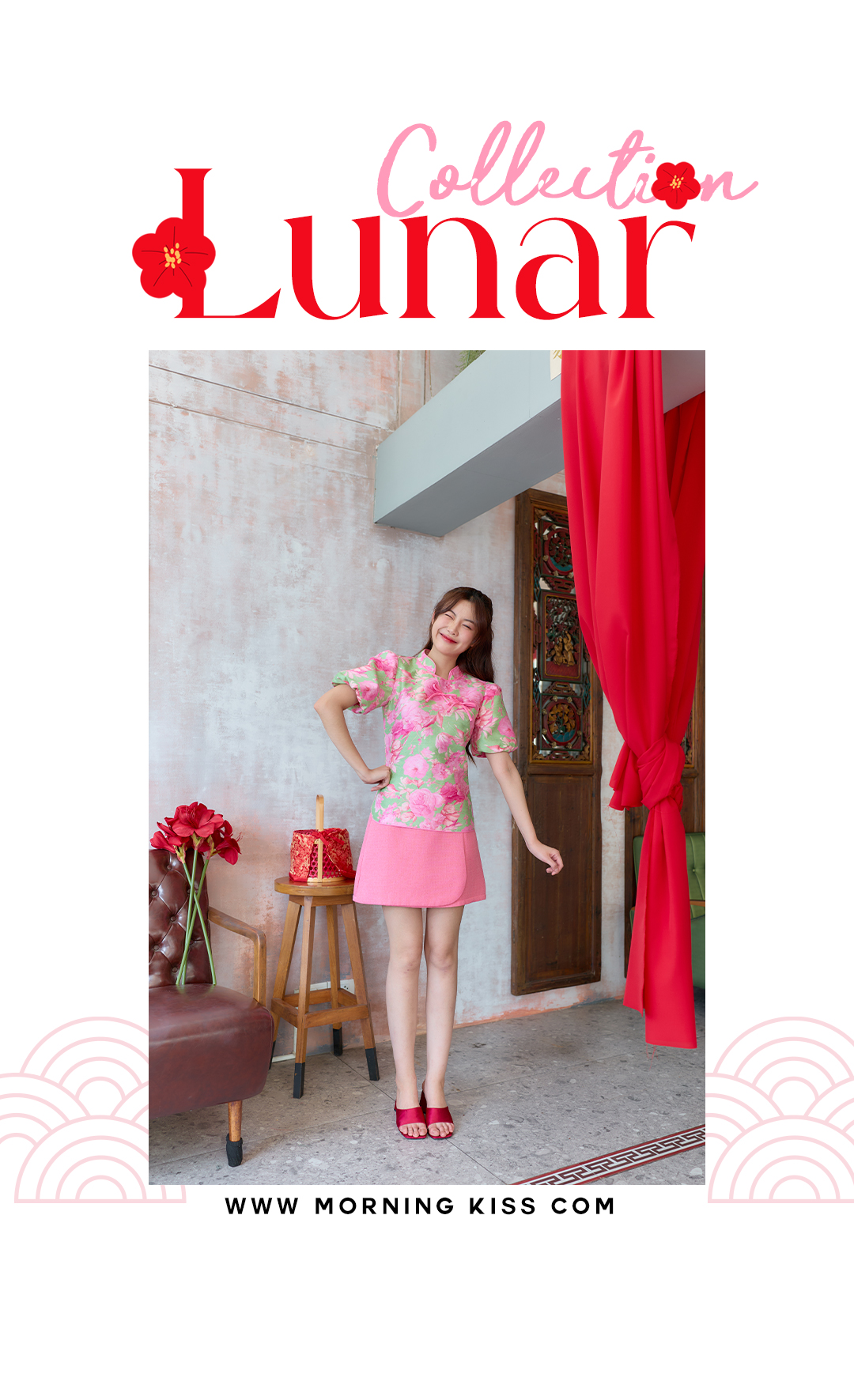 รุ่นนี้สวยหวานน่ารักมาก กับเสื้อคอจีนโทนสีเขียวชมพู ดีไซน์เย็บแบบเฉียง ติดโบว์คู่สีชมพูน่ารักๆ ทรงแขนบอลลูนแบบยาว ทรงใส่ง่าย เข้ารูปเล็กน้อย ชายเสื้อโค้งผ่าข้าง ที่สำคัญเนื้อผ้าอัดกาวทั้งตัวคะ งานดีเว่อร์วังมาก ซิปซ่อนหลัง แมทคู่กับกางเกงแดง สวยปังรับทรัพย์แน่นอน