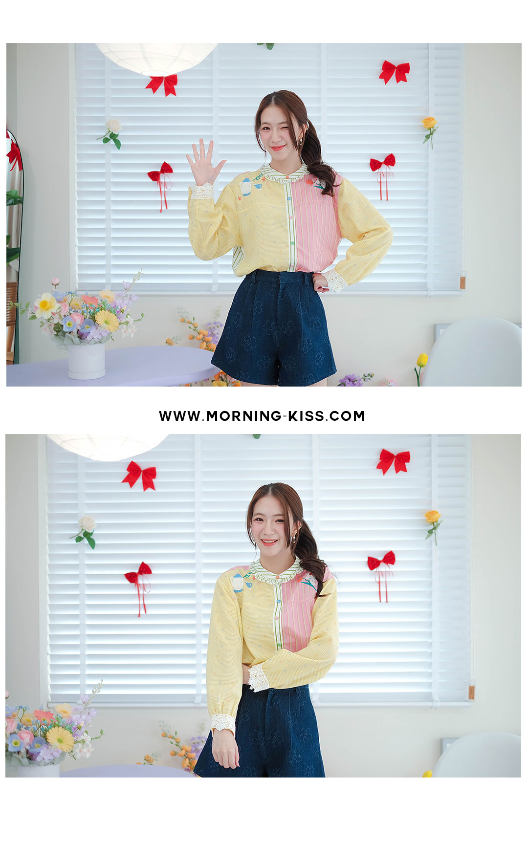Must Have ไอเท็มนี้แนะนำสาวๆมากๆ มาในแบบน่ารักสดใสกับเสื้อเชิ๊ตทูโทนเนื้อผ้าคอตตอนสลับโทนสีสดใส ชมพู/เหลือง ด้านปนแต่งงานปักน่ารักๆ ช่วงคอและสาปเสื้อต่อด้วยผ้าลายริ้วสีเขียว แต่งกระดุมดอกไม้หลากสีเรียงหน้า เนื้อผ้าเนื้อนิ่ม ใส่แล้วไม่ร้อน รุ่นนี้งานญี่ปุ่น รับประกันคุณภาพ จัดไปไม่ผิดหวังแน่นอน