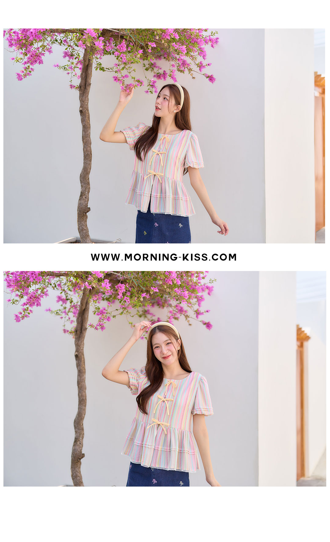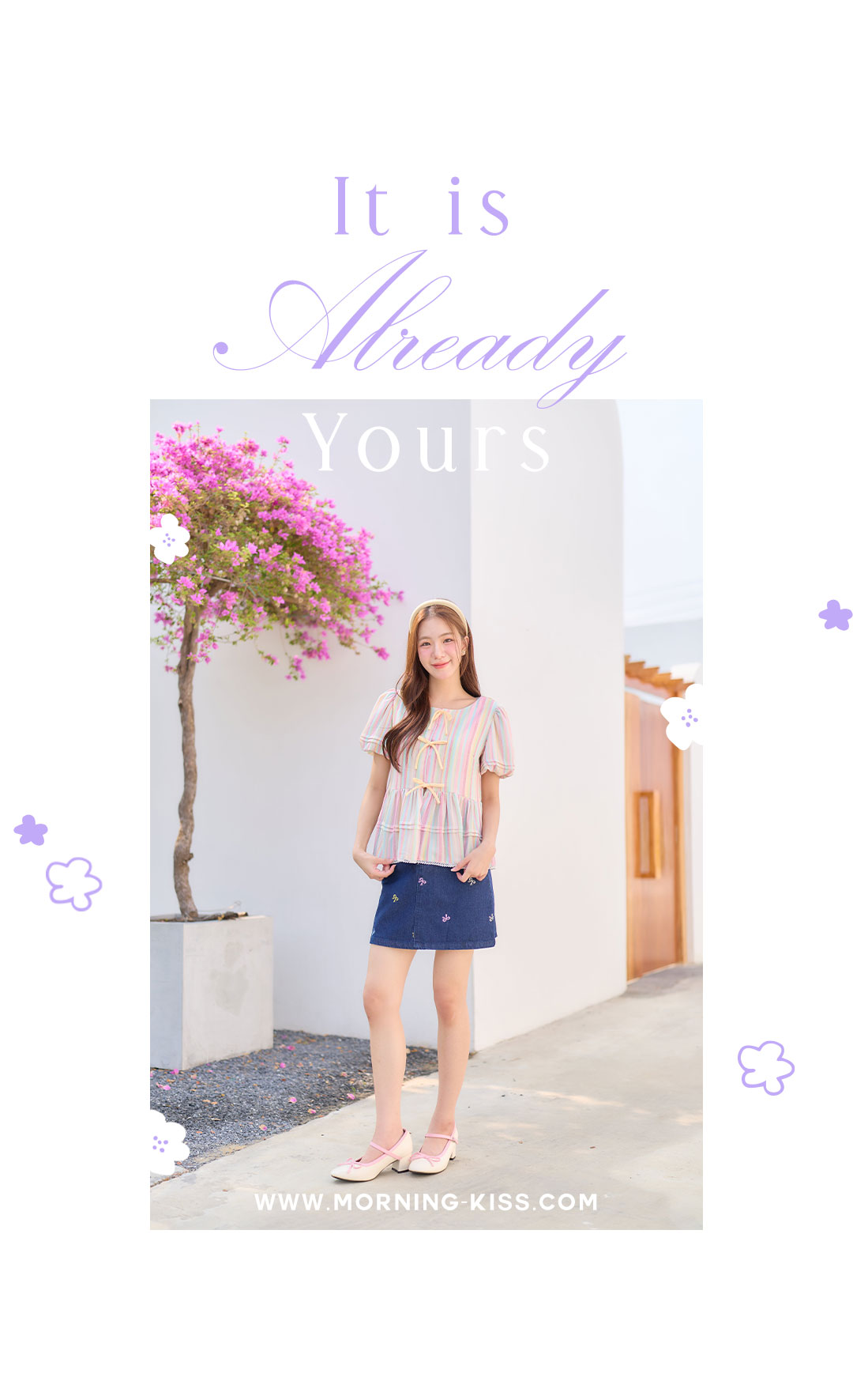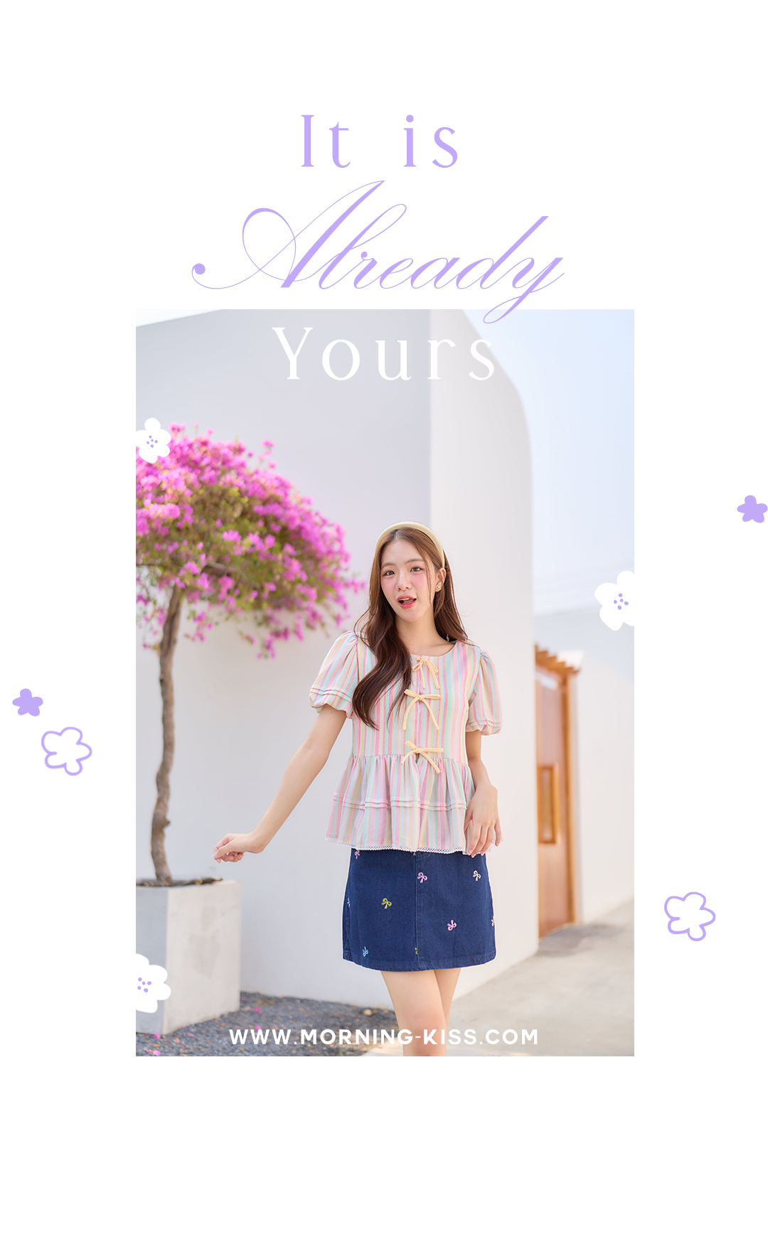 ดีไซน์ตัวนี้คือน่ารักให้ที่ 1 เฉดสีพาสเทลหวานๆซัมเมอร์ตะโกน ผ้า Cotton ลายทางนิ่มม้ากกกและยังมีซับในให้ทั้งตัว ดีเทลโบว์ผูกสีเหลืองละมุนเรียงด้านหน้า มีกระดุมซ่อนสาปเสื้อด้านใน ช่วงแขนเป็นทรงบอลลูนจับจีบคิวท์ๆ และชายเสื้อระบายจับจีบ พร้อมแต่งลูกไม้สีขาวเล็กๆ เพิ่มความหวานละมุนแบบลูกคุณหนู everydaylookใส่ง่ายๆ น่ารักสดใสขนาดนี้สาวหวานห้ามพลาดนะค้า