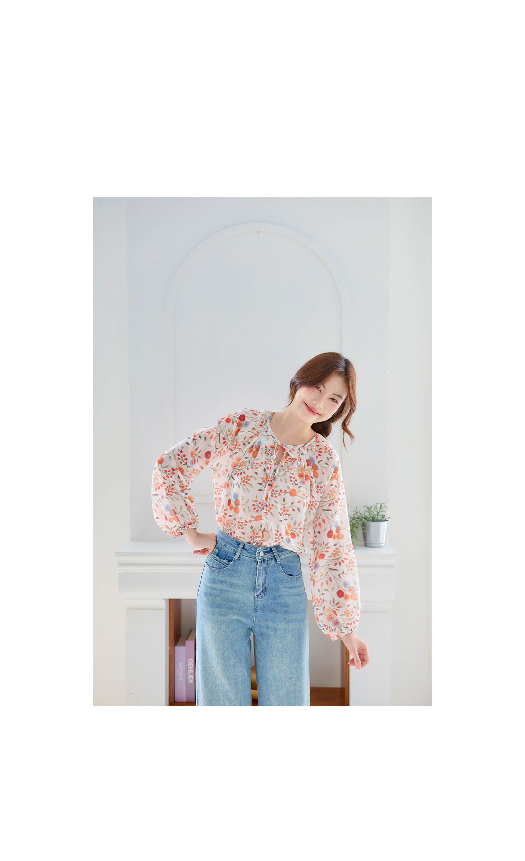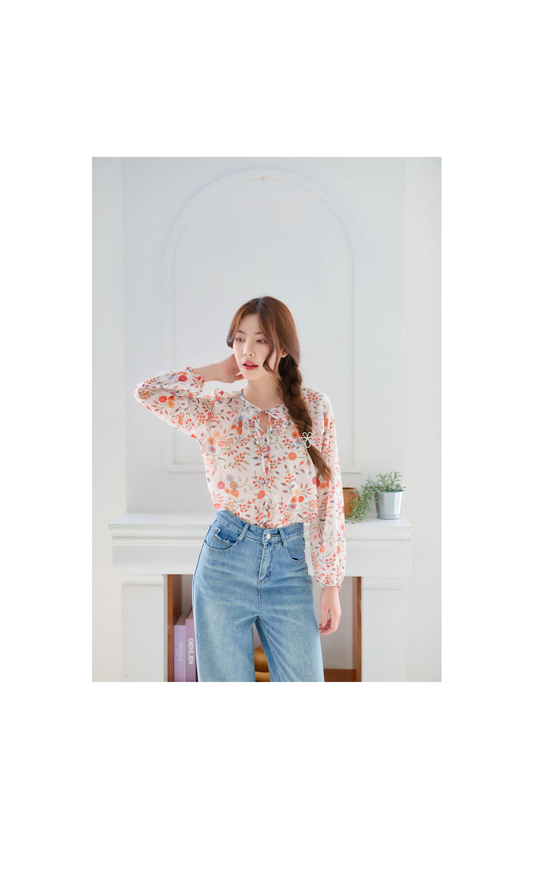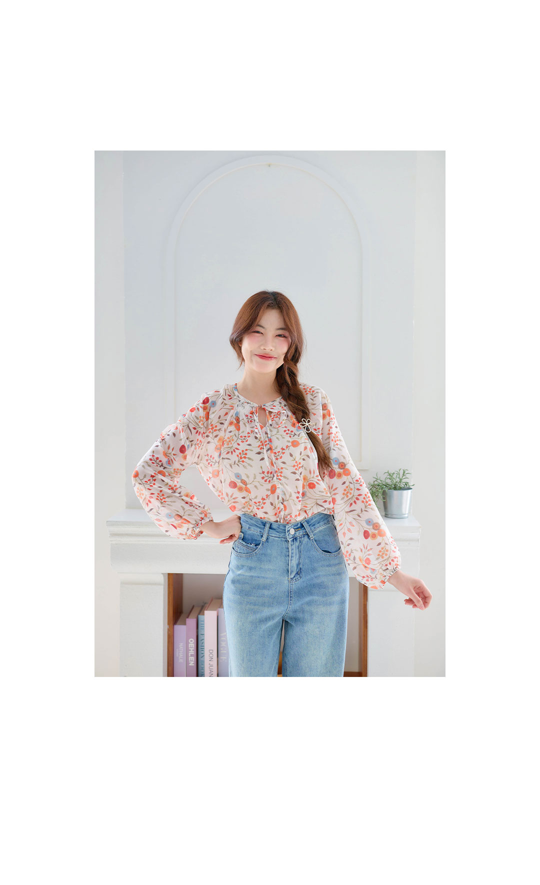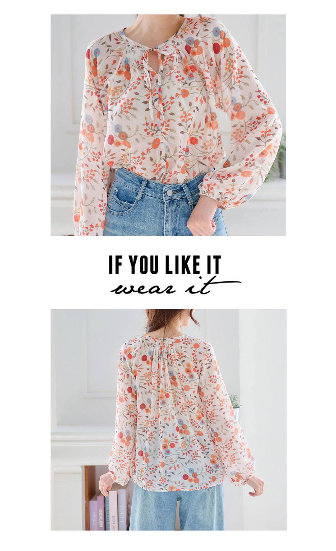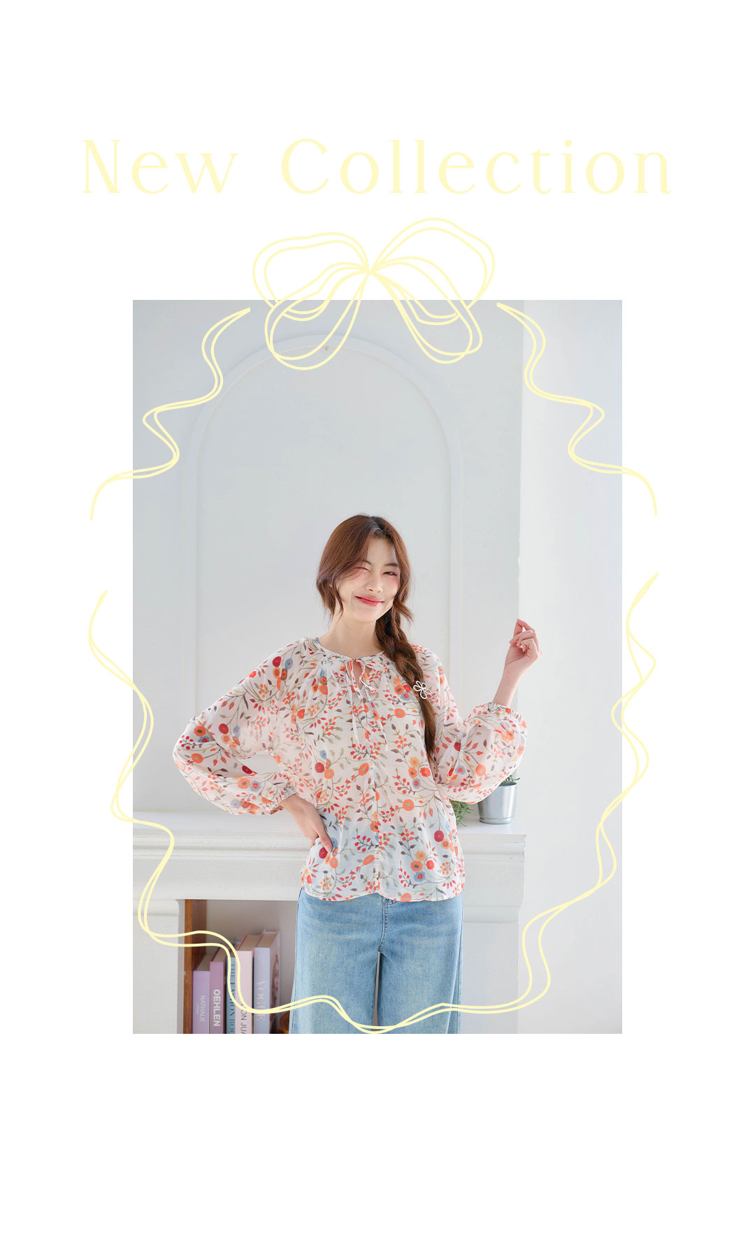 ลุคน่ารักๆหวานๆ เสื้อแขนยาวโทนสีครีมงานปริ้นลายดอกสีหวานๆรอบตัว ช่วงคอมีสายผูกเป็นโบว์น่ารักๆ ช่วงแขนทำพองๆ ทรงตัวปล่อยๆ รุ่นนี้ใส่ง่ายๆ เนื้อผ้าดี แมทกับขาสั้นหรือขายาว ก็น่ารัก ใส่ทำงานก็ได้ใส่เที่ยวก็ได้ มีติดตู้ไว้ไม่ผิดหวังแน่นอน