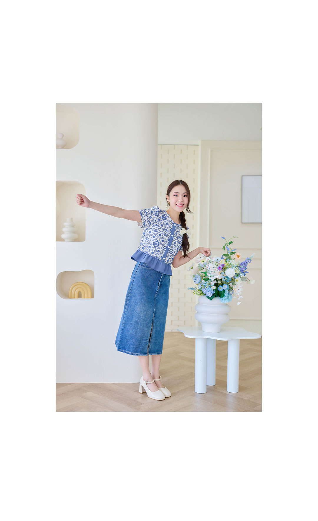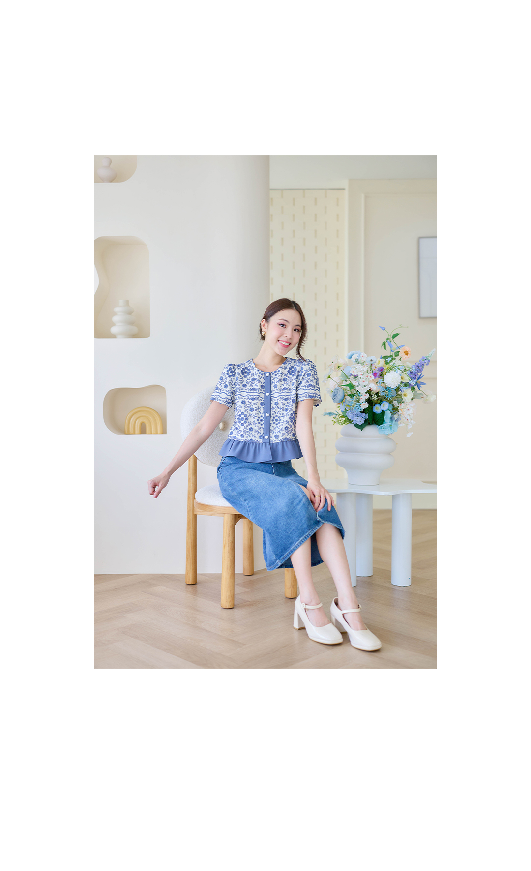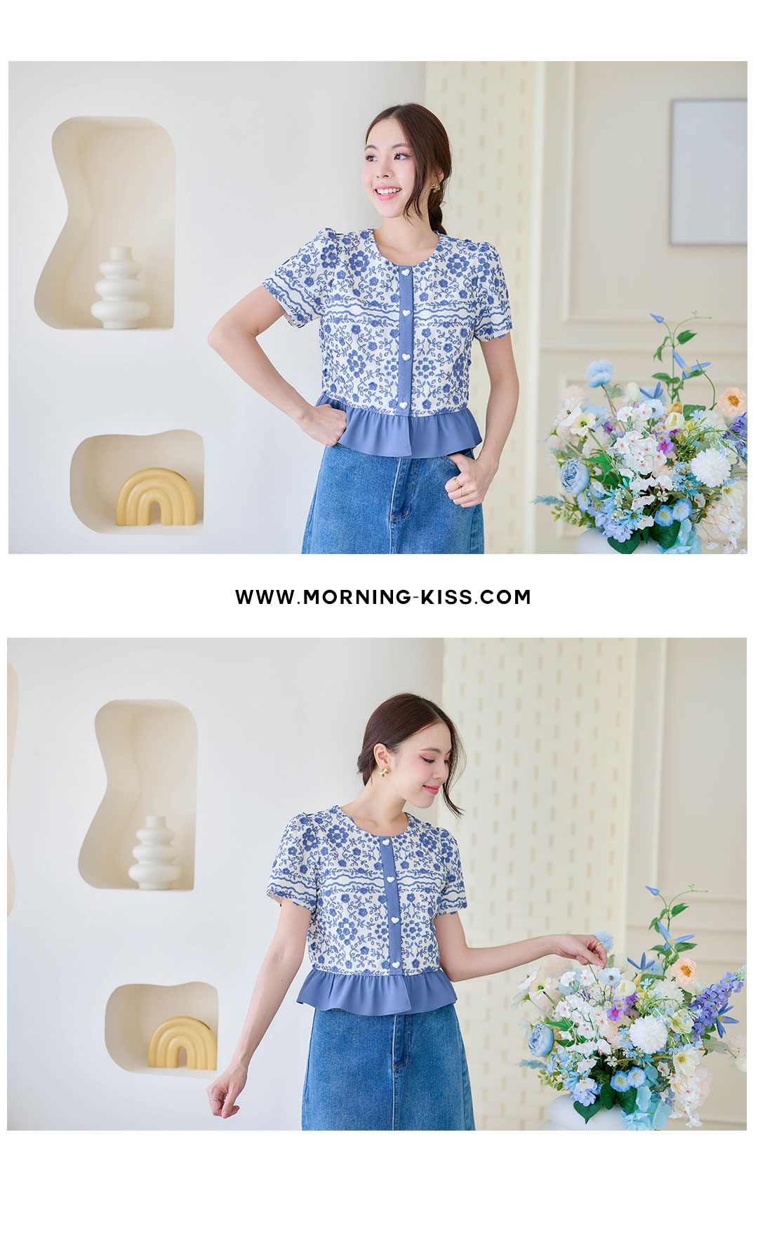 ใครชอบแนวสวยหรูดูแพง ห้ามพลาดรุ่นนี้เลยค่า~ เสื้อแขนสั้นโทนน้ำเงินคลาสสิค เป็นผ้า Cotton ฉลุลาย พร้อมงานปักดอกไม้แบบนูน เพิ่มมิติให้ลุคดูหรูขึ้นอีกระดับ ดีเทลกระดุมมุกรูปหัวใจให้ดูเรียบแต่มีคลาส ชายเสื้อระบายโทนน้ำเงิน ความยาวพอดีตัว มาพร้อมซับในทั้งตัวไม่ระคายผิวแน่นอน แมทช์ง่ายสุดๆ ใส่กระโปรงหรือกางเกงยีนส์ก็สวย เหมาะกับทั้งวันทำงาน/คาเฟ่ หรือออกงานเบาๆก็ดูดีไม่แพ้ใคร