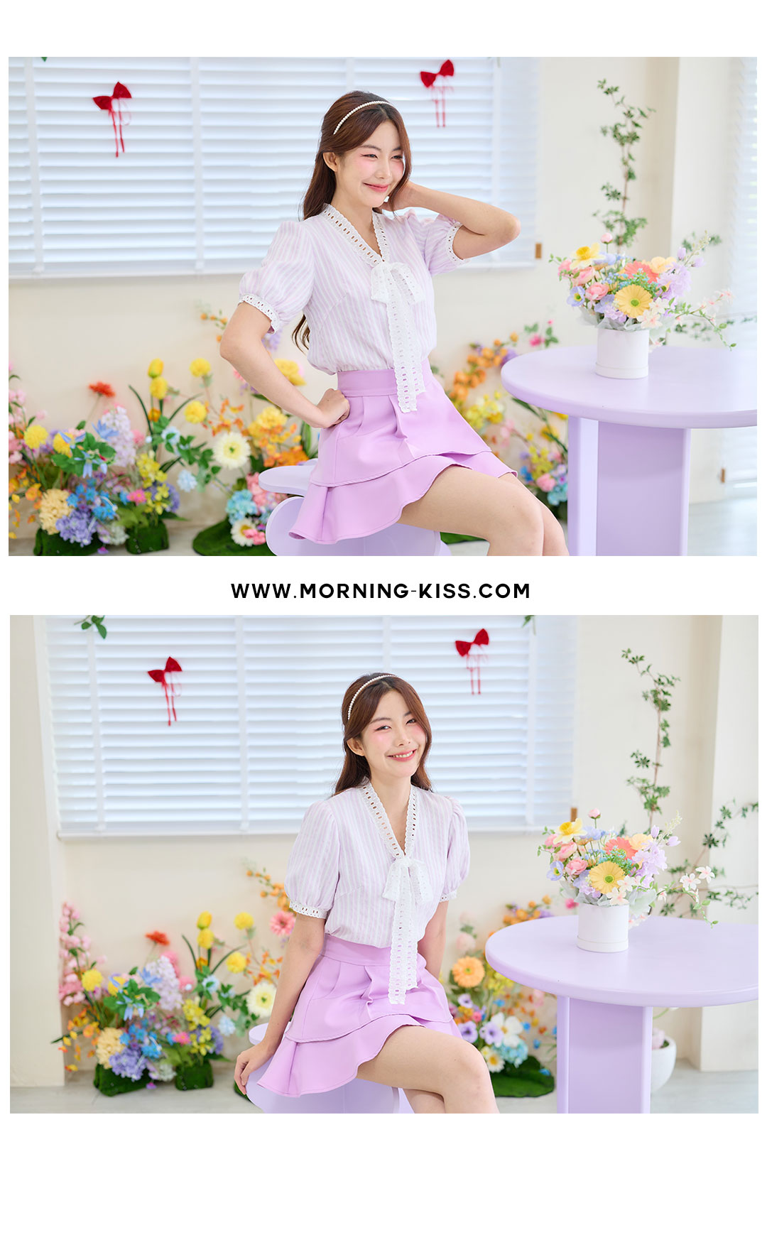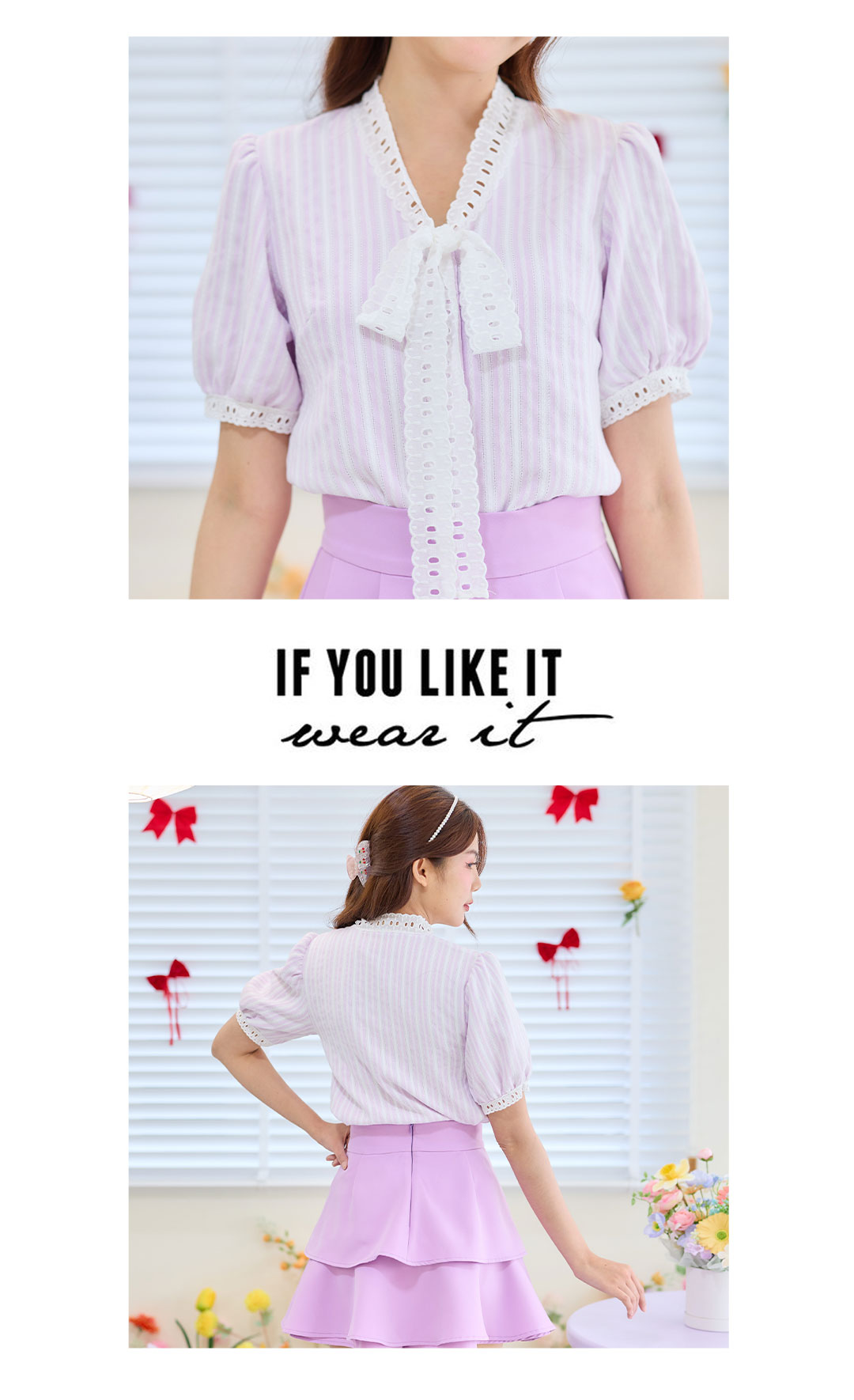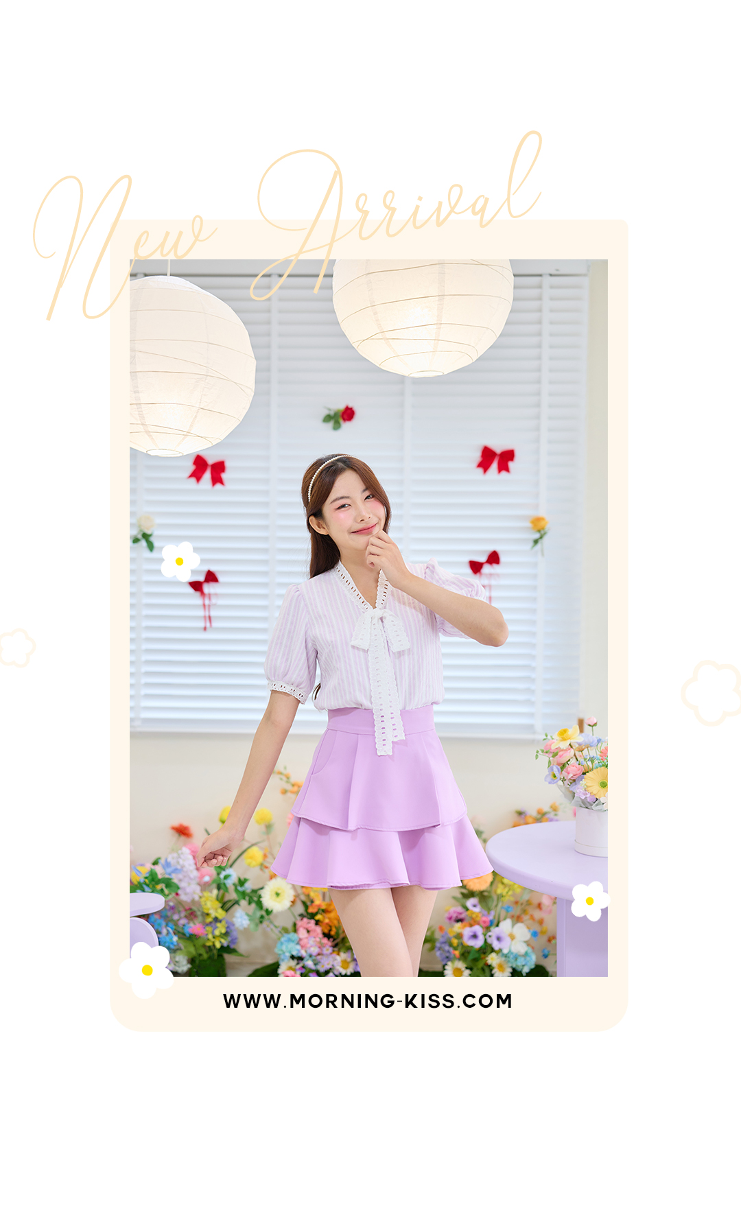 พร้อมเสิร์ฟความน่าร้ากกับเสื้อแขนสั้นลายริ้วม่วงพาสเทลสลับขาว โทนสีละมุนเกินต้าน! มีซับในทั้งตัว กระดุมเรียงหน้า ดีไซน์ช่วงคอทำโบว์ผูกผ้าฉลุลูกไม้คือความหวานที่ลงตัว ช่วงแขนทำพองๆนิดๆ กำลังดี กุ๊นปลายแขนด้วยเทปลูกไม้ ได้ลุคน่ารักหวานคูณสิบ ยิ่งจับแมทช์กับกระโปรงสีม่วงเข้ากันแบบลงตัวเป๊ะๆ หรือจะใส่กับกางเกงยีนส์ก็น่ารักปนเท่ จะใส่เที่ยวก็สวยปัง ใส่ทำงานก็ดูดีมีสไตล์ เป็นเสื้อที่ใส่ได้ทุกโอกาส ไม่มีติดตู้ไม่ได้ค่าา