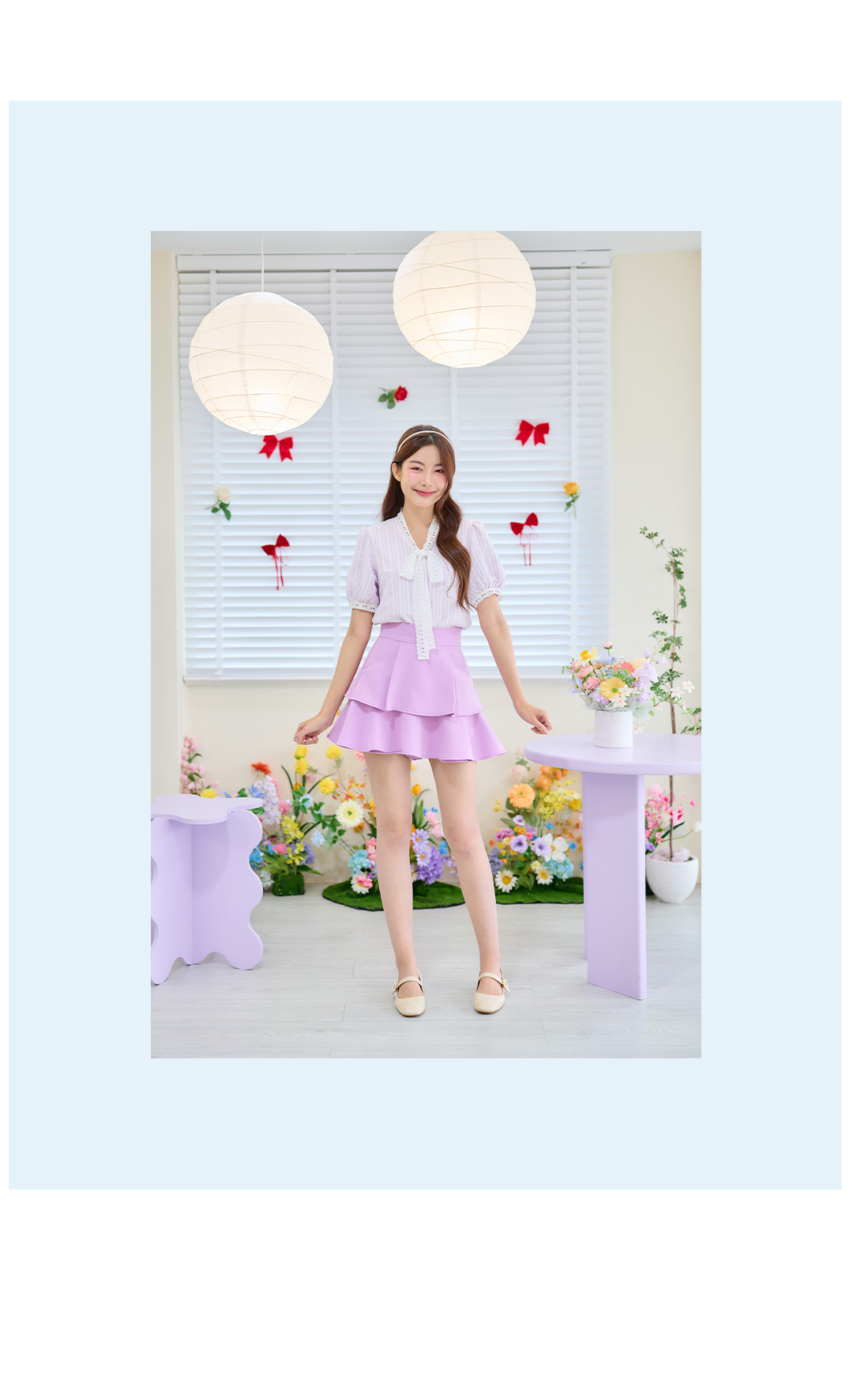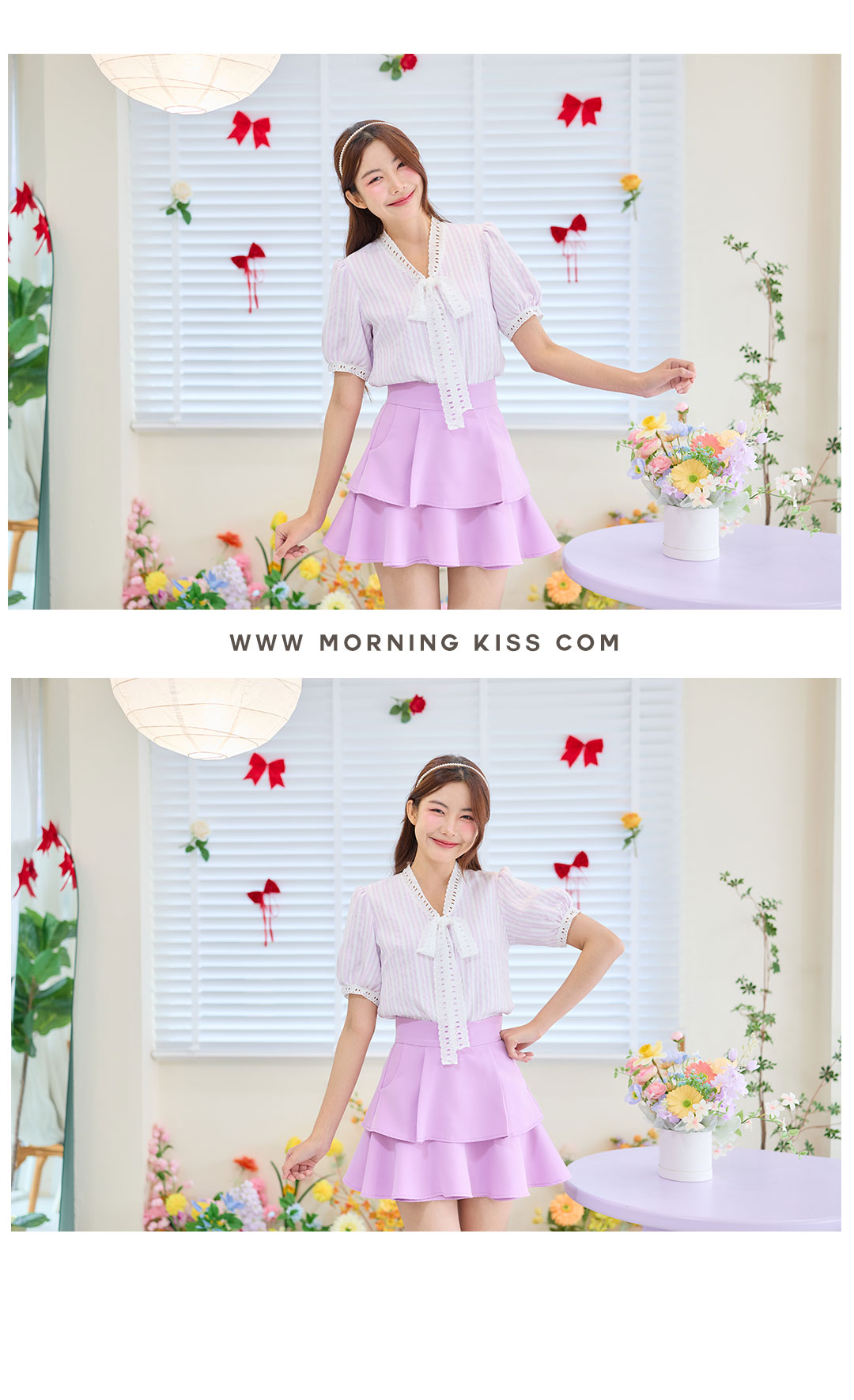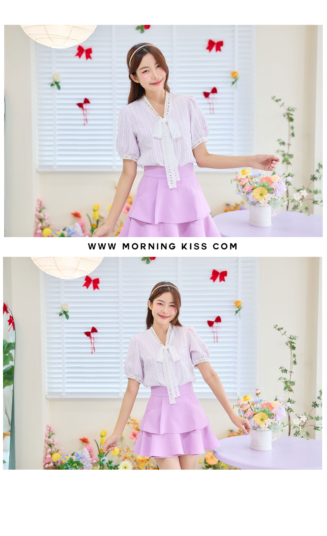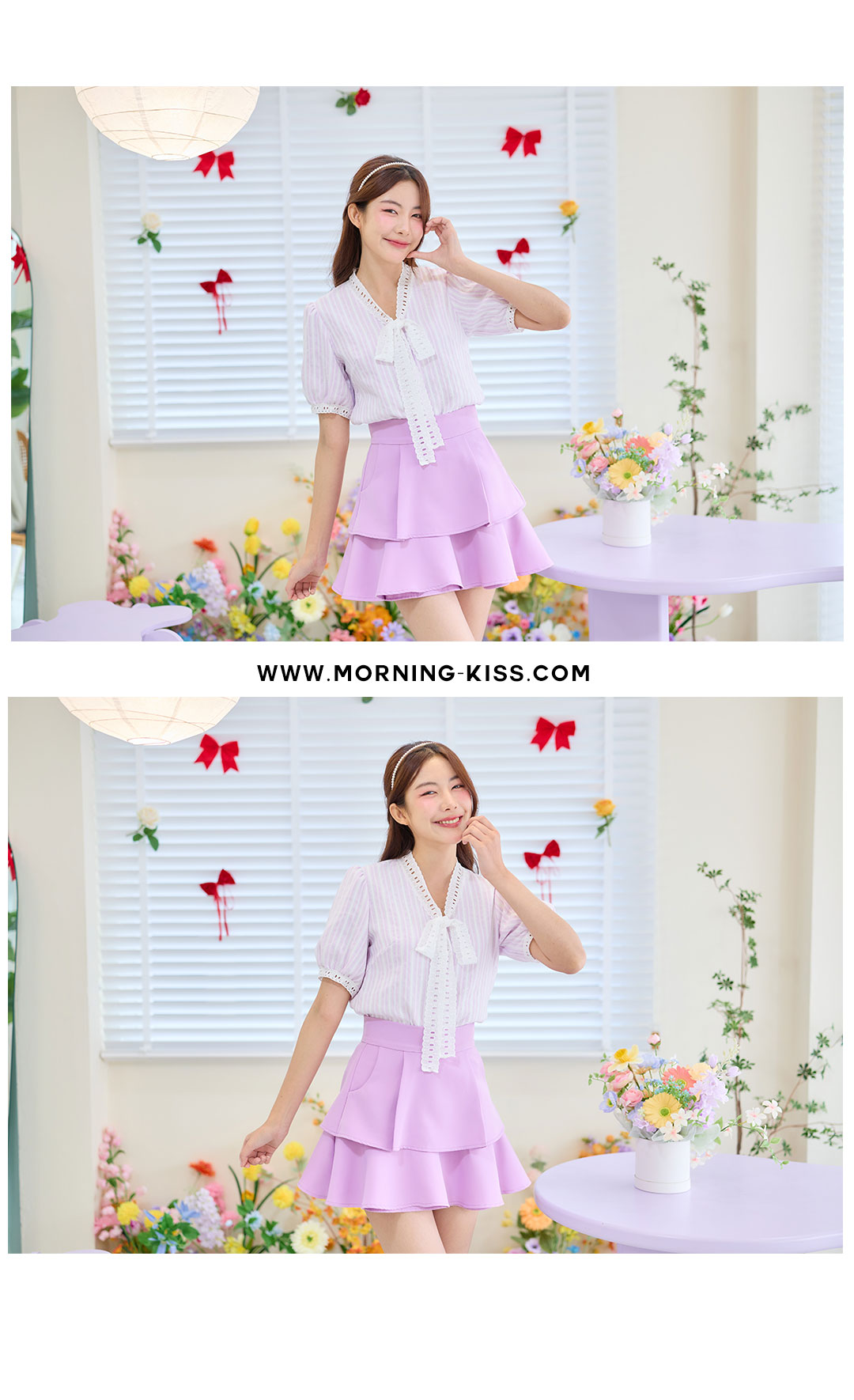 พร้อมเสิร์ฟความน่าร้ากกับเสื้อแขนสั้นลายริ้วม่วงพาสเทลสลับขาว โทนสีละมุนเกินต้าน! มีซับในทั้งตัว กระดุมเรียงหน้า ดีไซน์ช่วงคอทำโบว์ผูกผ้าฉลุลูกไม้คือความหวานที่ลงตัว ช่วงแขนทำพองๆนิดๆ กำลังดี กุ๊นปลายแขนด้วยเทปลูกไม้ ได้ลุคน่ารักหวานคูณสิบ ยิ่งจับแมทช์กับกระโปรงสีม่วงเข้ากันแบบลงตัวเป๊ะๆ หรือจะใส่กับกางเกงยีนส์ก็น่ารักปนเท่ จะใส่เที่ยวก็สวยปัง ใส่ทำงานก็ดูดีมีสไตล์ เป็นเสื้อที่ใส่ได้ทุกโอกาส ไม่มีติดตู้ไม่ได้ค่าา