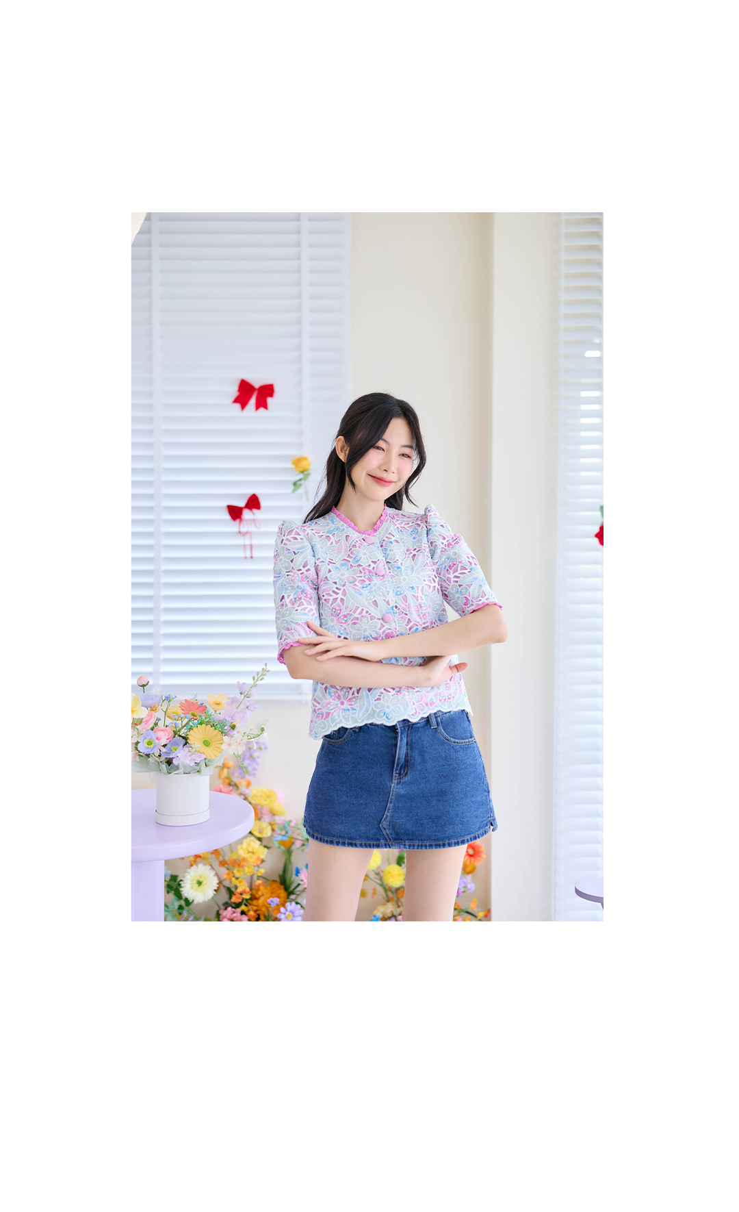 ที่สุดของความสวยหวานละมุนต้องรุ่นนี้เลยค่ะ! เสื้อลูกไม้ฉลุลายพรีเมี่ยมในโทนสีม่วงอ่อนหวานละมุน โดดเด่นด้วยเกล็ดเล่นแสงระยิบระยับ ทำความยาวแขนมาให้ลุคออกมาดูเรียบร้อย แต่งขอบแขนและขอบคอด้วยลูกไม้สีชมพูบานเย็น เพิ่มความละมุนฉ่ำาา ชายเสื้อเป็นชายเชิงสวยงาม พร้อมกระดุมเรียงหน้า มีซับในทั้งตัว ใส่คู่กับกางเกงยีนส์ก็ให้ลุคที่ดูสดใส น่ารัก หรือจะใส่กับกระโปรงก็ดูเป็นสาวหวาน จัดไปรับรองไม่ผิดหวังค่า