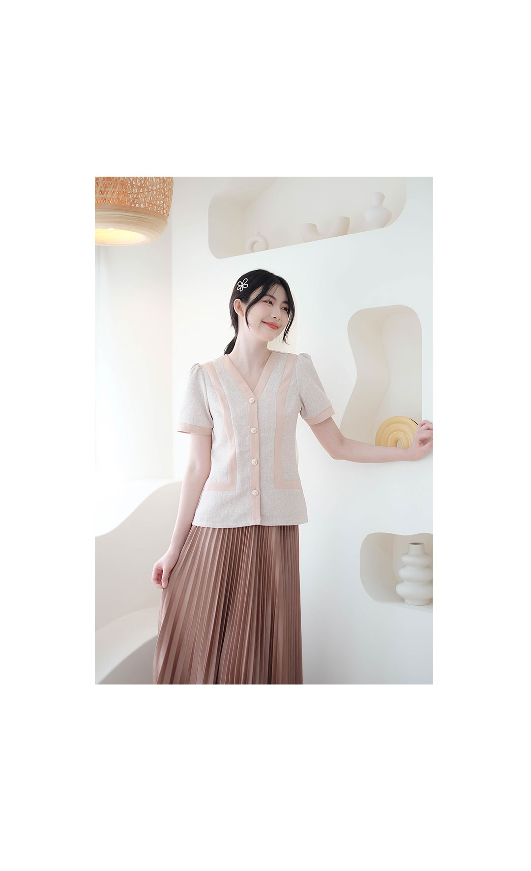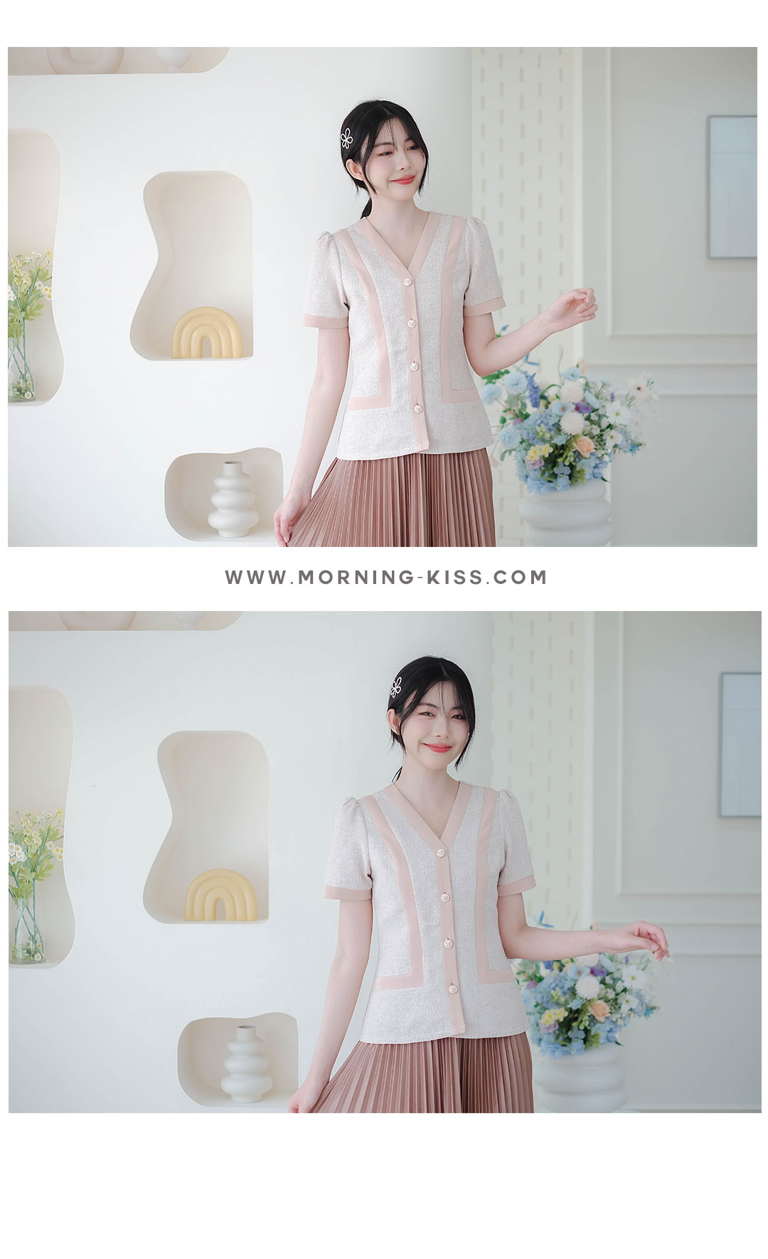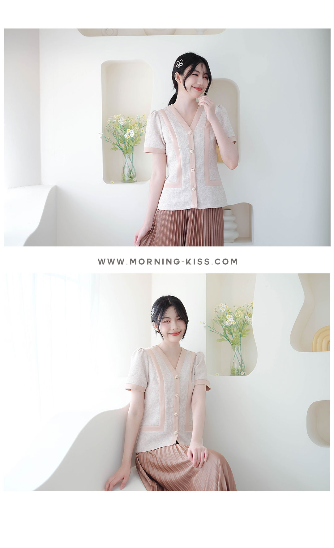 งานผ้าทวีตคือลูกคุณหนูยืนหนึ่ง!ดีเทลคอวีคือพรางหุ่นให้ดูเพรียวสุดๆ ทรงเข้ารูป แถมกระดุมมุกโบว์ทองสวยหรูเรียงหน้า ตัดกับขอบเสื้อสีพีชน่ารักมากกก! เข้ากันแบบลงตัวสุด ด้านในอัดกาว + ใส่ซับในอย่างดี ใส่แล้วดูแพงแบบตะโกน จะใส่ไปคาเฟ่ก็คือได้รูปสวยๆ ลงไอจีปังๆ แน่นอน หรือจะใส่ไปทำงานก็คือดูดีมีออร่าสุดๆ ต้องมีติดตู้แล้ว ไม่งั้นพลาดมากจริงๆ