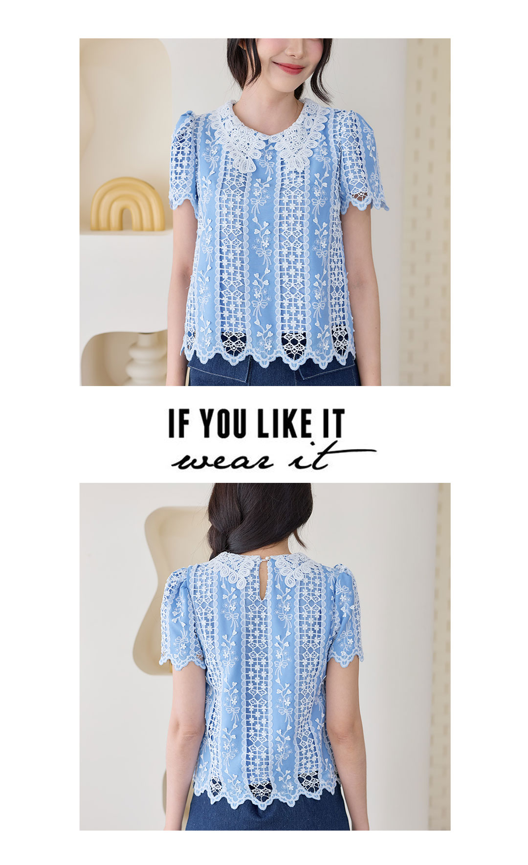 05-355 Royal Blue Lace Blouse - 7 ไซส์