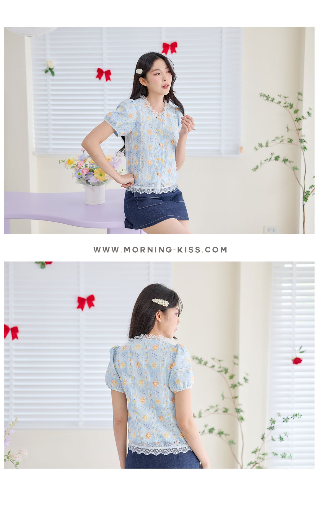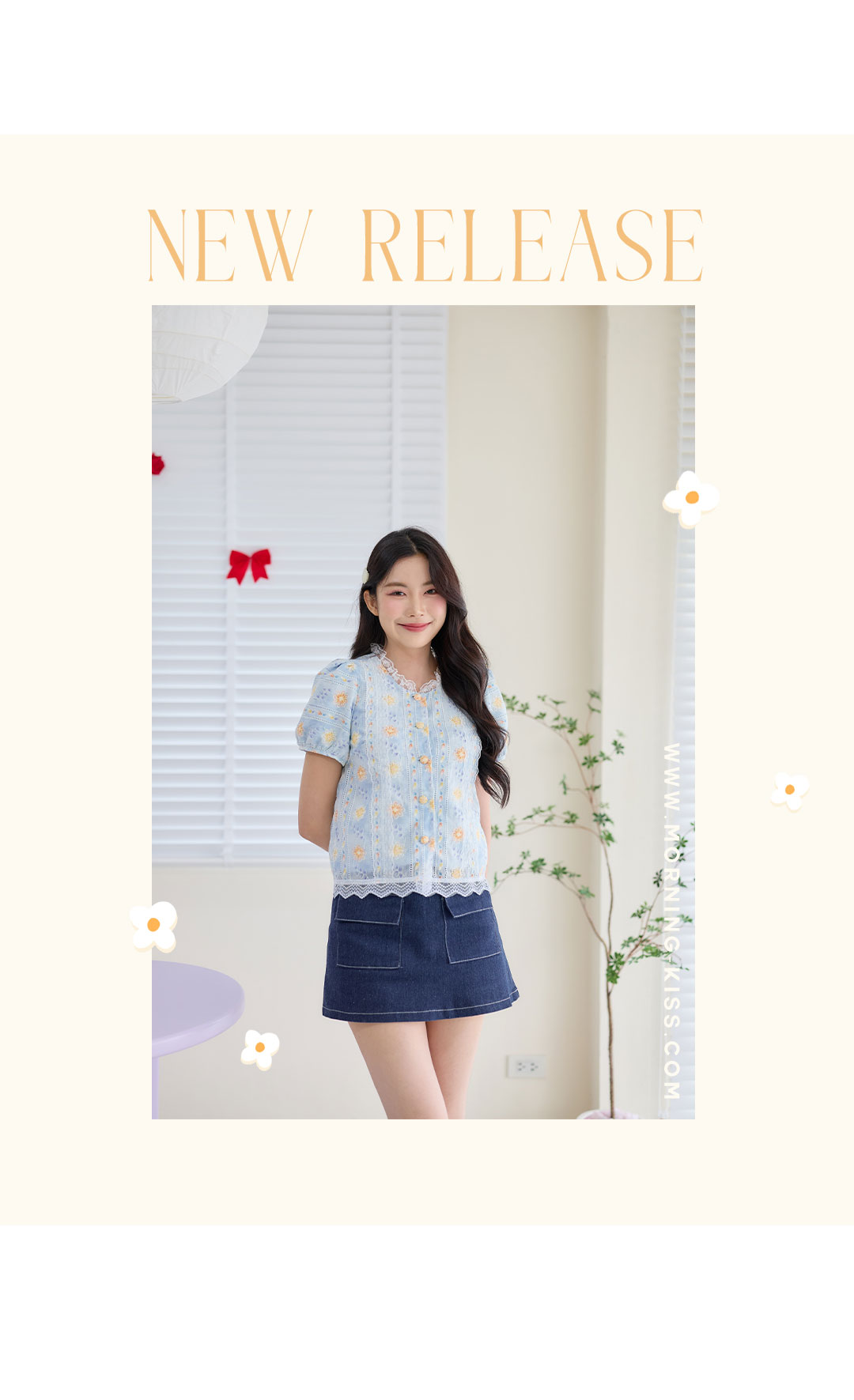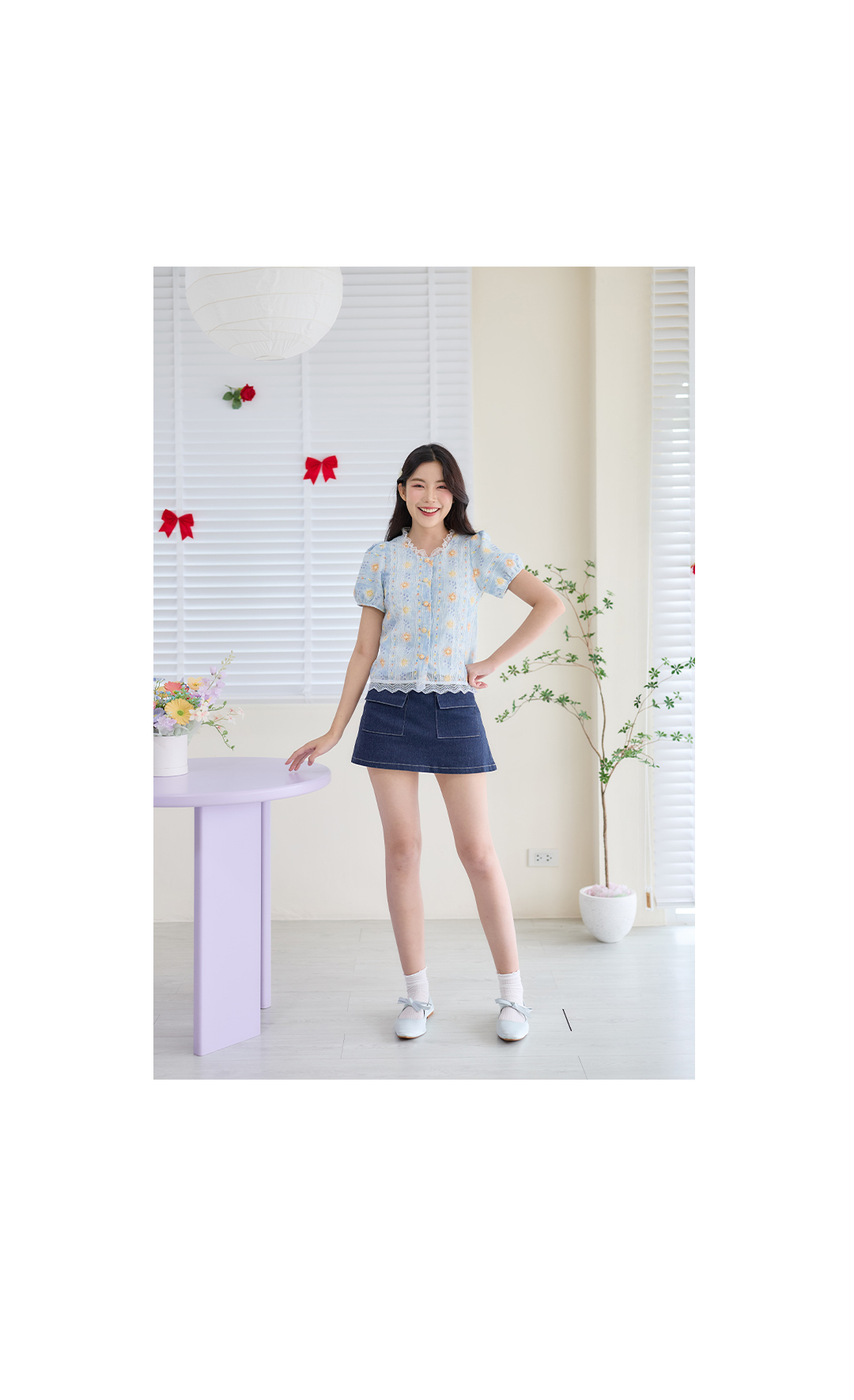 ความสวยพร้อมเสิร์ฟแล้วค่า กับเสื้อแขนสั้นโทนสีฟ้าปักลายดอกไม้สีสันแต่งลูกไม้ ดีเทลผ้าแน่นๆปักและพิมพ์ดอกไม้เหลืองส้มกระจายทั่วตัว แถมแต่งลูกไม้รอบคอ ชายเสื้อ ช่วงตัวดูมีเลเยอร์คือสวยเกินต้าน แขนพองเล็กน้อยน่าร้ากๆ ใส่แล้วลุคคุณหนูฟีล Soft girl สายหวานต้องเลิฟ มีซับในให้ช่วงตัว ไม่ระคายเคือง แมชท์กับกระโปรงหรือกางเกงก็สวยตะโกน ใครชอบลุคสวยหวานห้ามพลาดรุ่นนี้เลยค่าาา