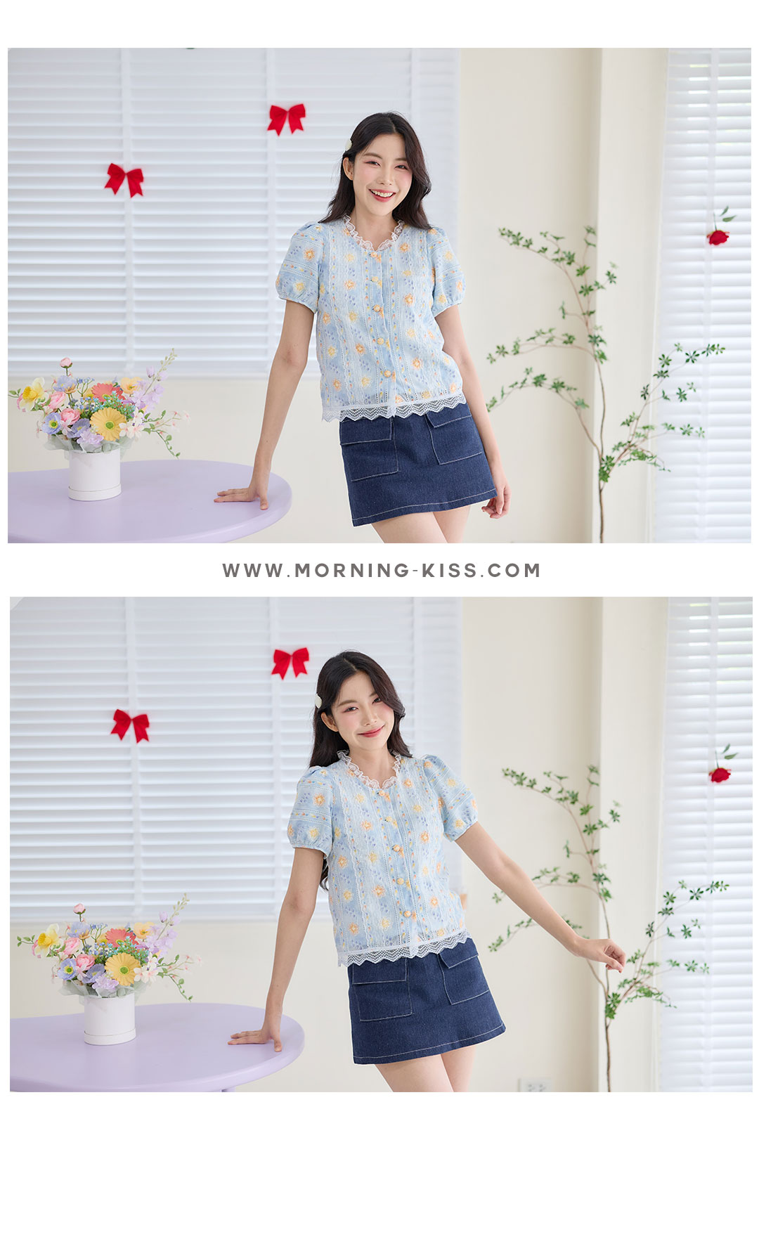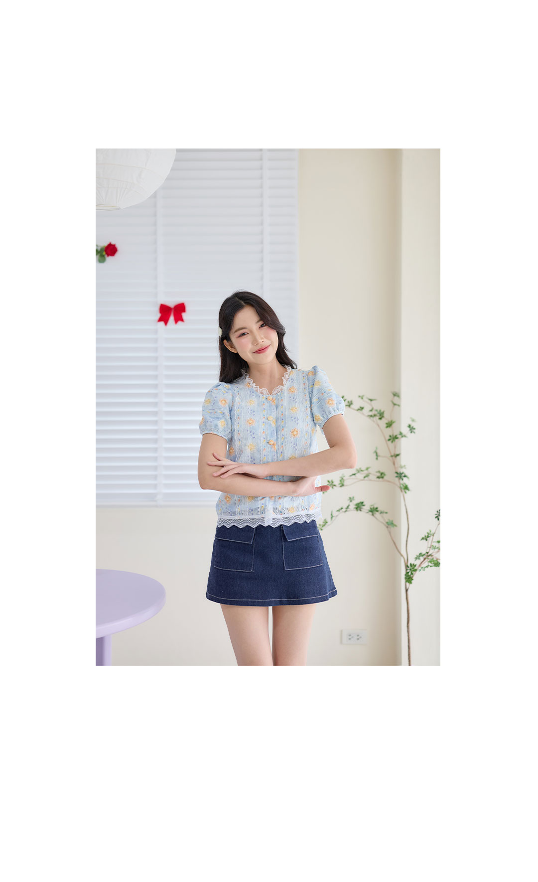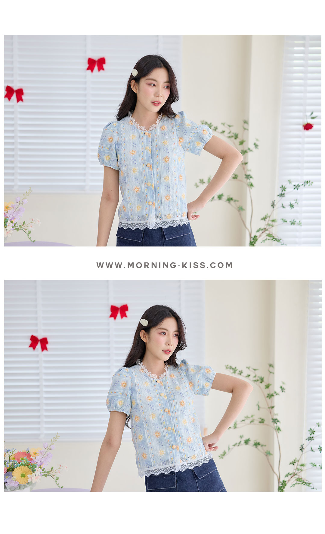 ความสวยพร้อมเสิร์ฟแล้วค่า กับเสื้อแขนสั้นโทนสีฟ้าปักลายดอกไม้สีสันแต่งลูกไม้ ดีเทลผ้าแน่นๆปักและพิมพ์ดอกไม้เหลืองส้มกระจายทั่วตัว แถมแต่งลูกไม้รอบคอ ชายเสื้อ ช่วงตัวดูมีเลเยอร์คือสวยเกินต้าน แขนพองเล็กน้อยน่าร้ากๆ ใส่แล้วลุคคุณหนูฟีล Soft girl สายหวานต้องเลิฟ มีซับในให้ช่วงตัว ไม่ระคายเคือง แมชท์กับกระโปรงหรือกางเกงก็สวยตะโกน ใครชอบลุคสวยหวานห้ามพลาดรุ่นนี้เลยค่าาา