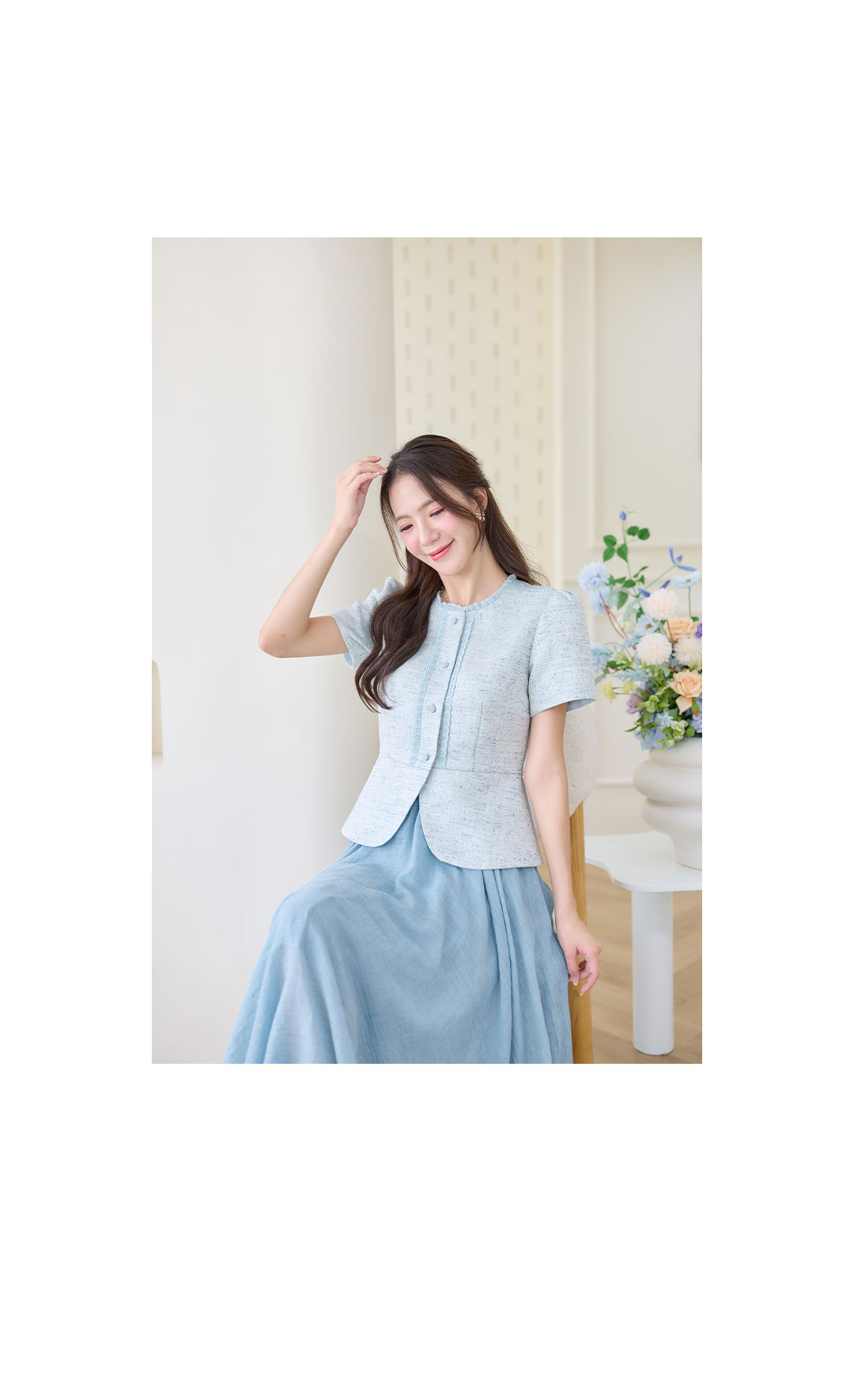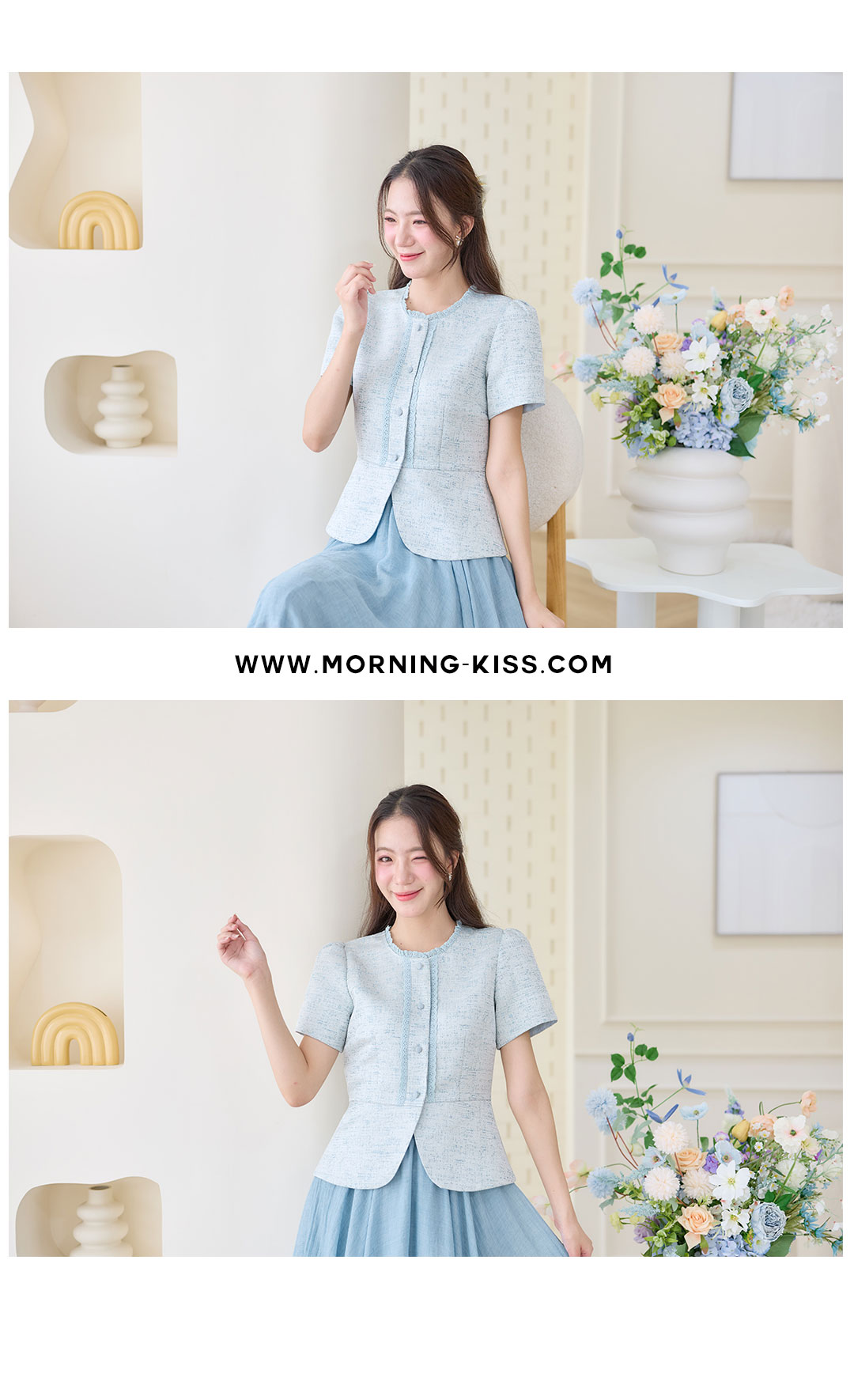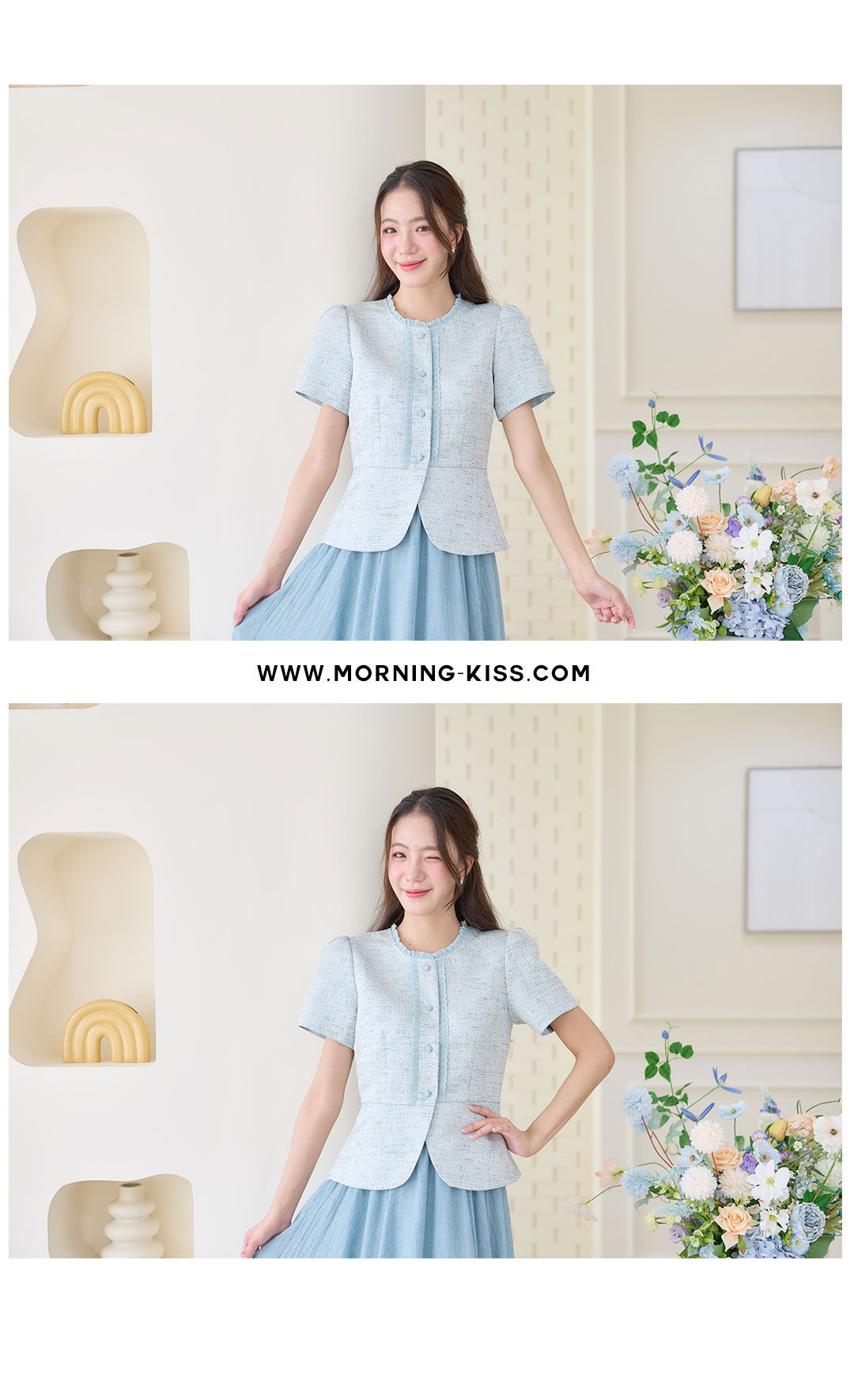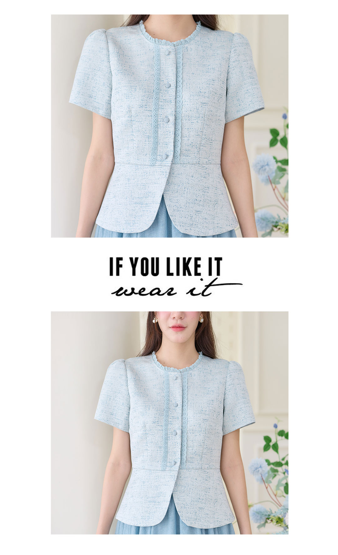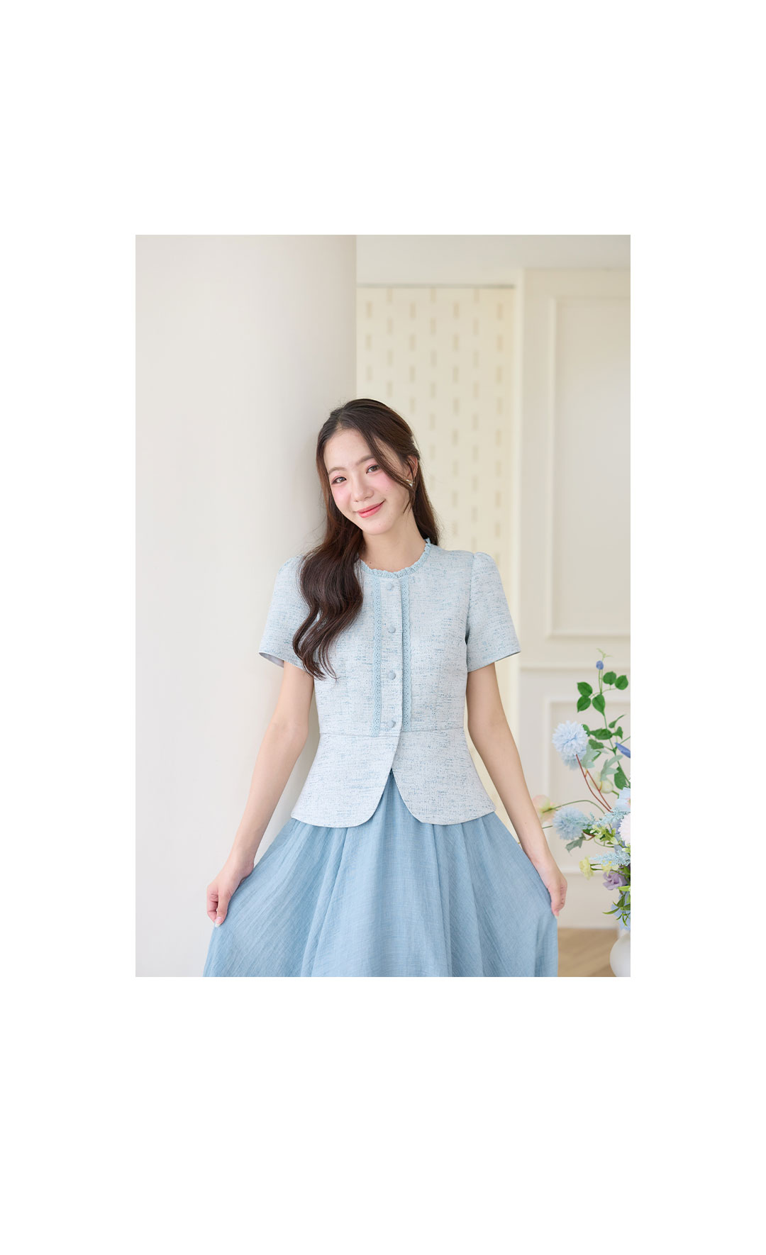 เสื้อตัวนี้คือ Must-Have Item ที่สุด! เสื้อแขนสั้นผ้าทวีตโทนสีฟ้า เรียบหรูดูแพงแบบตะโกน! คัตติ้งเนี้ยบกริบ ผ้าทวีตพรีเมียมขั้นสุด ดีไซน์เข้ารูปใส่ออกมาคือสวยเป๊ะ กุ๊นรอบคอและสาปเสื้อด้วยลูกไม้เล็กๆสีฟ้า เพิ่มความลูกคุณเข้าไปอีก! กระดุมเรียงด้านหน้า มีซับในทั้งตัว ใส่แล้วดูเป็นภูมิฐานสาวหวาน คุณหนูผู้ดีสุดๆ ใครชอบความเรียบหรูสวยละมุนแบบนี้ ห้ามพลาด ของมันต้องมี จะใส่เทศกาลวันแม่ก็เริ่ด ตำด่วนค่าาา
