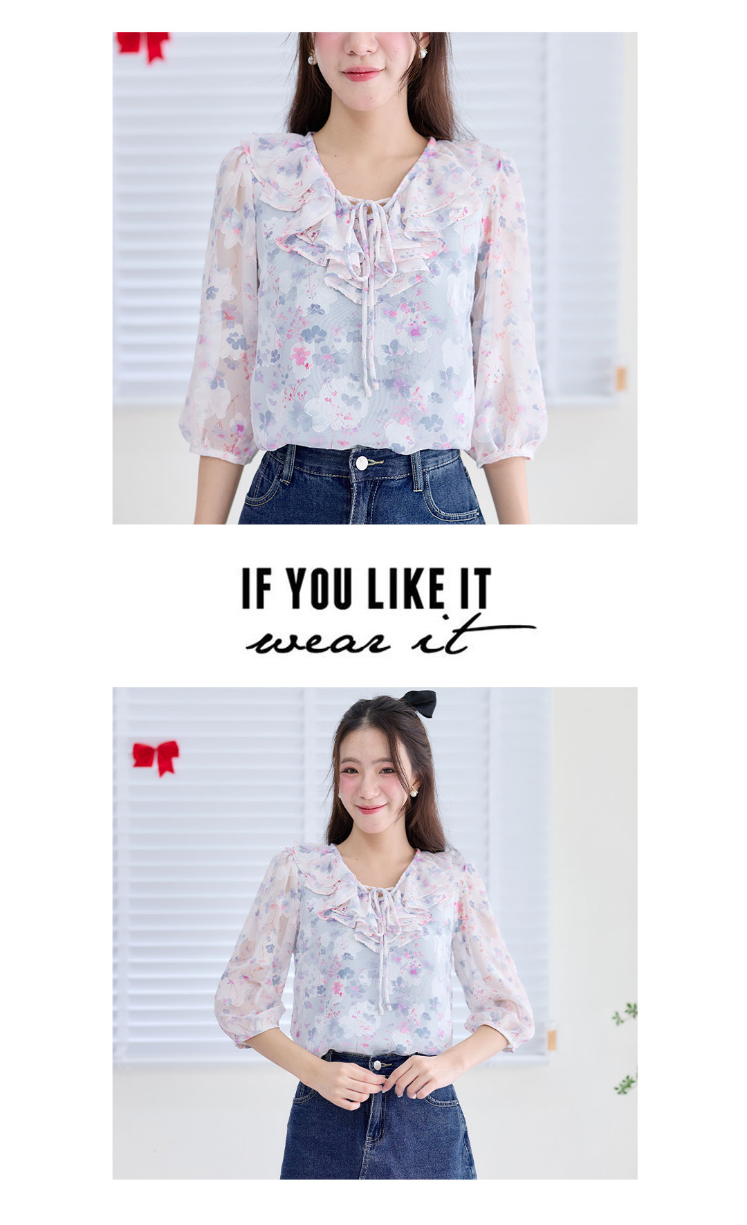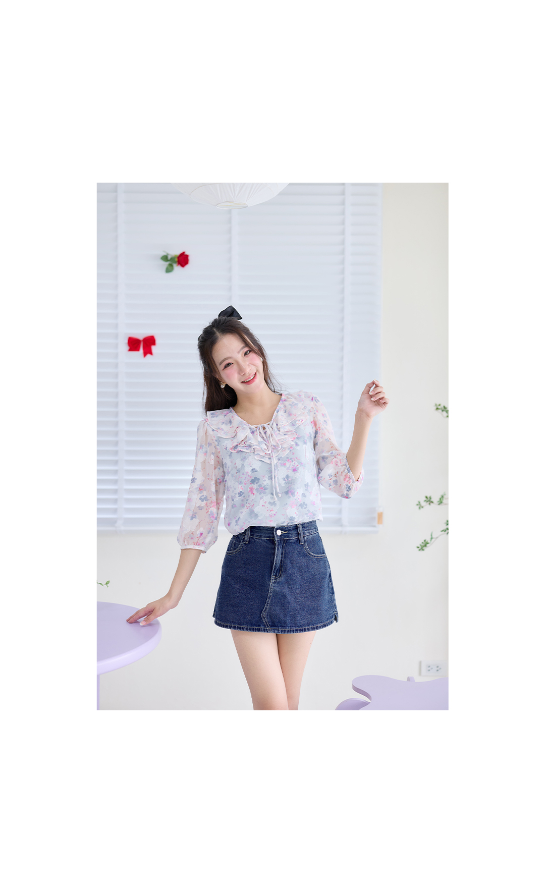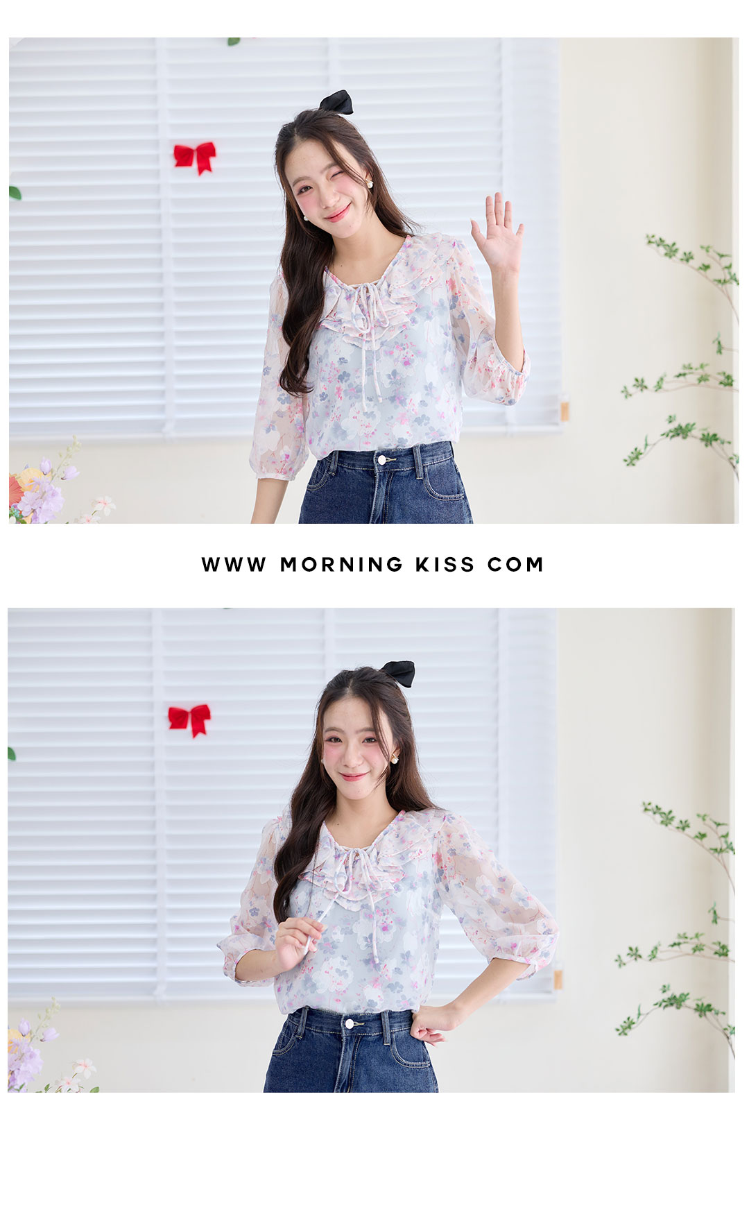 เสื้อตัวนี้คือที่สุดของความคิ้วท์!ดีไซน์สวยเก๋ไม่ซ้ำใครตัวเสื้อเป็นชีฟองสีขาวกัดลายดอกไม้พาสเทล สวยละมุนมากก แต่ความพีคคือ ช่วงตัวเค้าใส่ซับในสีฟ้าเลยดูแบบมีเลเยอร์ มีอะไร ไม่ใช่เสื้อชีฟองบางๆทั่วไป ดีเทลระบายพริ้วๆ แถมผูกโบว์ได้อีก จะปล่อยชิลล์ๆ ก็ได้ หรือผูกเป็นโบว์น่ารักๆ แขนเสื้อพองนิดๆ ใส่แล้วดูน่ารักคุณหนูแบบไม่โอเวอร์ ใส่สบายสุดๆ ไม่ต้องกลัวร้อน แมทช์กับยีนส์ขาสั้นหรือขายาวก็คือสวยครบจบ! จะใส่ไปเที่ยวคาเฟ่ ไปออกเดท หรือไปเดินเล่นชิลล์ๆ ก็คือฟาดได้ทุกลุค Must-have มากๆ เลยตัวนี้