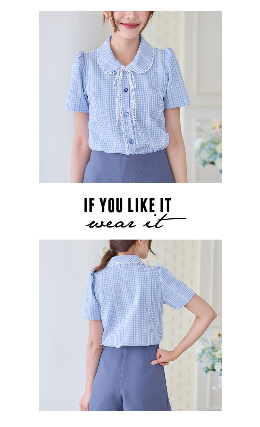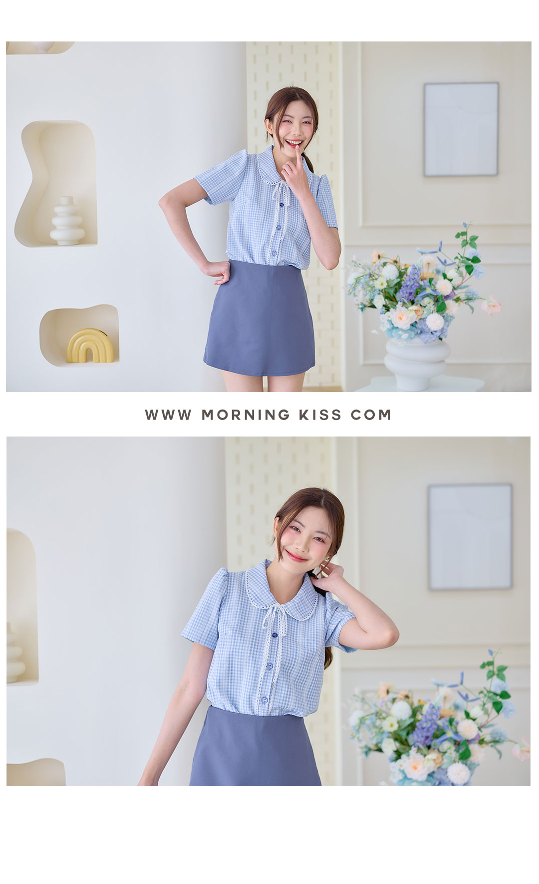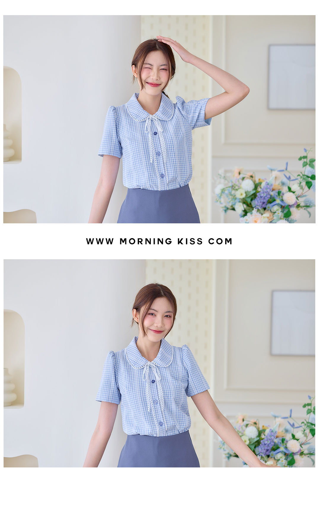 เสื้อตัวนี้น่ารักคูณร้อยไปเลยแขนสั้นลายตารางสีฟ้าขาวสุดคิ้วท์ที่ใส่แล้วคือดูดีมีสไตล์สุดๆมีซับในให้ทั้งตัว ดีเทลคือชนะเลิศคอปกบัวแต่งลูกไม้คือหวานละมุน แถมยังมีโบว์ผ้าลูกไม้แถมมาให้ด้วยนะ กระดุมสีฟ้าเรียงหน้า ใส่ไปไหนก็คือเกิดสุดๆ ไม่ว่าจะไปเที่ยว ไปทำงาน หรือไปออกเดท ก็คือปังทุกลุคยิ่งถ้าแมทช์กับกระโปรงสีพื้นคือยิ่งน่ารักคูณสิบ อยากน่ารักแบบไม่ต้องคิดเยอะ ต้องรีบสอยตัวนี้เลยจ้าา