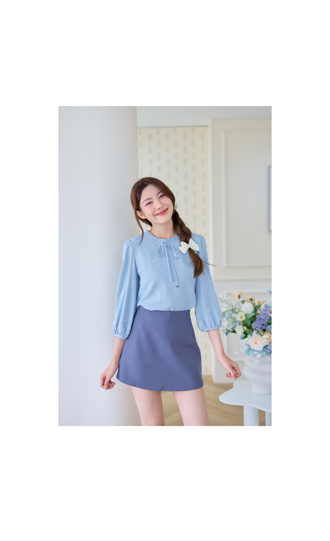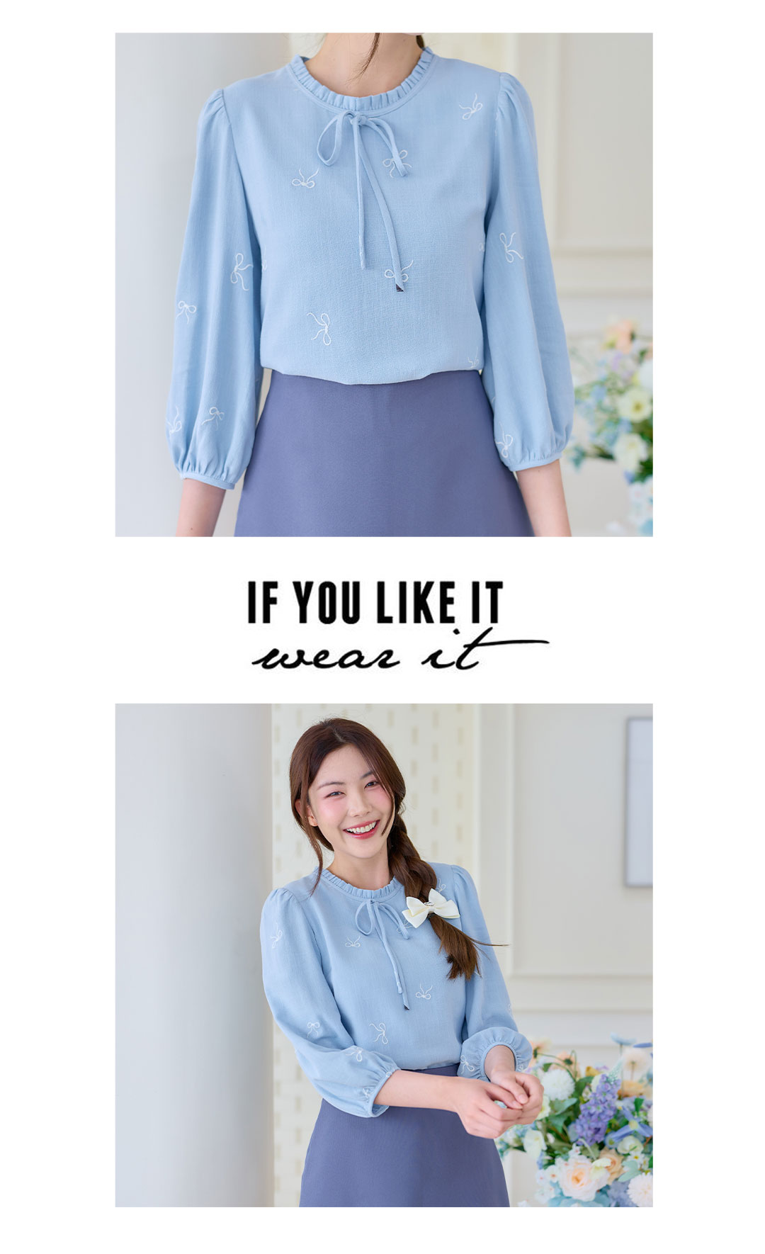 เสื้อตัวนี้คือที่สุดของสายคิ้วท์ที่ต้องมีดีเทลคือพรีเมียมเวอร์ คอเสื้อที่จับระบายๆพร้อมเชือกผูกโบว์น่ารักๆด้านหน้า ให้ฟีลคุณหนูผู้ดีขั้นสุดแถมยังงานปักลายโบว์เล็กๆทั่วทั้งตัวแขนเสื้อทรง 5 ส่วน กำลังดี ใส่แล้วดูน่ารักกำลังพอเหมาะที่สำคัญคือ มีซับในช่วงตัว การันตีความใส่สบาย บอกเลยว่าเสื้อตัวนี้คือ "ไอเท็มลับ" ที่ต้องรีบมีติดตู้ ใส่แล้วได้ลุคคุณหนูน่ารัก หวานๆ แต่ยังดูมีสไตล์ขั้นสุด! แมทช์ง่ายมากๆ! ไม่ว่าจะใส่กับกางเกงยีนส์ตัวโปรด กระโปรงตัวเก่ง หรือกางเกงผ้าชิลๆ ก็เข้ากันได้ทุกลุค! รีบมาตำด่วนๆ เลยนะคะ