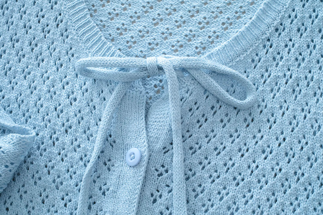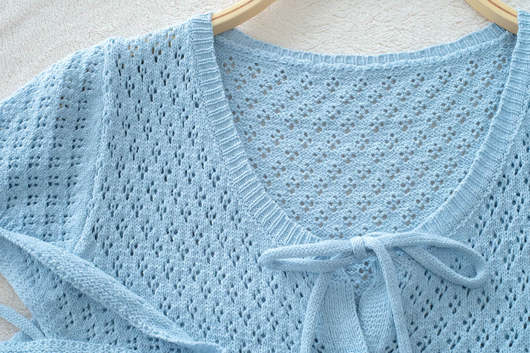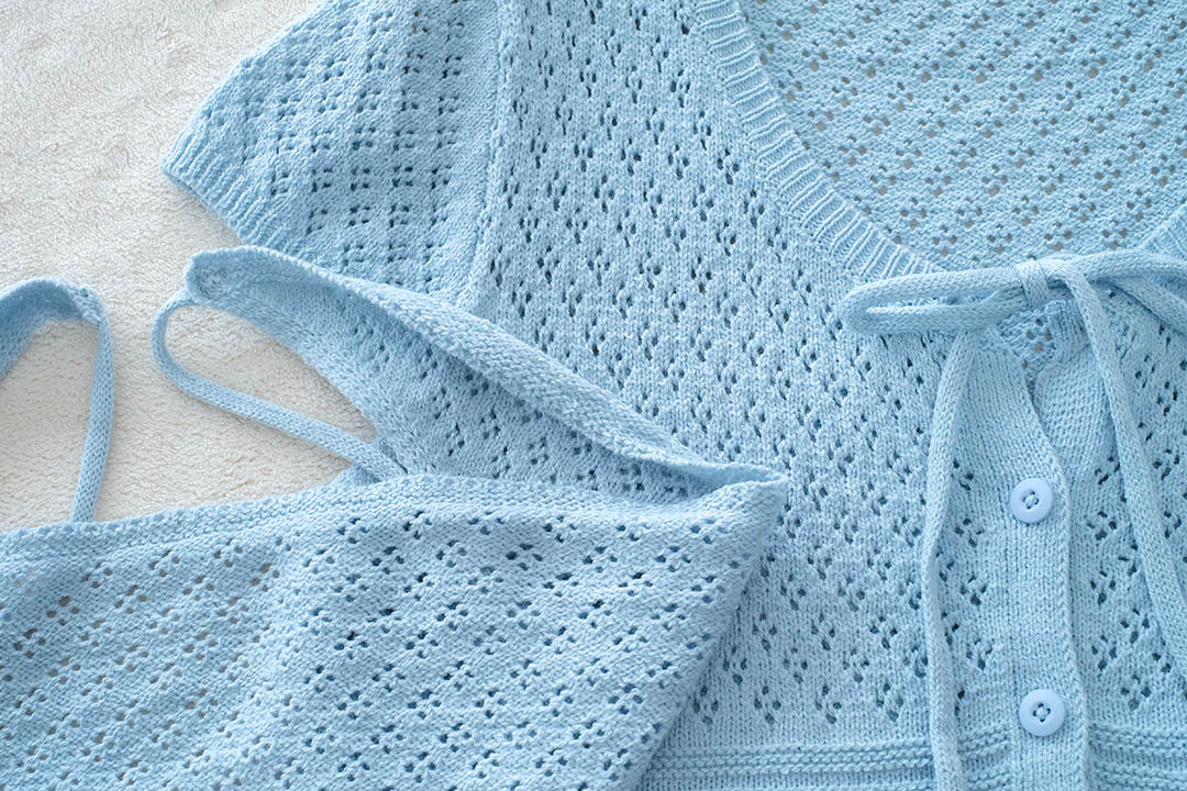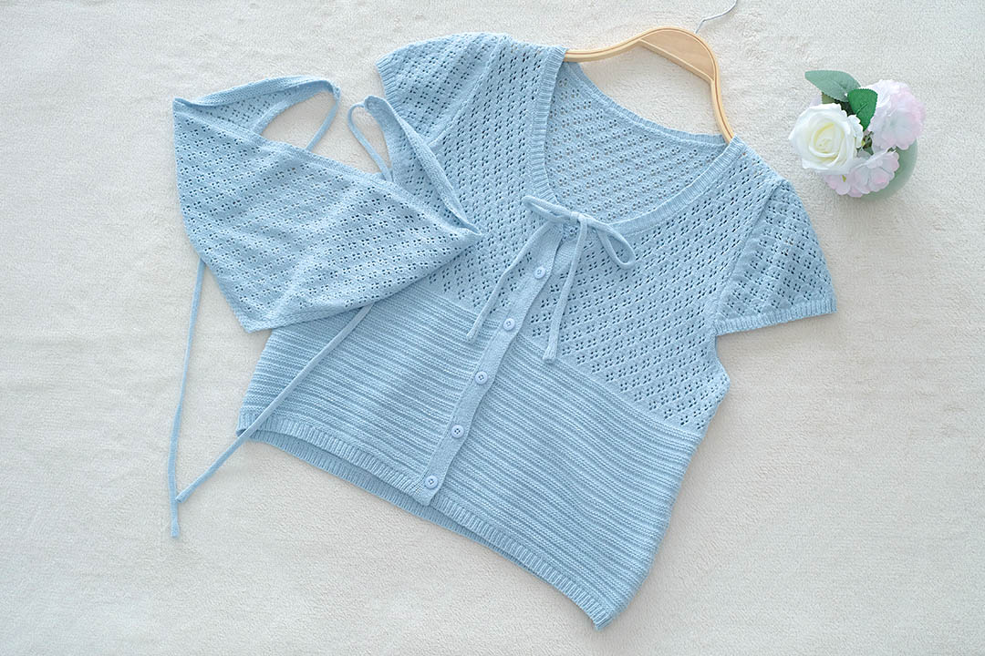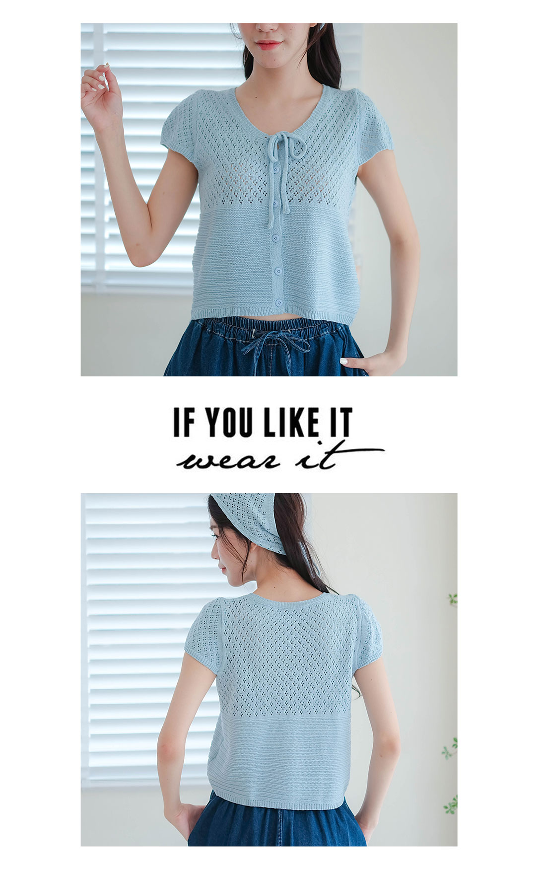 เสื้อไหมพรมตัวนี้น่ารักมาก ดีไซน์คือเก๋สุดๆ ช่วงบนเป็นลายฉลุโปร่งๆ ส่วนช่วงล่างเป็นไหมพรมเนื้อนุ่มทอลาย มีกระดุมด้านหน้าและสายผูกตรงกลางที่ปรับได้ตามใจชอบ ใส่แล้วดูเป็นสาวหวานซ่อนเปรี้ยวเบาๆ ที่สำคัญคือมาพร้อม ผ้าโพกหัว ลายเดียวกันกับเสื้อด้วยนะ! ใส่คู่กันคือคิ้วท์เกินต้าน จะใส่คลุม หรือใส่เดี่ยวๆ ก็สวยปัง แมทช์กับอะไรก็เข้าหมด บอกเลยว่าได้ลุคที่ดูดีมีสไตล์ แถมยังน่ารักมากๆ บอกเลยว่าซื้อ 1 ได้ถึง 2 คุ้มค่ามาก คุ้มกว่านี้ไม่มีอีกแล้ว ห้ามพลาดเลยนะ!