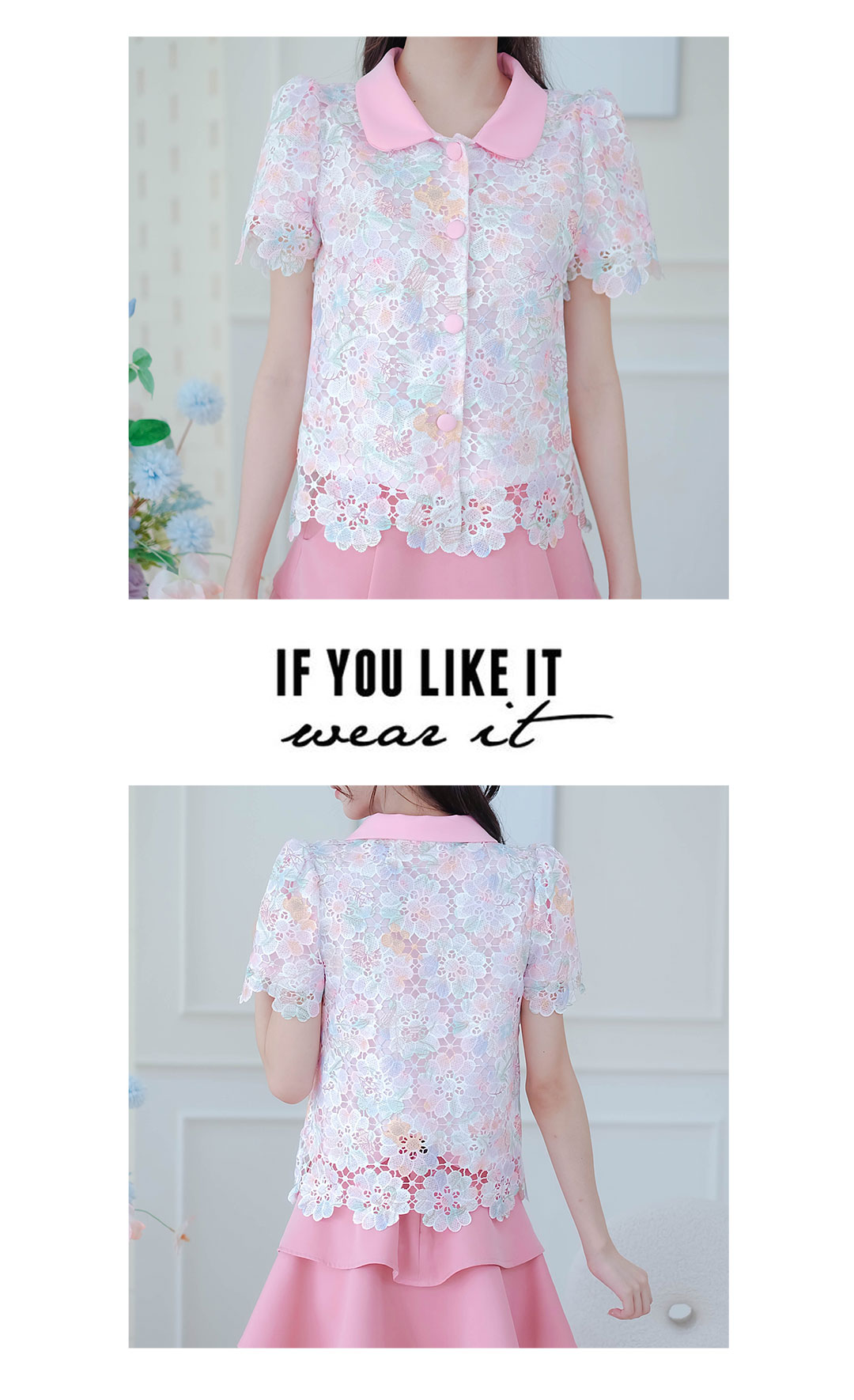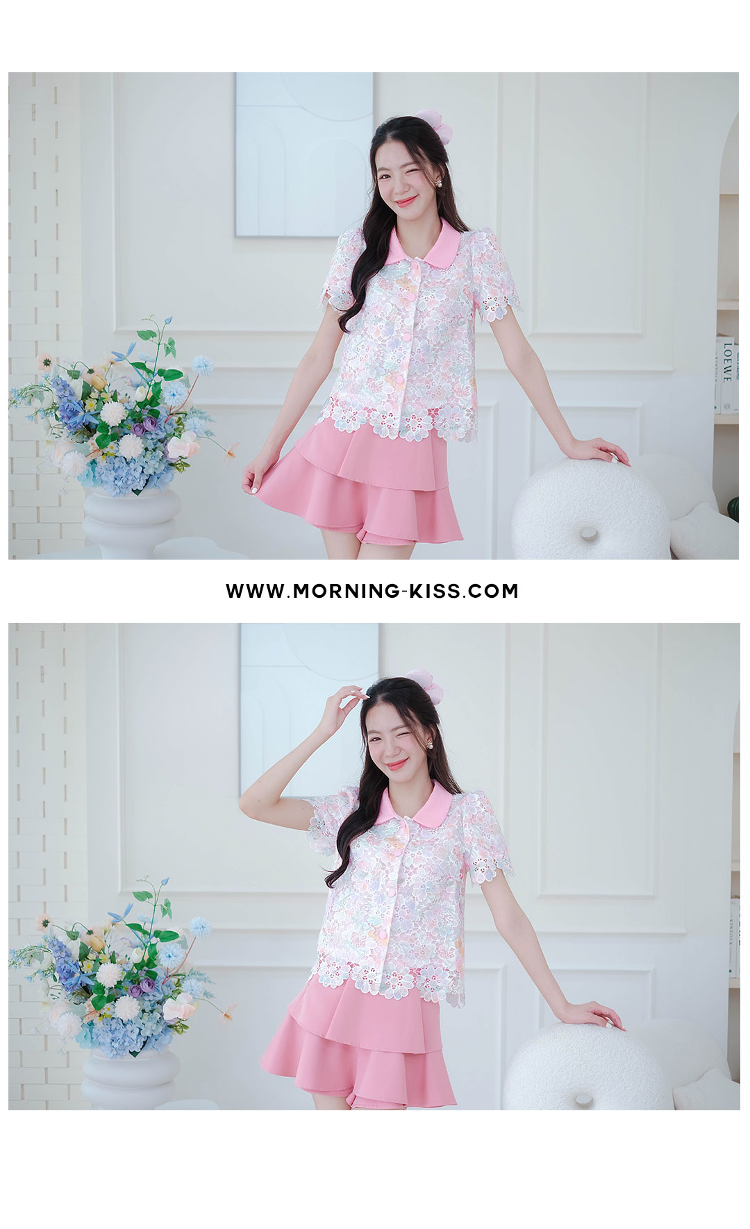 เสื้อตัวนี้คือที่สุดของความหรูหราแต่ก็ยังน่ารัก ฟีลลูกคุณหนูยืนหนึ่ง ผ้าลูกไม้พรีเมียมที่ทอลายแน่นมากโทนสีหวานละมุนแบบพาสเทล คอปกสีชมพูทรงกลมคือคอมพลีทลุคสุดๆเสื้อเป็นแบบกระดุมเรียงหน้า มีซับในทั้งตัว ทำให้มั่นใจได้ว่าใส่แล้วไม่โป๊ ใส่สบายแน่นอน แมทช์กับกระโปรงหรือกางเกงขายาวก็ได้ลุคไฮโซ ใส่ออกงานก็คือเอาอยู่ ใครไม่อยากตกเทรนด์ความคิ้วท์แบบไฮคลาสต้องจัดตัวนี้ ไม่ซื้อคือพลาดมาก