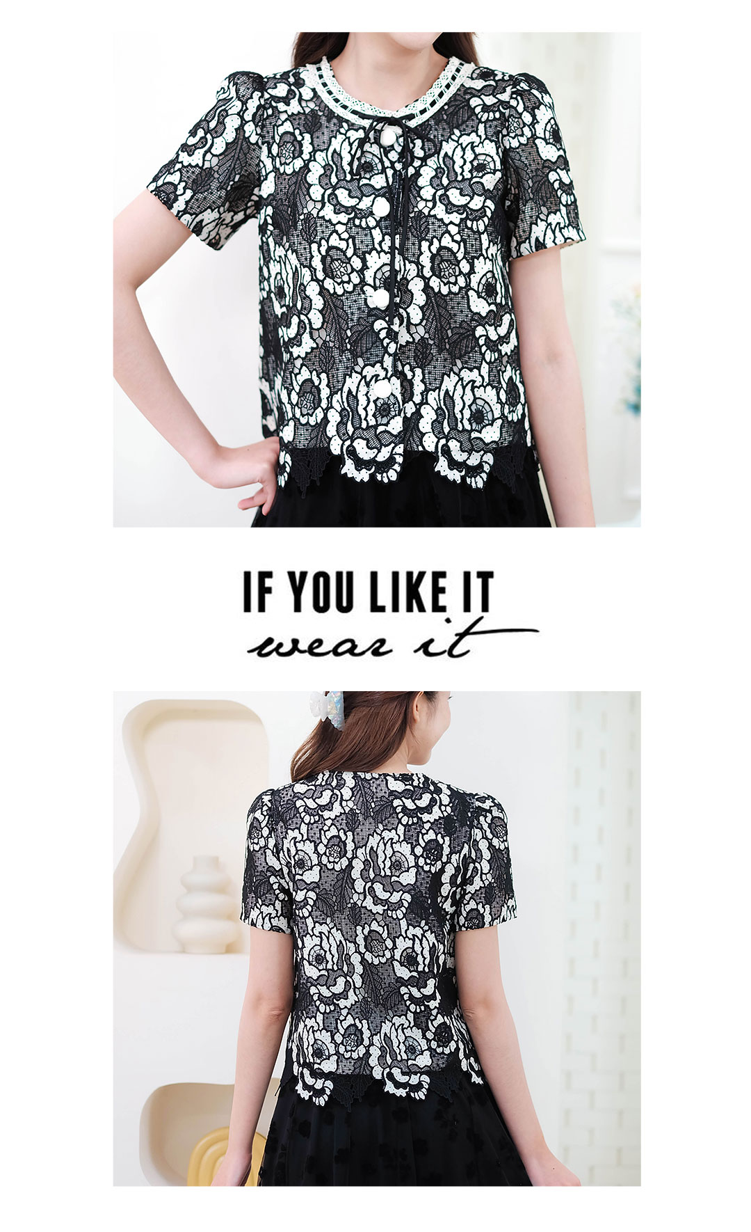 บอกเลยว่าเสื้อตัวนี้คือ Must-Have ดีเทลแน่นแบบตะโกน ใส่แล้วดูแพง ดูคุณหนูสุดๆ ใครเห็นก็ต้องเหลียวหลังแน่นอนตัวเสื้อเป็นผ้าลูกไม้สีดำลายดอกไม้เย็บสลับกับผ้าขาวที่มีลายจุดเล็กๆทำให้เสื้อดูมีมิติ ไม่เรียบจนเกินไป แถมตัวซับในทั้งตัว ดีไซน์เสื้อน่ารักไม่ไหว มีกระดุมมุเรียงกันตรงกลาง ช่วงคอเป็นระบายรูดๆ ที่มีสายผูกเป็นโบว์ เพิ่มความคิ้วท์ให้เสื้อดูน่ารักขึ้นไปอีกแต่ก็ยังคงความเก๋ไว้แบบสุด จะใส่ไปคาเฟ่ ไปเที่ยว หรือไปเดทก็คือเริ่ดหมด แมทช์ง่ายมาก แค่กางเกงยีนส์สักตัวก็คอมพลีทลุคแล้ว ใส่แล้วดูดีมีสไตล์ ไม่ซ้ำใครแน่นอน