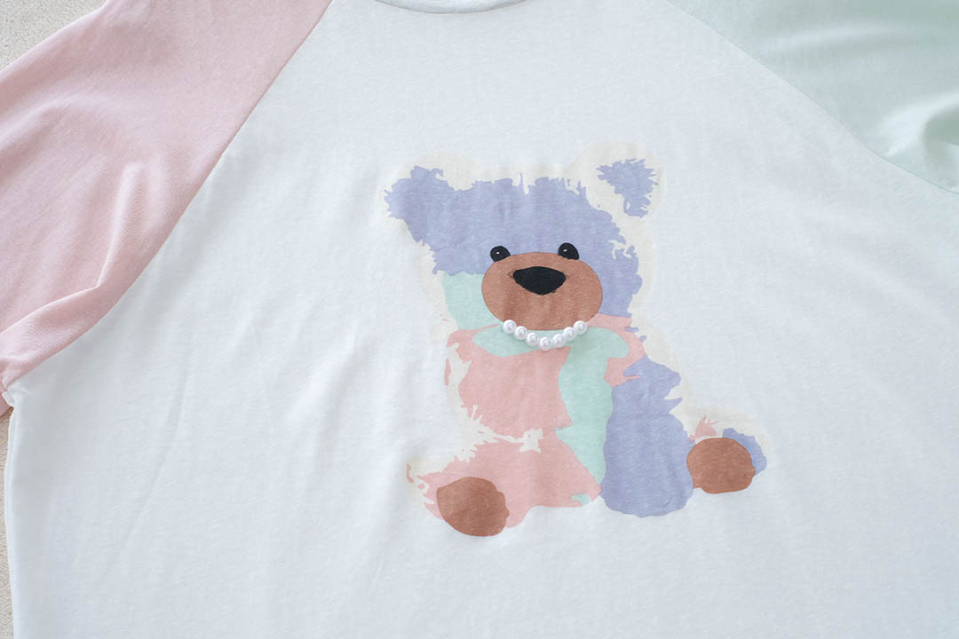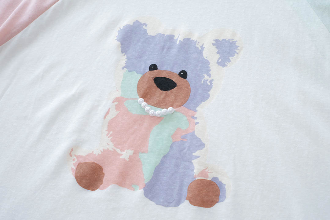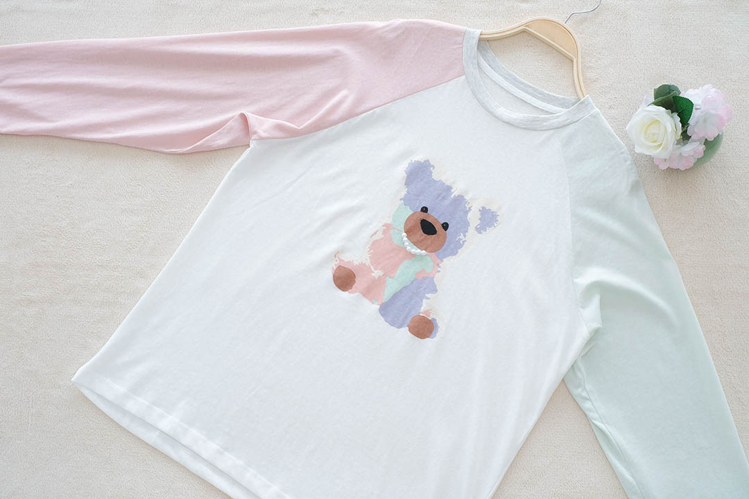 เสื้อแขนยาวตัวนี้คือน่ารักมาก ดีไซน์เสื้อสีขาวเรียบๆ แต่เพิ่มความคิ้วท์ด้วยแขน Raglan สีพาสเทลสองข้างที่ไม่เหมือนกันข้างนึงสีชมพูอีกข้างสีเขียวอ่อนคือดีงามมากแม่ที่สำคัญคือมีน้องหมีสุดน่ารักอยู่ตรงกลาง ใส่แล้วดูสดใสซุกซนสุดๆ เนื้อผ้าไม่หนาไม่บางเกินไป ใส่สบายมาก จะใส่ไปเที่ยว ไปคาเฟ่ หรือใส่เล่นอยู่บ้านก็ได้หมด แมทช์กับอะไรก็ปัง จะใส่กับกางเกงยีนส์ขาสั้นขายาว หรือกระโปรงก็คือได้ทุกลุค เป็นไอเท็มที่ต้องมีติดตู้เลยจ้า