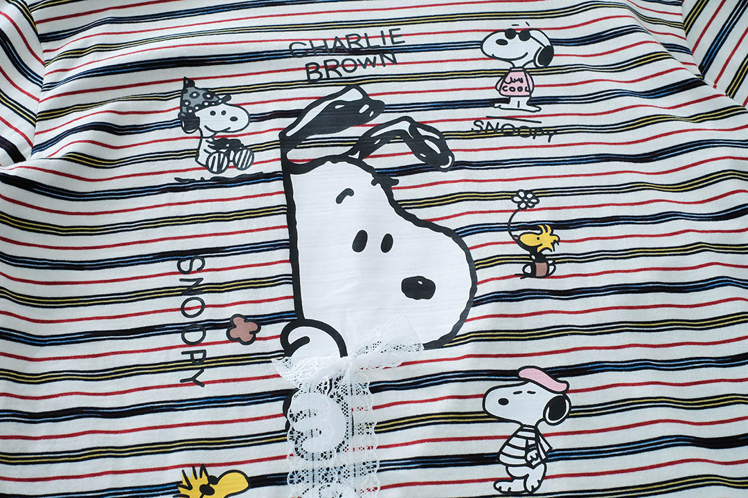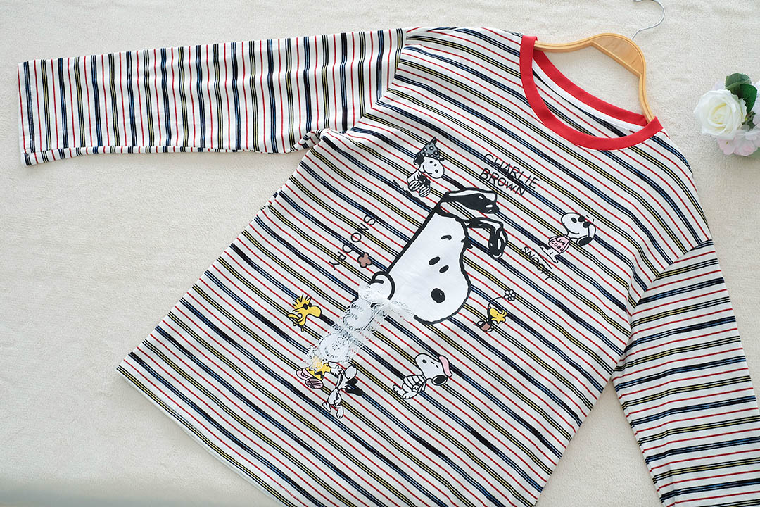 เสื้อแขนยาวลายสลับสี Snoopy สุดคิ้วท์สลับสีขาว-ดำ-น้ำตาลสุดชิค ตัดกับขอบคอเสื้อสีแดงแบบมีสไตล์ ที่สำคัญคือมีน้อง Snoopy และผองเพื่อนมาสร้างความน่ารักแบบคูณร้อยตัวนี้คือใส่สบายมาก เนื้อผ้าไม่หนาไม่บางเกินไป ใส่ได้ทั้งในห้องแอร์ หรือจะใส่ไปเที่ยวชิลล์ๆ ก็ได้หมด จะแมทช์กับกางเกงยีนส์ขายาวก็ดูเท่ๆ หรือจะใส่กับขาสั้นก็ได้ลุคสบายๆ ใส่ได้บ่อยไม่มีเบื่อแน่นอน