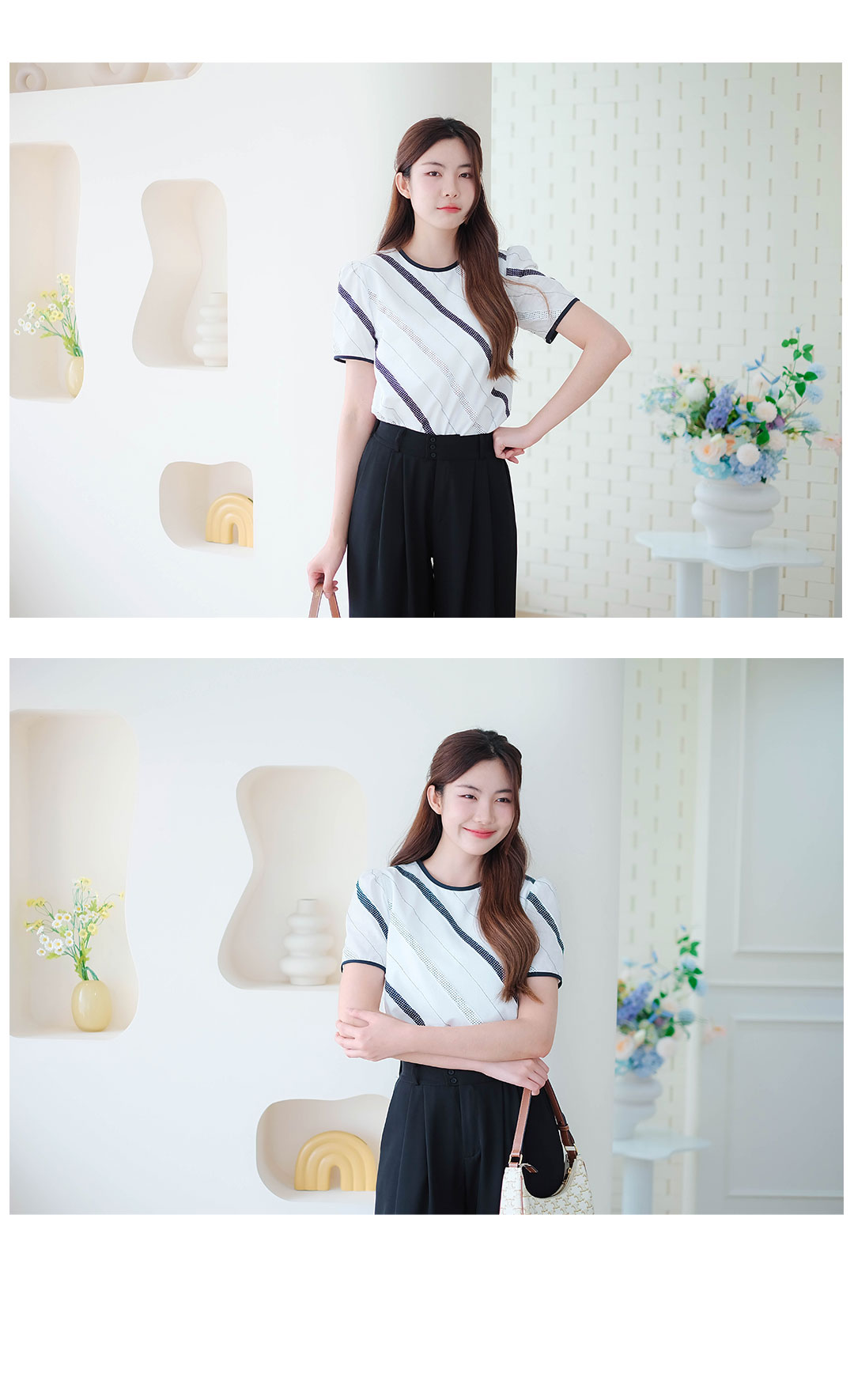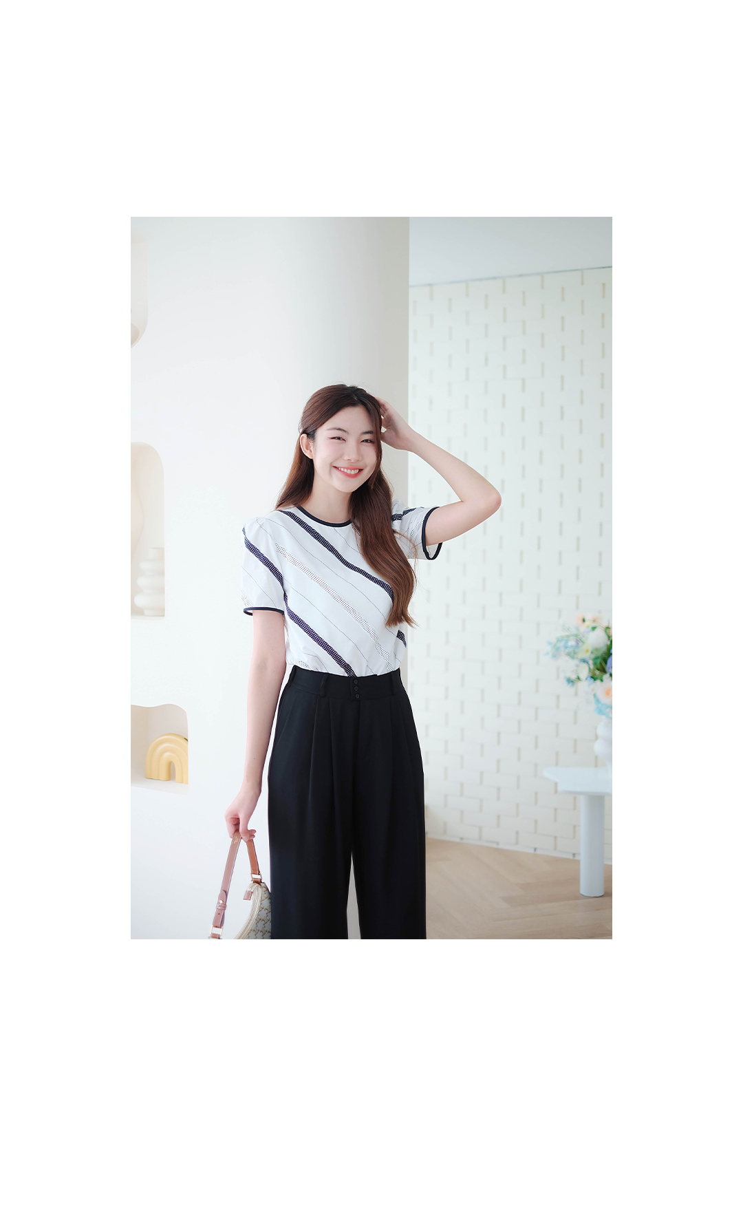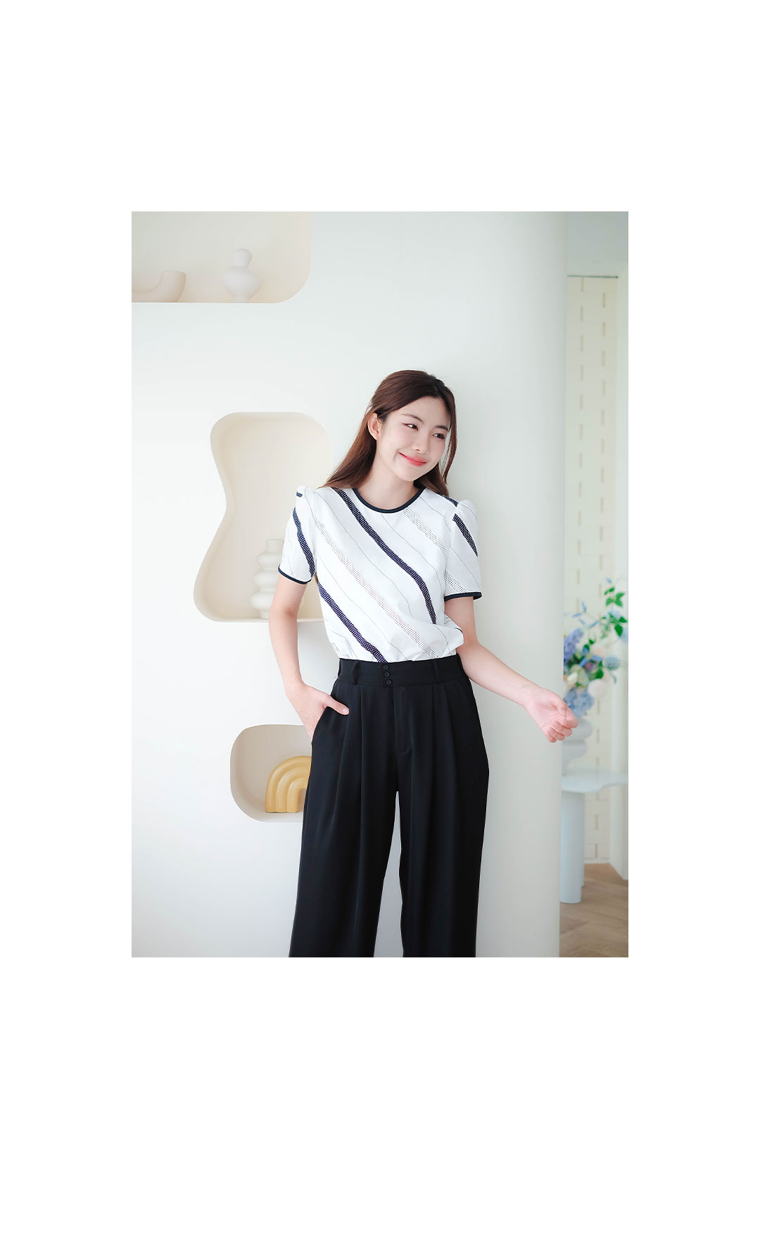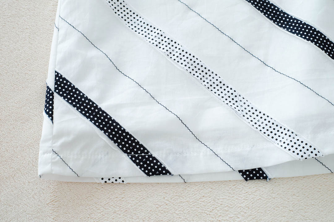 เสื้อลายทางเฉียงขาว-ดำสุดคูล ตัวนี้คือปังไม่ไหว ดีไซน์ลายทางเฉียงๆที่เป็นทั้งผ้าสีดำสลับลายจุดและลายปักดอทเล็กๆบนผ้าสีขาว ส่แล้วดูเพรียว มีซับในช่วงตัวส่วนช่วงแขนจะไม่มีซับในนะ เพื่อความเบาสบายและโปร่งสบายเวลาสวมใส่ คอเสื้อกับปลายแขนเป็นขอบสีดำตัดกันเพิ่มความชิค ตัวนี้คือใส่ได้ทุกวัน แมทช์ง่ายสุดๆ จะใส่กับกางเกงยีนส์ขาสั้นขายาวหรือกระโปรงก็คือเริ่ดหมด ได้ลุคแบบมินิมอลแต่มีสไตล์แน่นอนไซส์ก็มีให้เลือกเยอะมาก ตั้งแต่ S ไปจนถึง 4XL ใครกำลังหาเสื้อตัวเก๋ๆ ที่ใส่ได้บ่อย ห้ามพลาดเลยน้าาา ช้อปเลย ไม่ผิดหวังแน่นอนจ้า