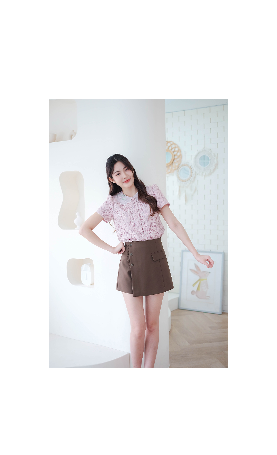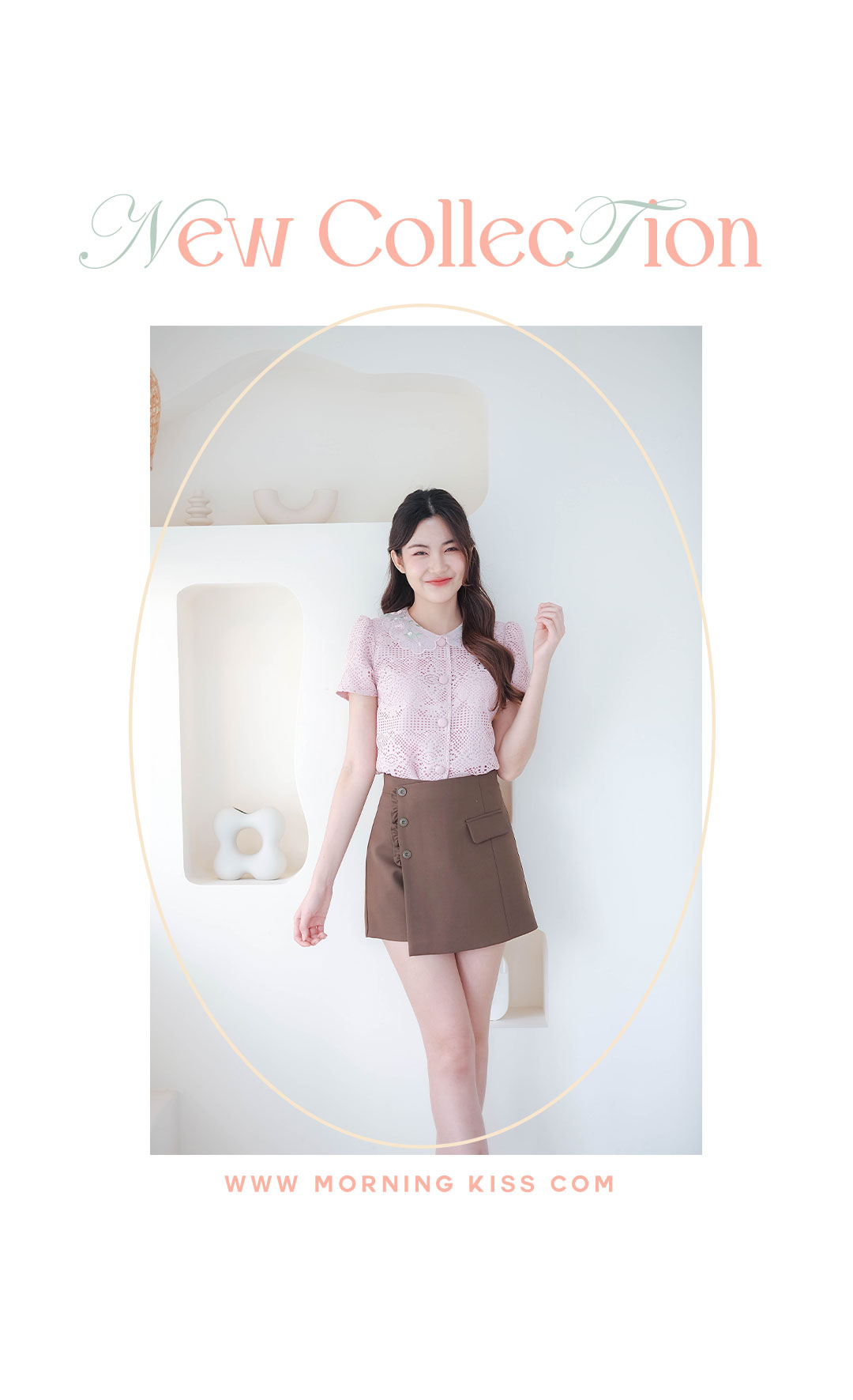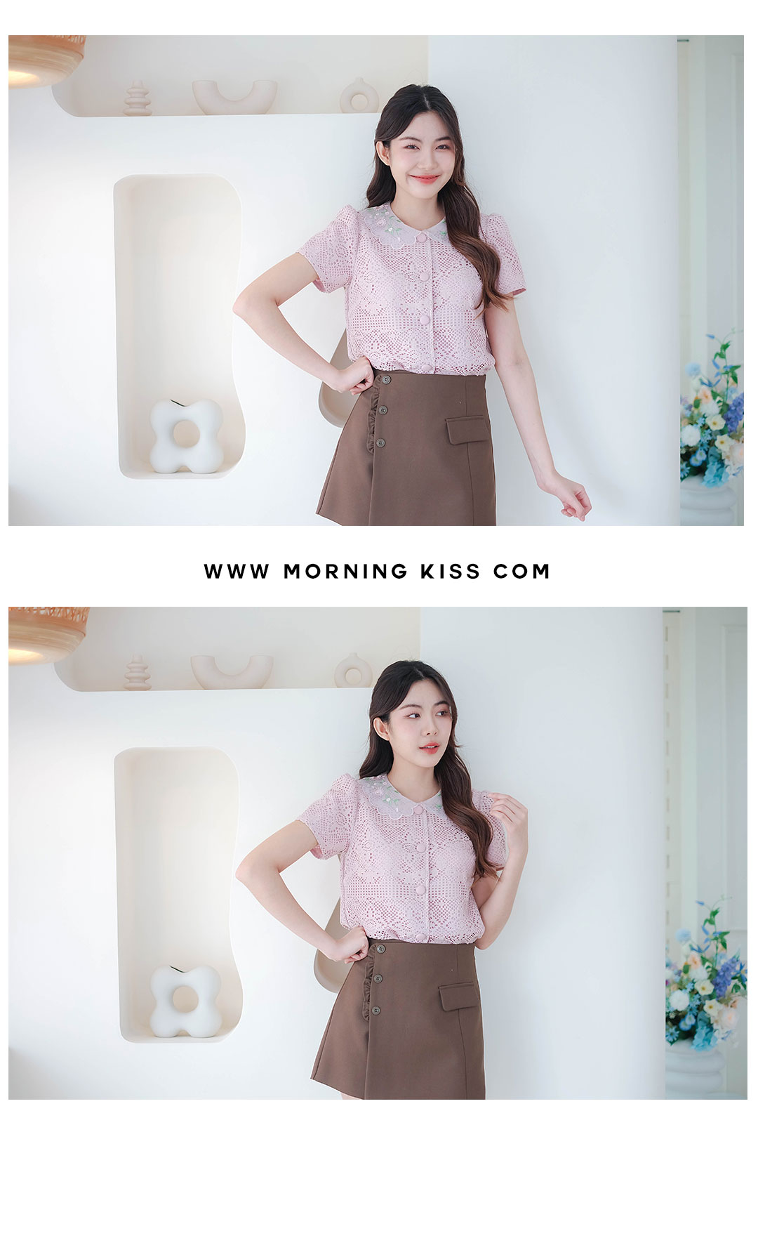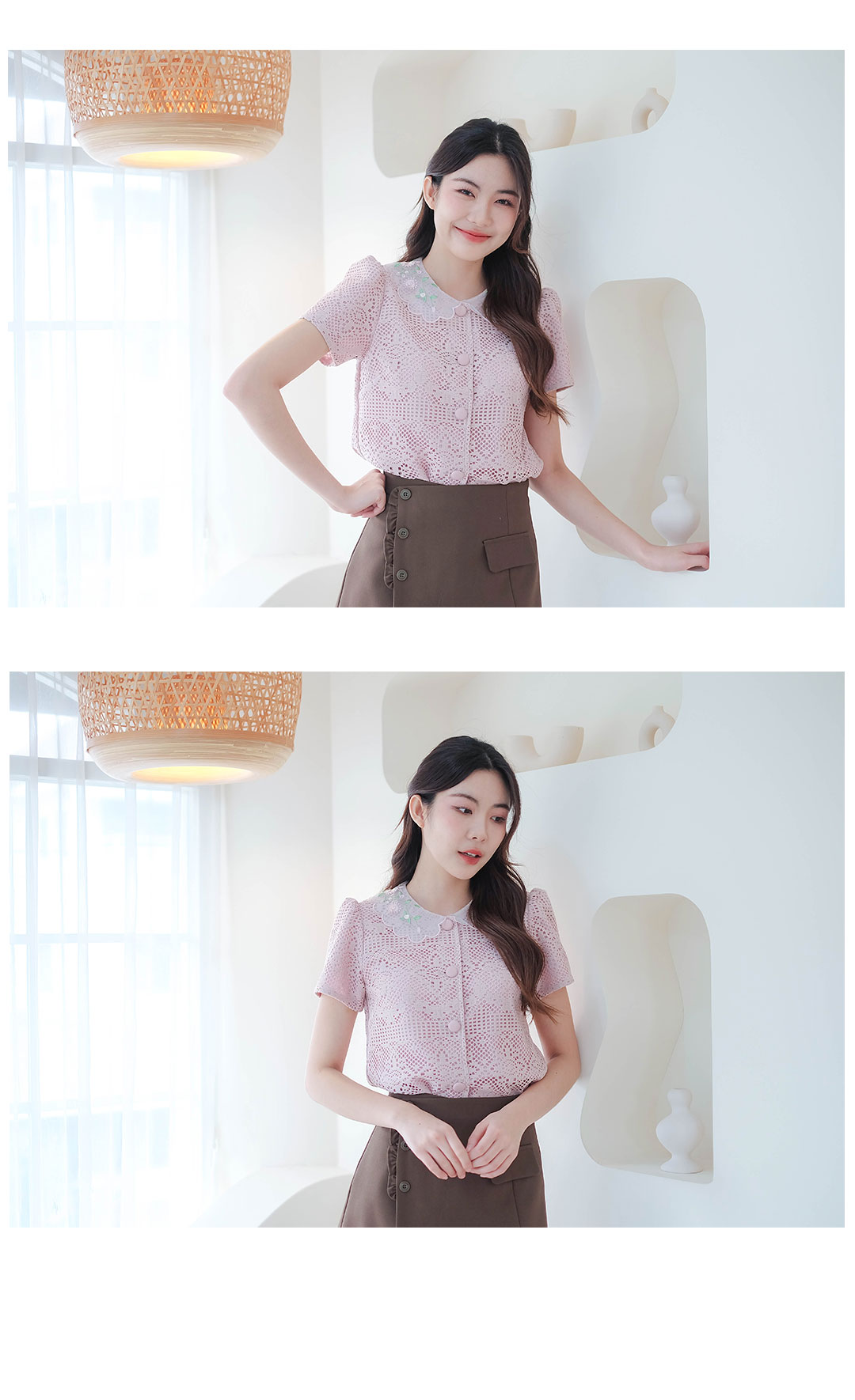 สวยหวานน่ารักมากๆ กับเสื้อแขนสั้นโทนสีชมพูงานถักลายลูกไม้ลวดลายสวยหวานโดดเด่น ช่วงคอปกเป็นผ้าแก้วเนื้อนิ่มแต่งงานปักดอกไม้ทำหยักๆกุ๊นขอบด้วยสีชมพู กระดุมเรียงหน้า ซับในทั้งตัว ใส่แล้วน่ารักสุดๆ แมทกับขาสั้นหรือขายาว ดูสวยแพง ใส่ทำงานก็ได้ใส่เที่ยวก็น่ารัก รายการนี้แนะนำเลย