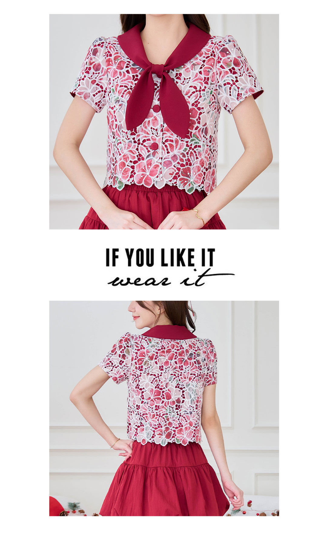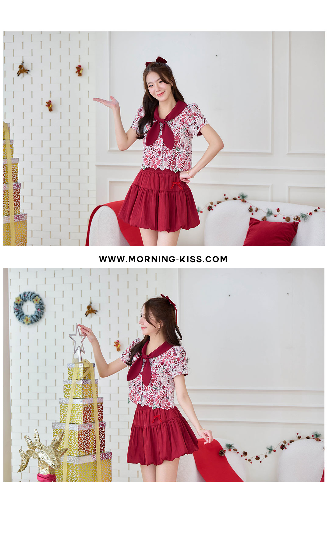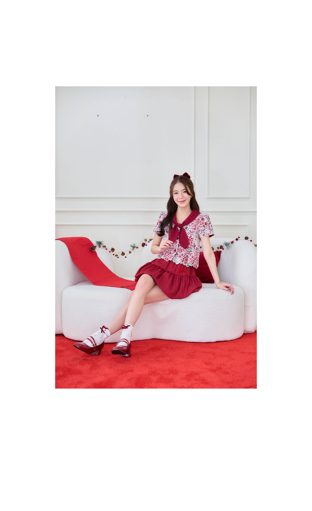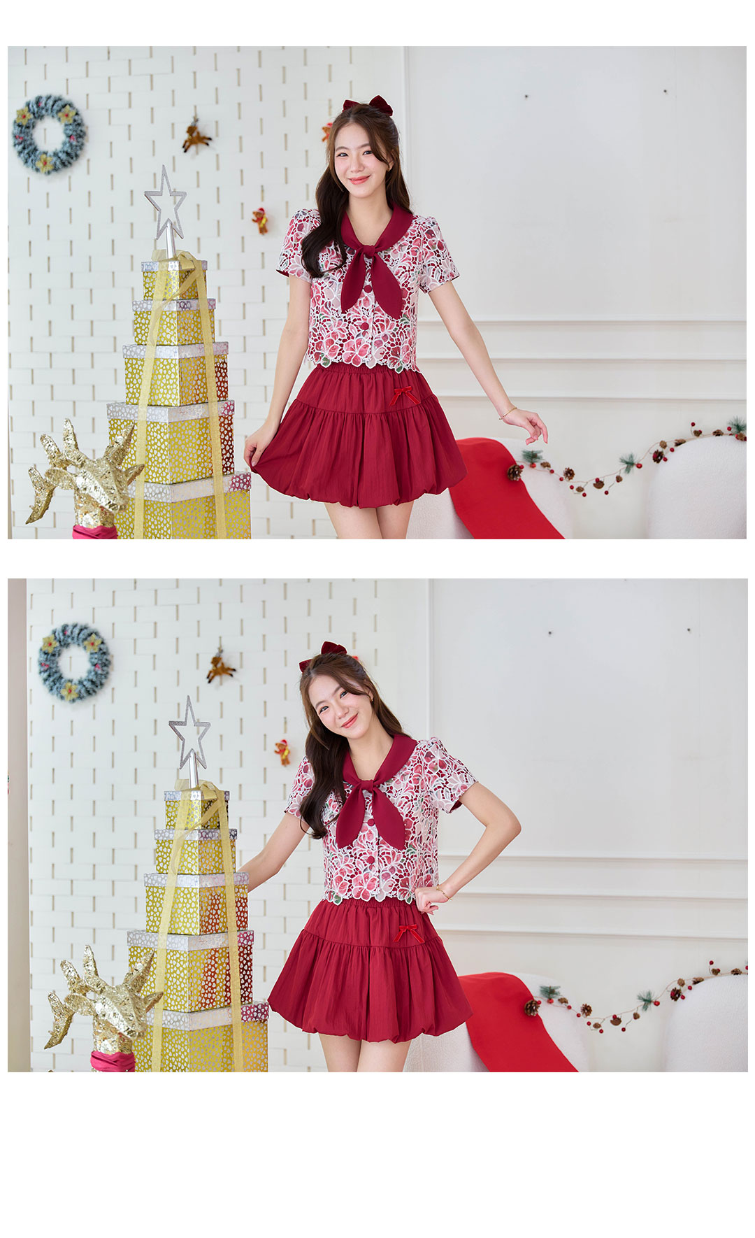 ต้อนรับคริสมาสจัดเสื้อน่ารักๆโทนแดงเขียว ห้ามพลาดเลย Premium Quality ลุคน่ารักใสๆ กับเสื้อทรง crop ใส่พอดีเอว ผ้าลูกไม้ลายดอกงานปริ้นโทนสีเขียวแดงผสมกันได้ลงตัว สวยโดดเด่น ช่วงคอดีไซน์เป็นโบว์ใหญ่น่ารักๆ กระดุมเรียงหน้า ใส่ทำงานก็ได้ใส่เที่ยวก็น่ารัก รายการนี้แนะนำเลย งานคุณภาพคับแก้ว