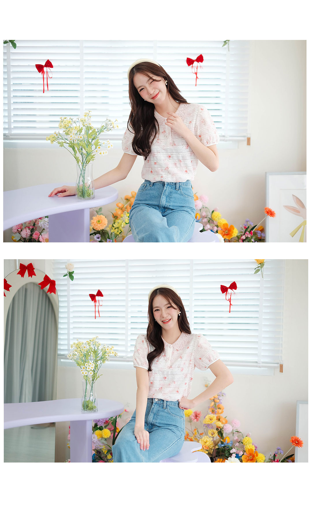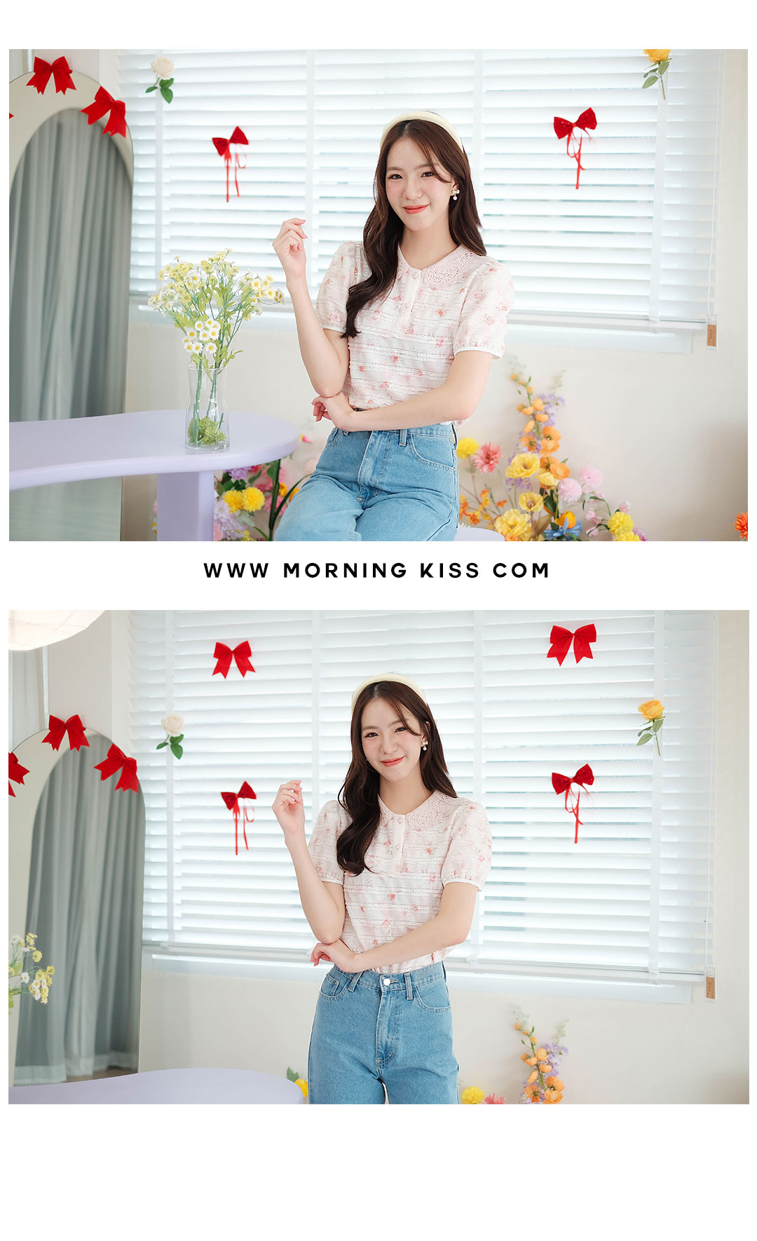 รุ่นนี้จัดไปไม่ผิดหวังแน่นอน สไตส์สวยหวานน่ารักๆเลย เสื้อแขนสั้นโทนสีชมพูลายดอกรอบตัว แต่งคอปกผ้าถักลูกไม้สีชมพู กระดุมคอเรียงหน้า ตัวเสื้อแต่งระบายชั้นๆเล็กๆ เนื้อผ้าดีใส่สบาย ลายผ้าน่ารักมากๆ ใส่ทำงานก็ได้ใส่เที่ยวก็น่ารัก