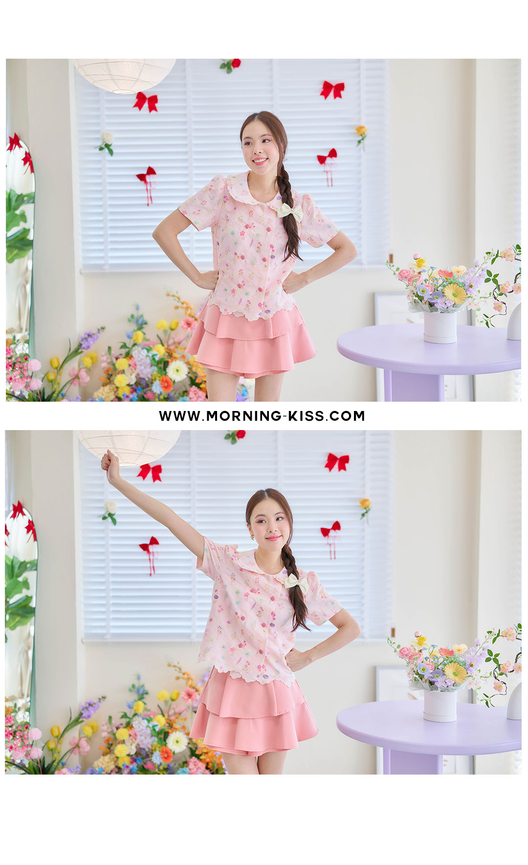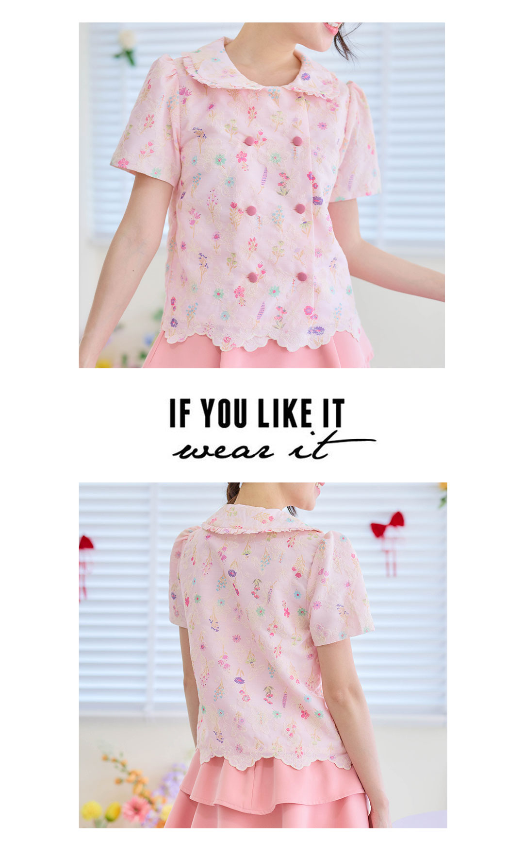 รุ่นนี้คือ Must-Have สำหรับสายหวานเลยค่า! เสื้อแขนสั้นคอปกโทนสีชมพู เนื้อผ้า Cotton พิมพ์ลายดอกไม้หลากสี พร้อมงานปักลายดอกไม้สีครีมที่ช่วยเพิ่ม Texture แบบไม่ซ้ำใคร ใส่ซับในทั้งตัว ดีเทลคอปกระบายผ้าเดียวกับตัวเสื้อ เสริมความเก๋ด้วยกระดุมคู่เรียงหน้า ชายเสื้อเป็นชายเชิง รุ่นนี้แมทช์ง่ายจะใส่คู่กับยีนส์หรือกระโปรงก็ลงตัวทุกลุค ใครชอบสไตล์หวานๆแต่ยังดูมีดีเทลเก๋ๆ ไม่จืดชืด ตัวนี้คือคำตอบเลยค่าา