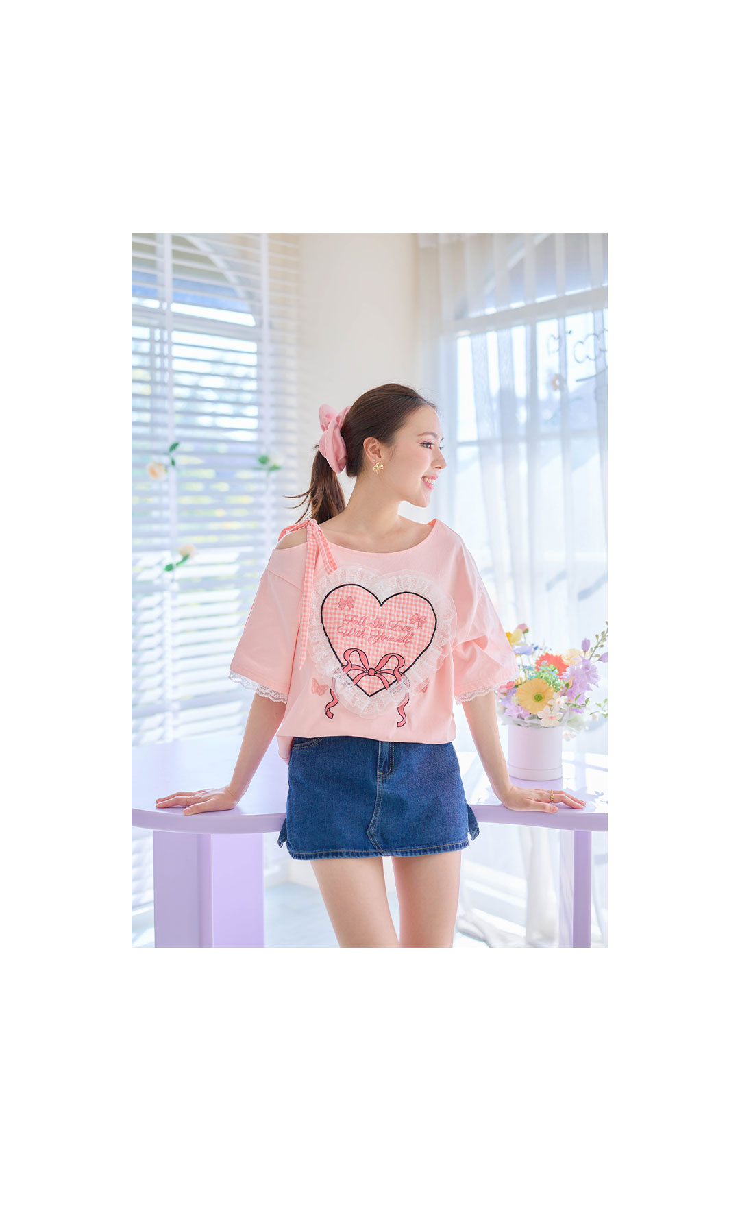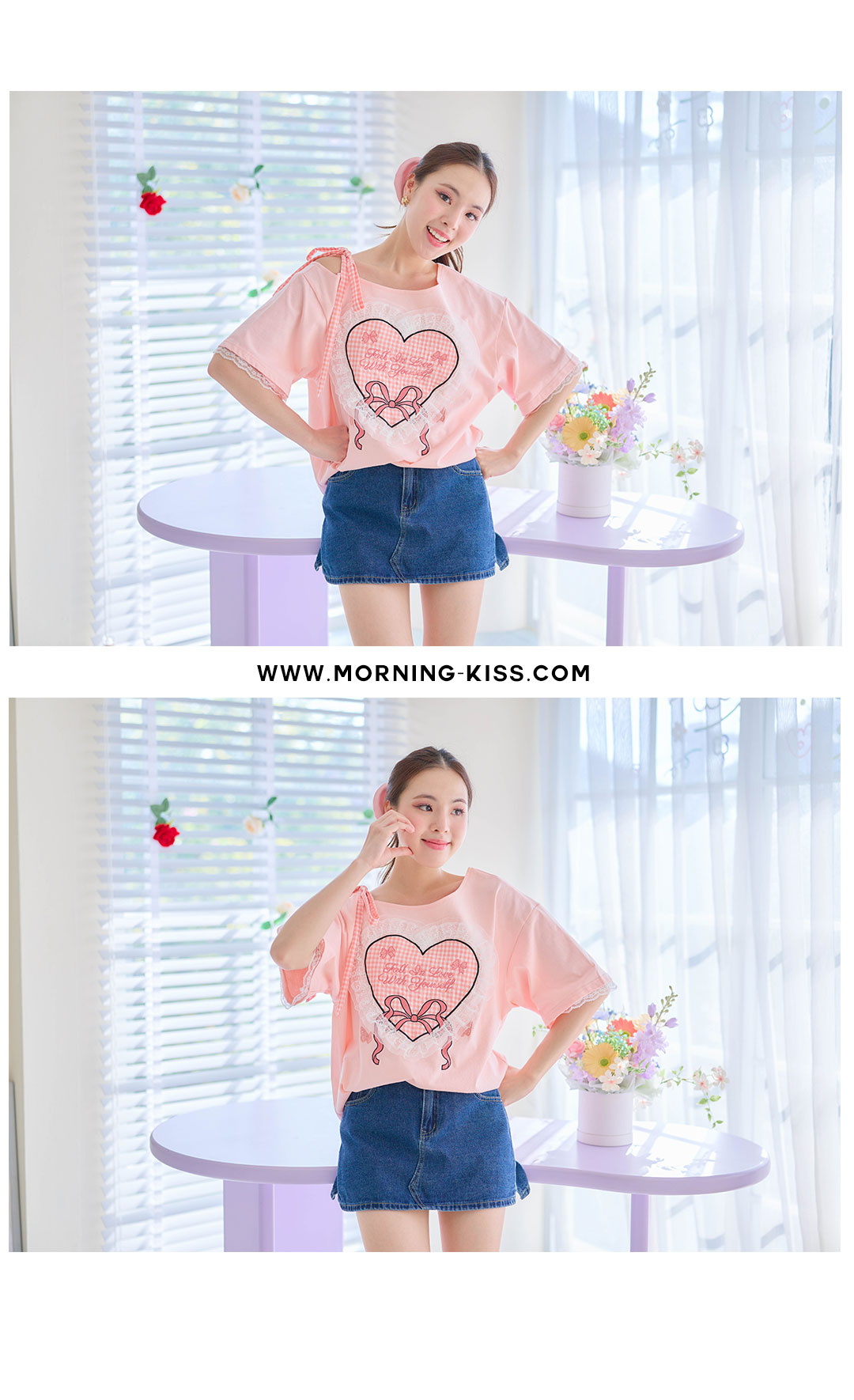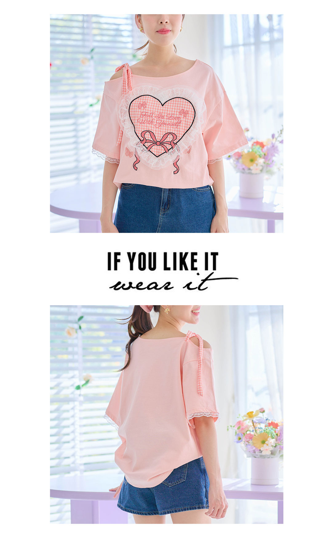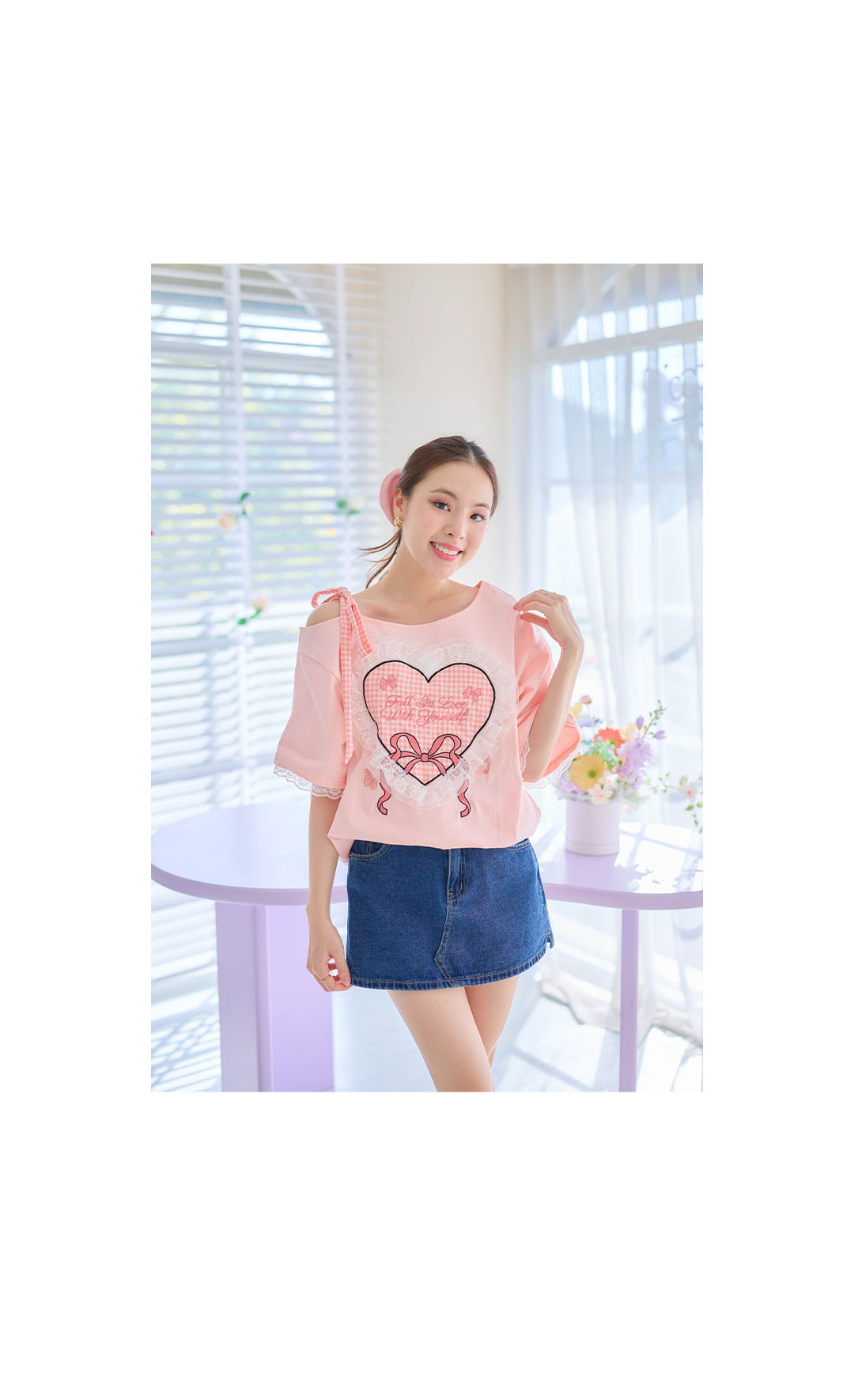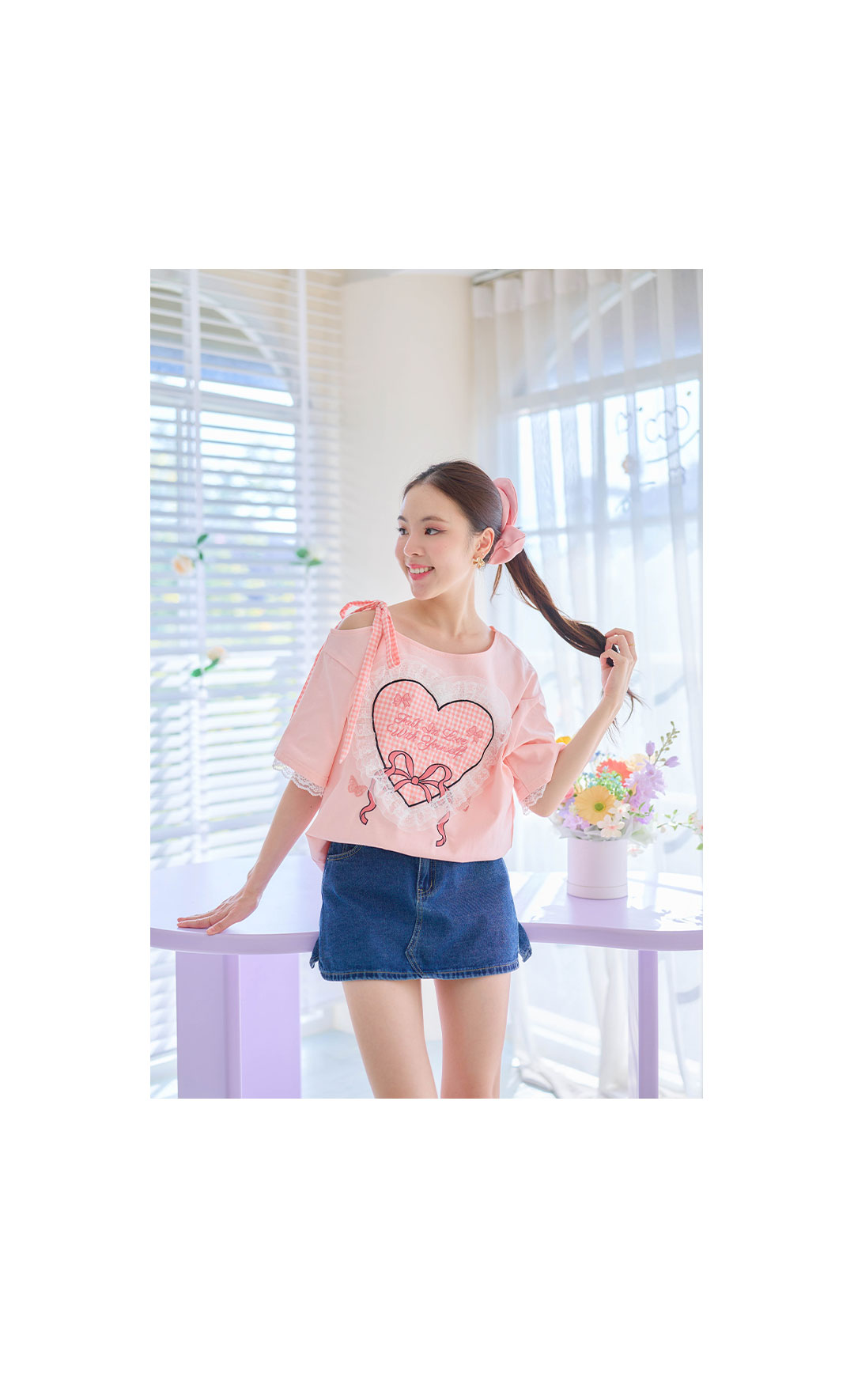 รุ่นนี้มาในแบบหวานๆปนเซ๊กซี่นิดๆกับเสื้อแขนสั้นผ้า Cotton งานติดรูปหัวใจดวงโตผ้าลายตารางเล็กๆสีชมพูสลับขาว+งานปักอักษรและโบว์แต่งระบายด้วยผ้าลูกไม้สีขาว ช่วงแขนเว้าเล็กน้อยดีไซน์ผูกเป็นโบว์เก๋ๆ ปลายแขนต่อด้วยผ้าลูกไม้สีขาวเล็กๆ แบบสวยเก๋ไม่ซ้ำใคร รับรองจัดไปไม่ผิดหวังแน่นอนค่ะ