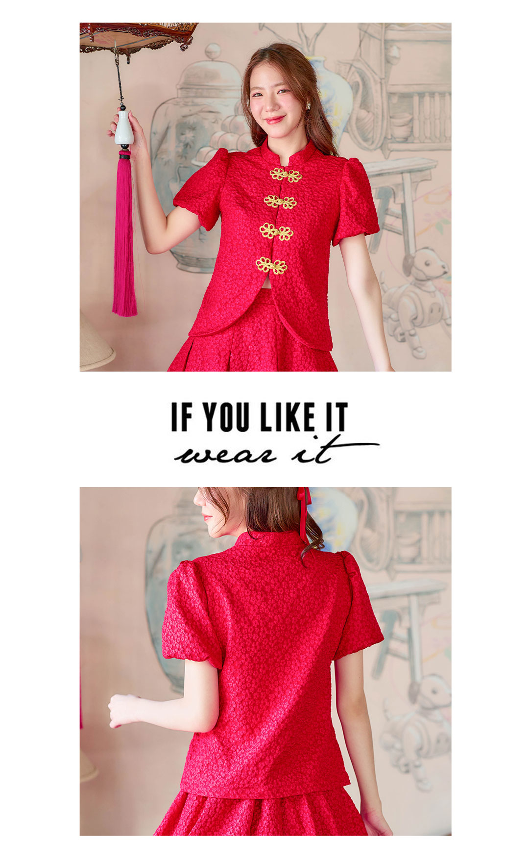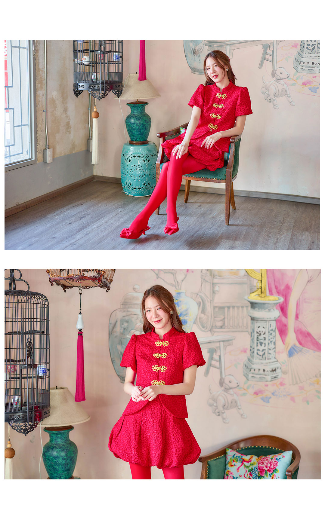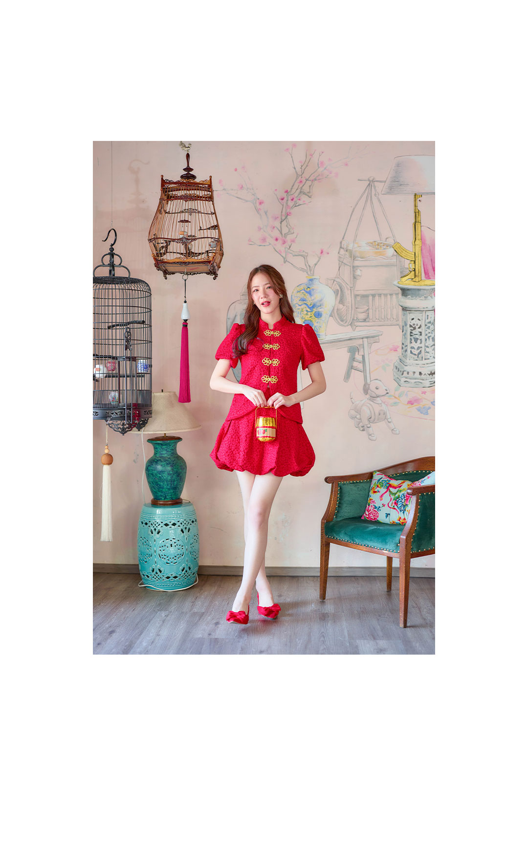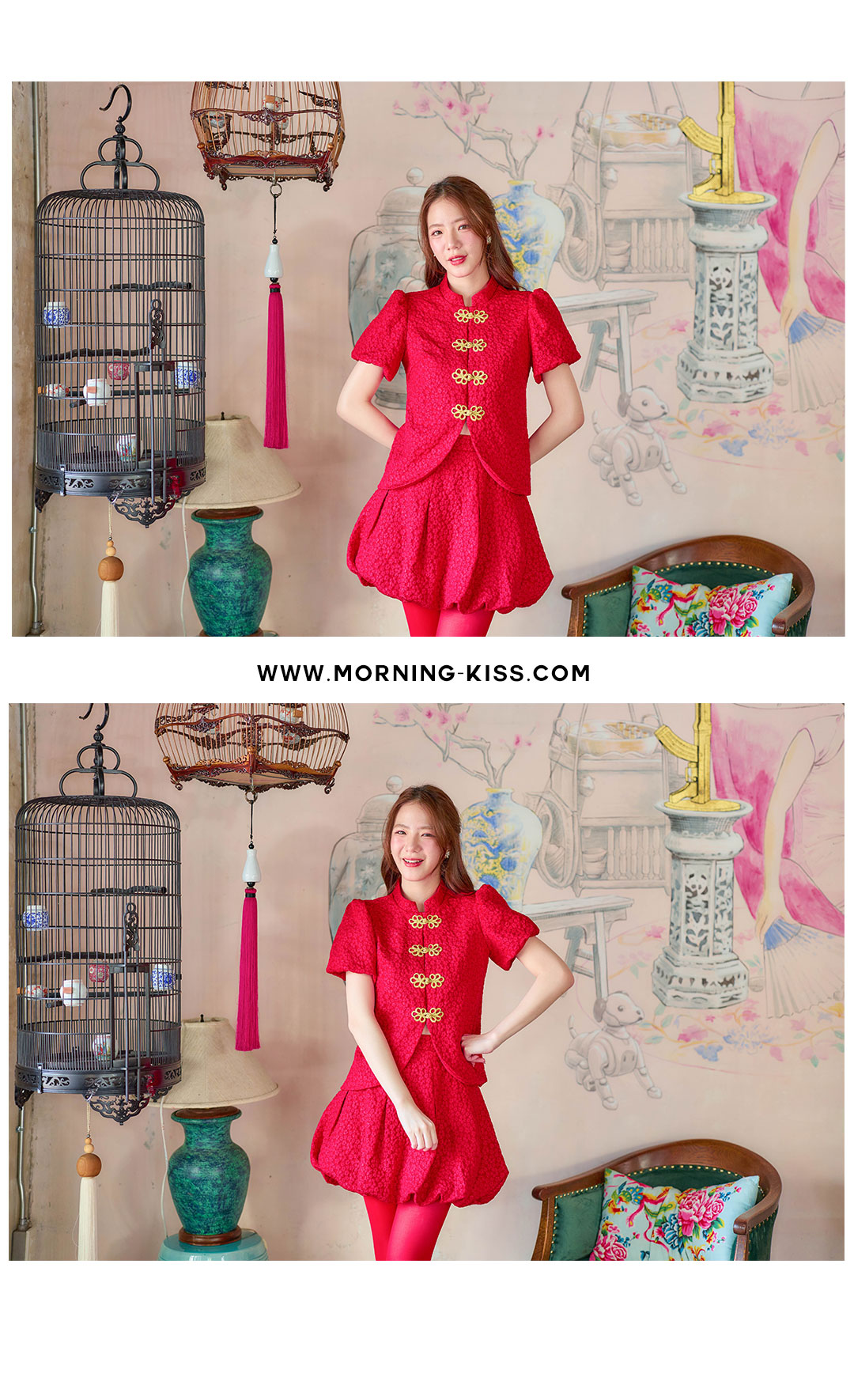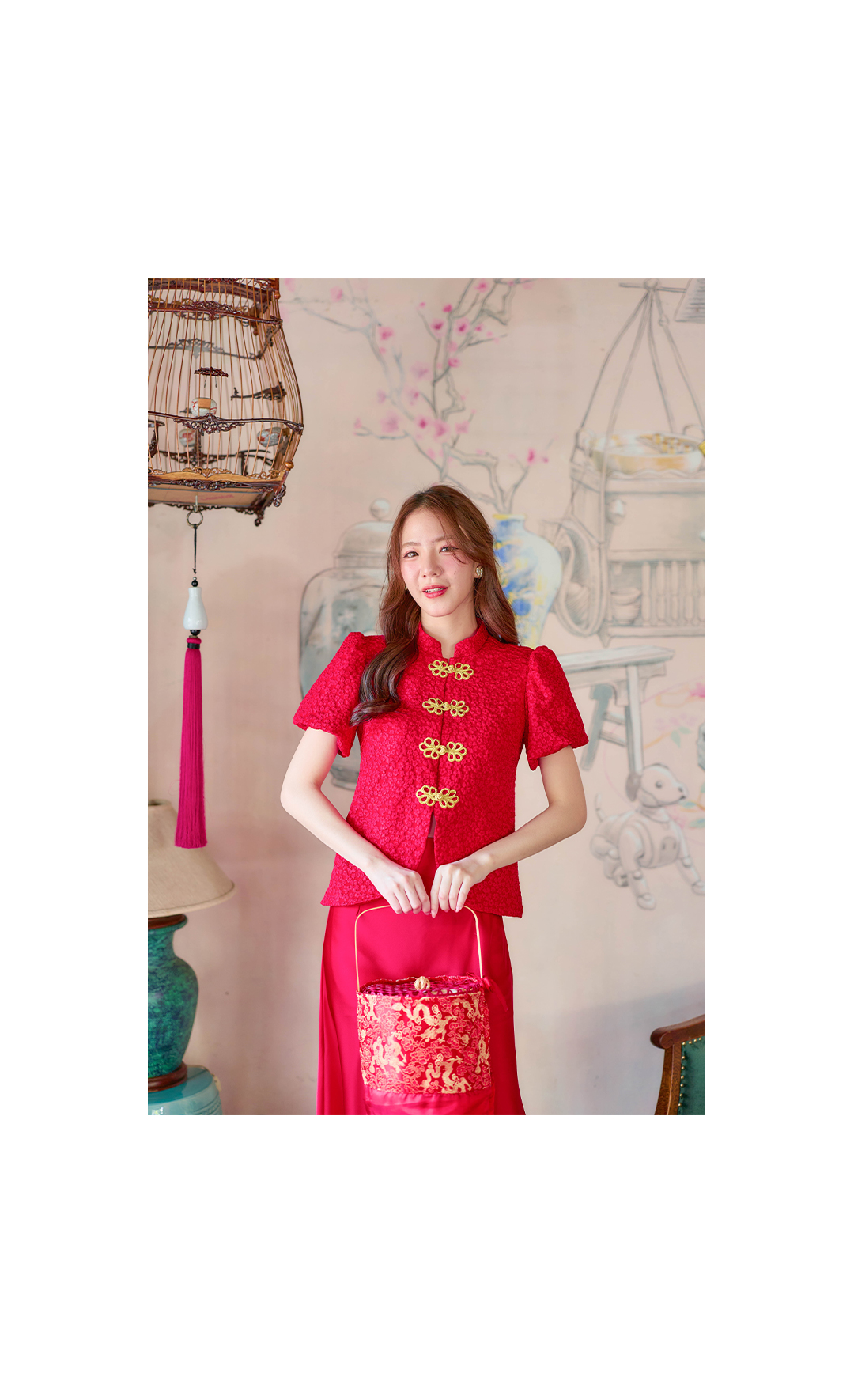 ไอเท็มนี้ตั้งใจออกแบบมาในสไตส์ล้ำสมัย ดูโมเดิร์น สีแดงสวยแจ่มว้าวเด่นมาก งานผ้าทอลายลายดอกไม้หวานมากๆ ใส่แดงรับทรัพย์กันไปเลย เสื้อคอจีน ทรงแขนบอลลูน โดดเต่นด้วยการใช้กระดุมจีนสีทองเรียงหน้าชายเสื้อด้านหน้าโค้ง ทรงใส่ง่ายแมทกับกางเกงแดงหรือกางเกงขาวก็น่ารัก งานตัดพรีเมียมขั้นสุด ซับในทั้งตัว จัดไปไม่ผิดหวังแน่นอนคะ การันตีงานสวยพรีเมียมมาก คุณภาพนี้ที่อื่นขายหลักพันอัพแน่นอน
