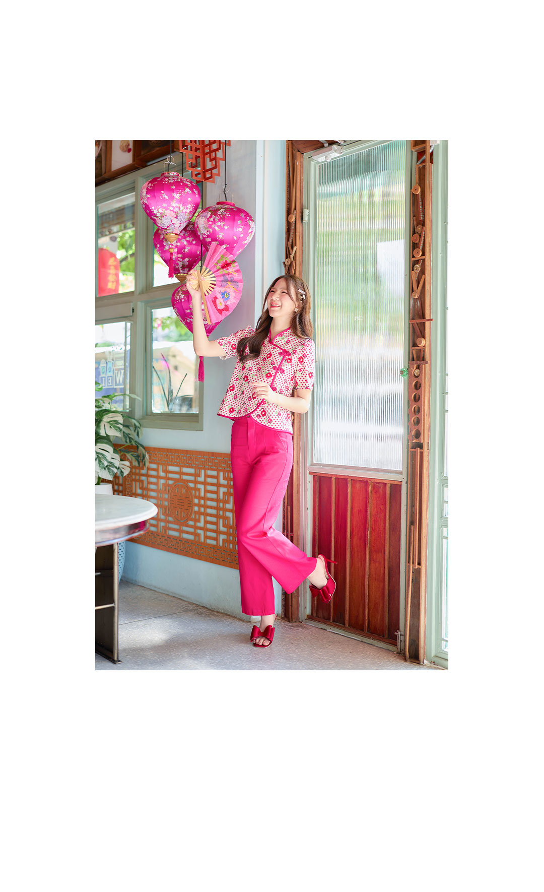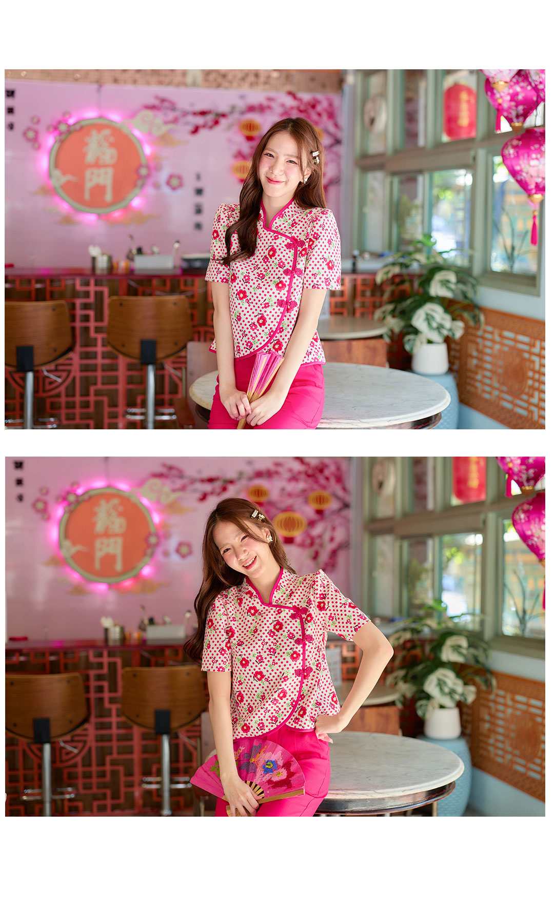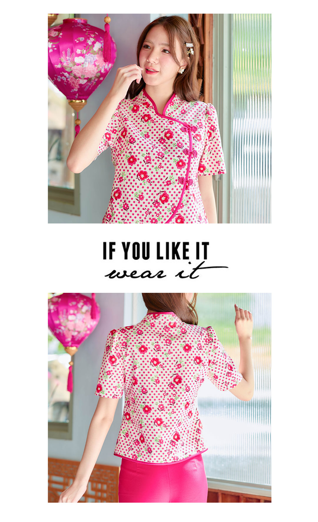 ไอเท็มแนะนำเลย เสื้อตรุษจีนโทนสีครีมลายจุด + ลายดอกไม้สีชมพู ใครไม่อยากใส่แดงจัดรุ่นนี้เลยค่ะ กุ๊นขอบชมพูเข้มสวยโดดเด่น ตัดเย็บแบบป้าย กระดุมจีนเรียงหน้า ดีไซน์ชายโค้งๆ เนื้อผ้าอัดกาวอย่างดีใส่สบายไม่ระคายผิว งานดีเว่อร์วังมาก สวยปังรับทรัพย์แน่นอน รับรองจัดไปไม่ผิดหวัง