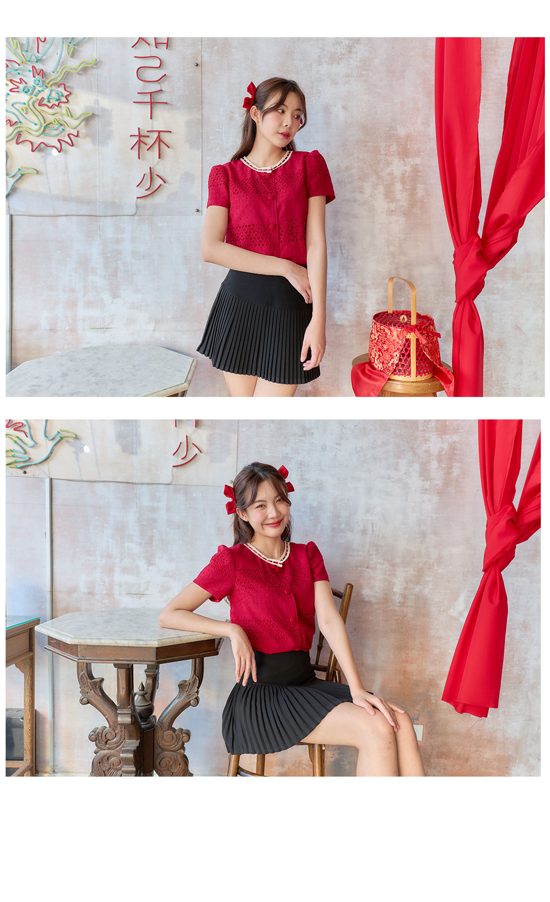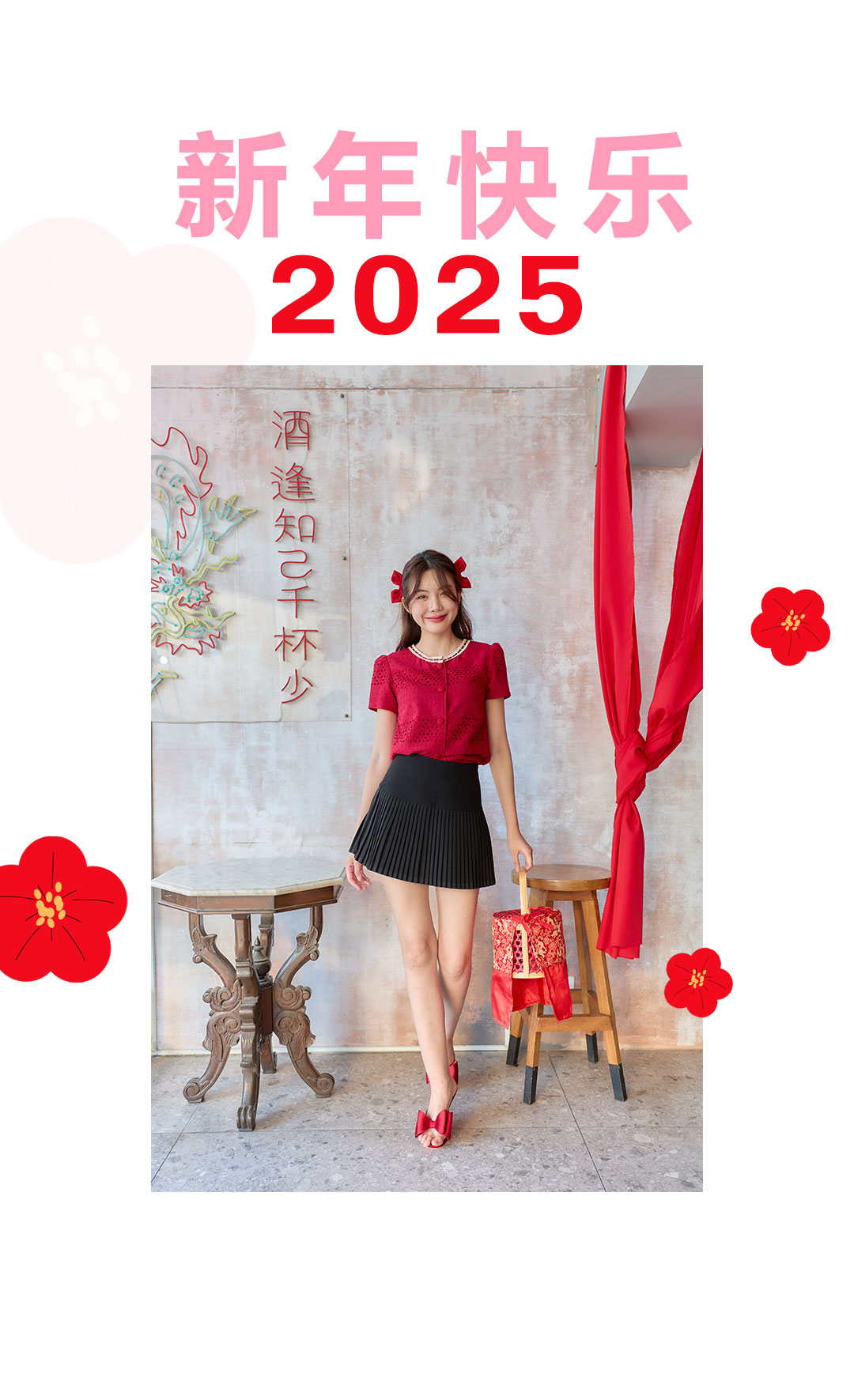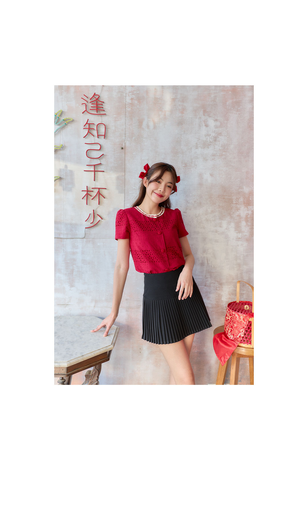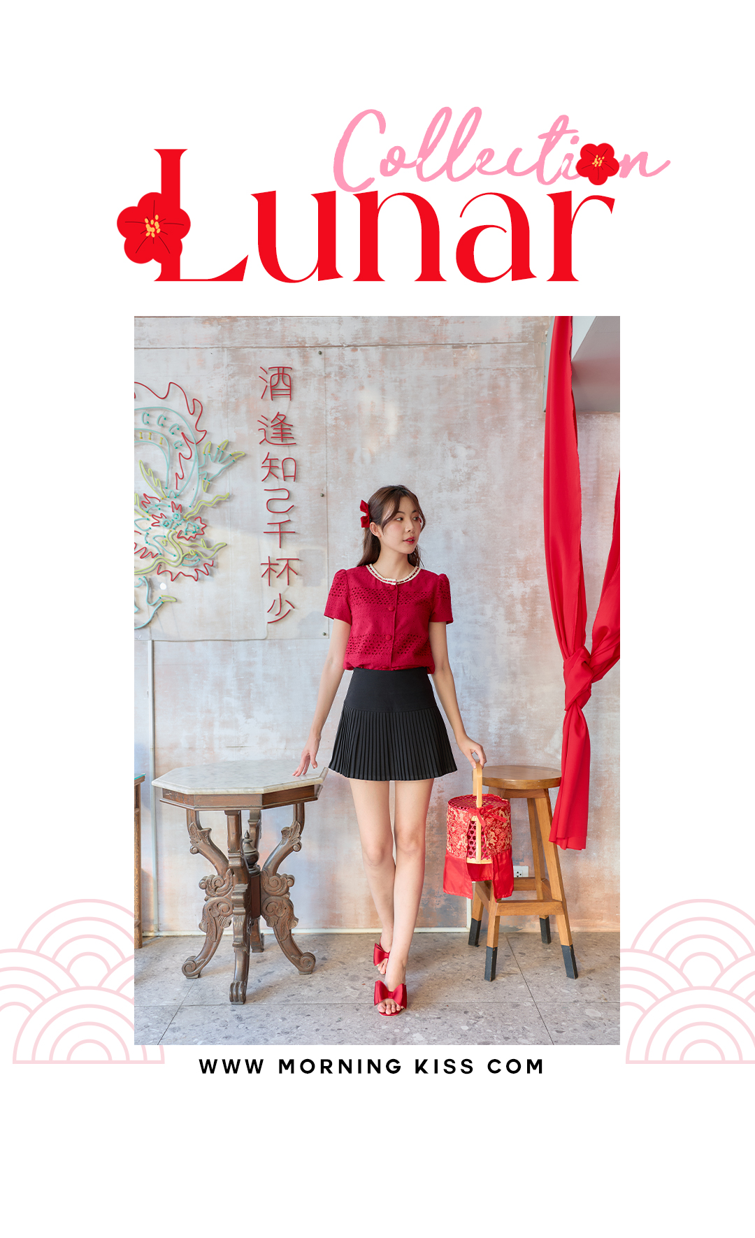 สาวหวานต้องไม่พลาดกับเสื้อผ้า Cotton ฉลุลายลูกไม้แดง ช่วงคอดีไซน์แต่งลูกไม้สลับไปมาสวยเก๋ เนื้อผ้าแบบมี texture ในตัว ซับในทั้งตัว แต่งกระดุมเรียงหน้า ลุคคุณหนูหวานๆ แมทกับขาสั้นหรือขายาว เป็นโทนใส่ง่ายๆใส่เที่ยวใส่ตรุษจีนนี้หรือเก็บไว้ใส่ทำงานก็ได้ มีติดตู้ไว้ไม่ผิดหวังแน่นอน