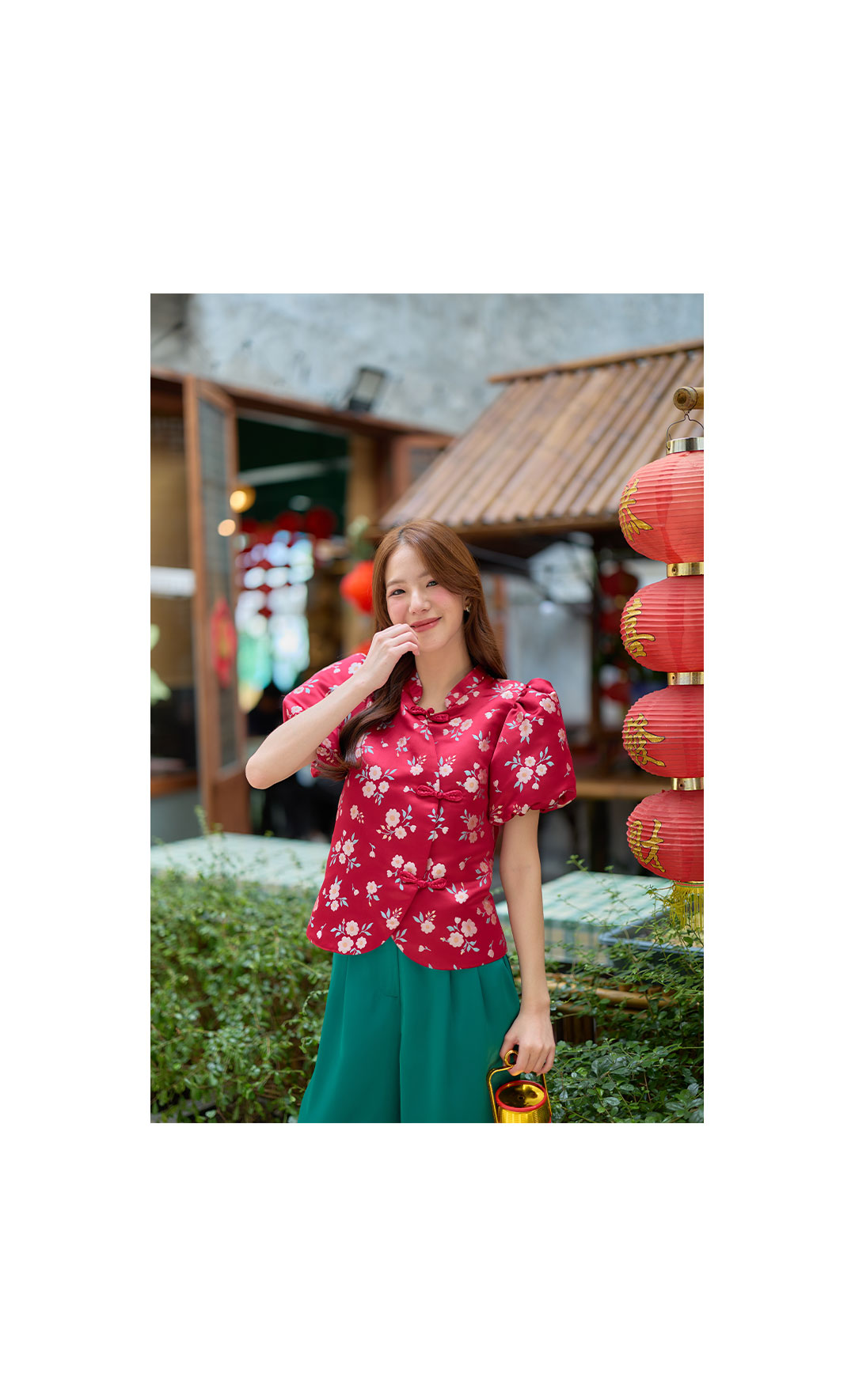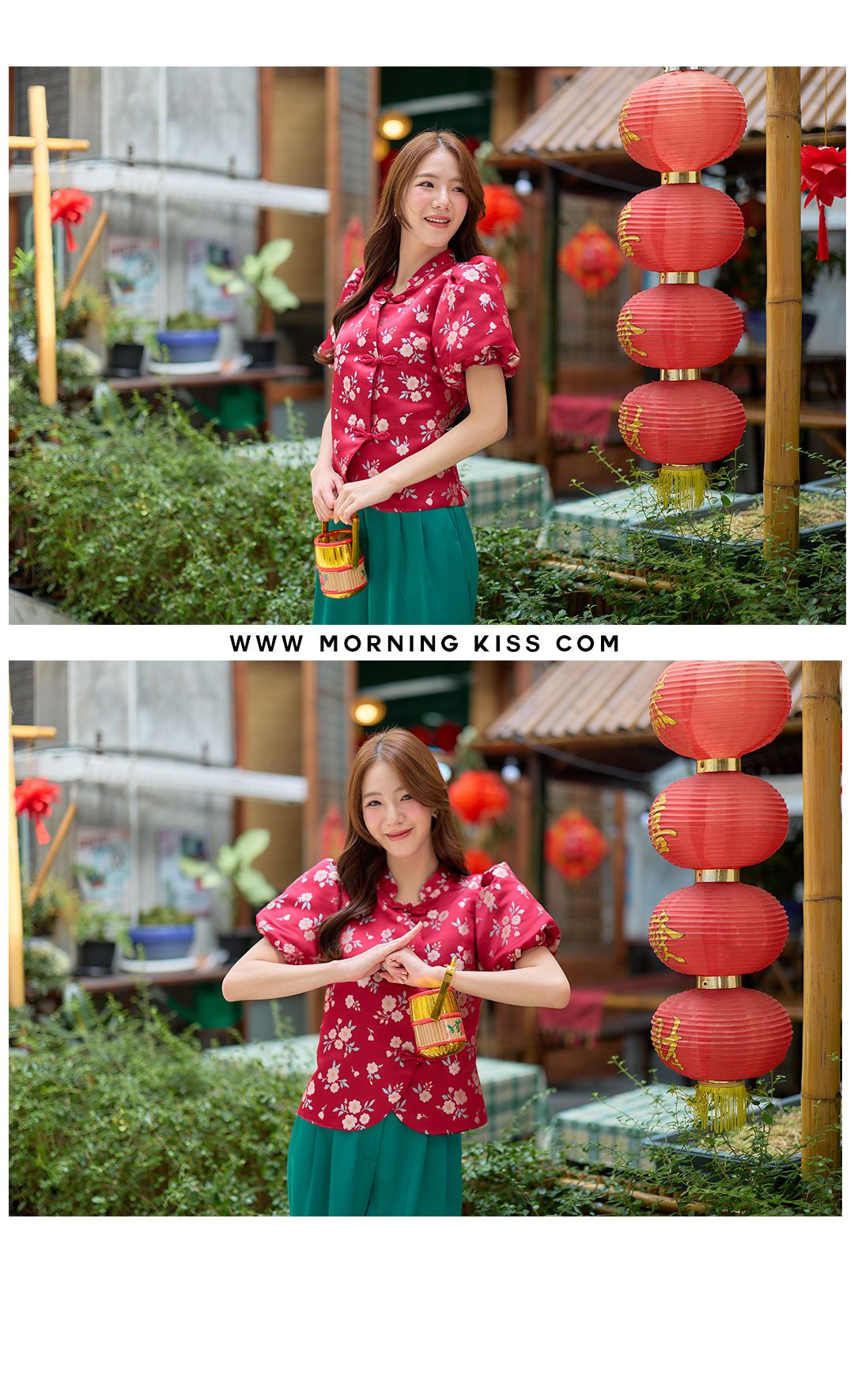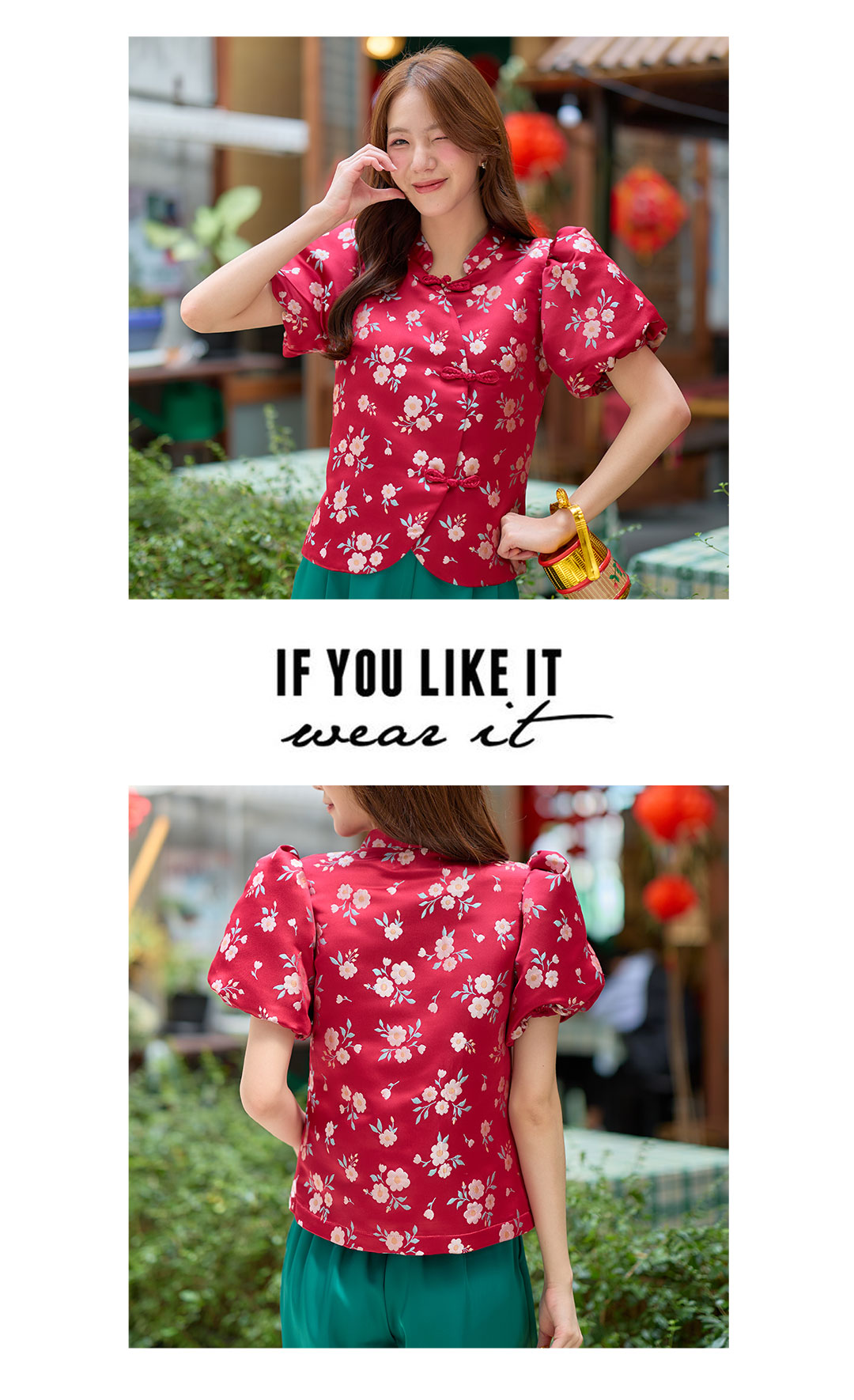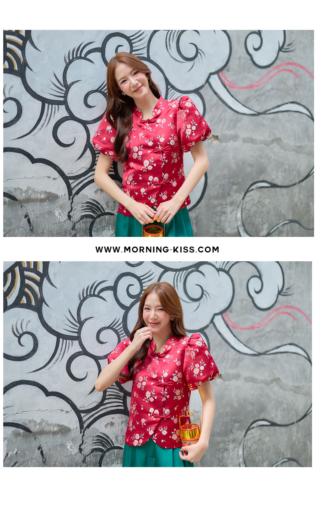 ไอเท็มแนะนำเลย รุ่นนี้น่ารักมาก Premium Quality กับเสื้อคอจีนโทนสีแดงผ้าทอลายดอกไม้รอบตัวหวานๆ ด้านหน้าดีไซน์แบบโค้งๆติดกระดุมจีนเรียงด้านหน้า ช่วงแขนเป็นทรงบอลลูน น่ารักมากๆ ทรงใส่ง่าย ชายเสื้อโค้ง ที่สำคัญซับในทั้งตัวคะ งานดีเว่อร์วังมาก ซิปซ่อนหลัง สวยปังรับทรัพย์แน่นอน