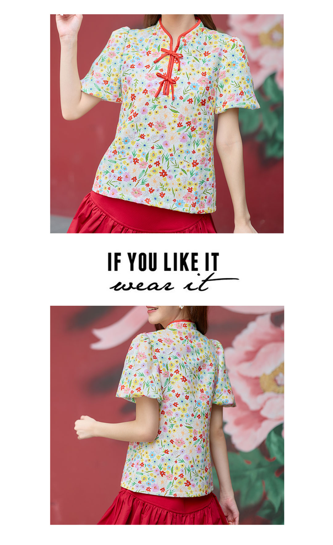 ไอเท็มแนะนำ ลุคน่ารักสดใสกับเสื้อคอจีนโทนสีเหลืองงานทอลายดอกไม้สีสันสดใสรอบตัว กุ๊นขอบคอด้วยสีส้ม แต่งโบว์หลอกคู่น่ารักๆ ทรงแขนบอลลูน งานพตัดพรีเมียม ซับในทั้งตัว จัดไปไม่ผิดหวังแน่นอนคะ การันตีเลย