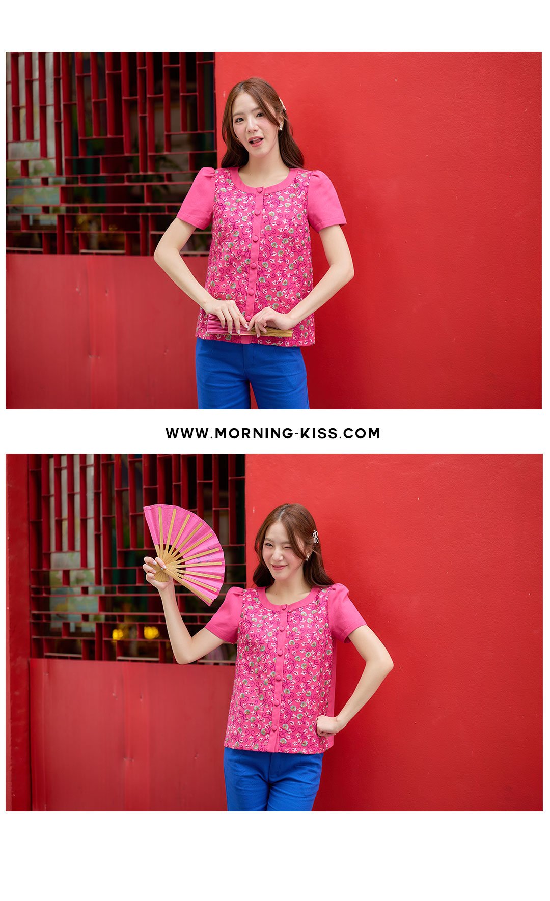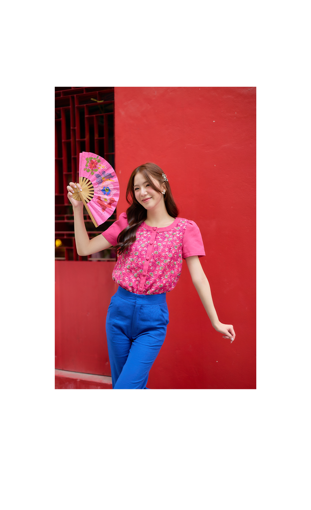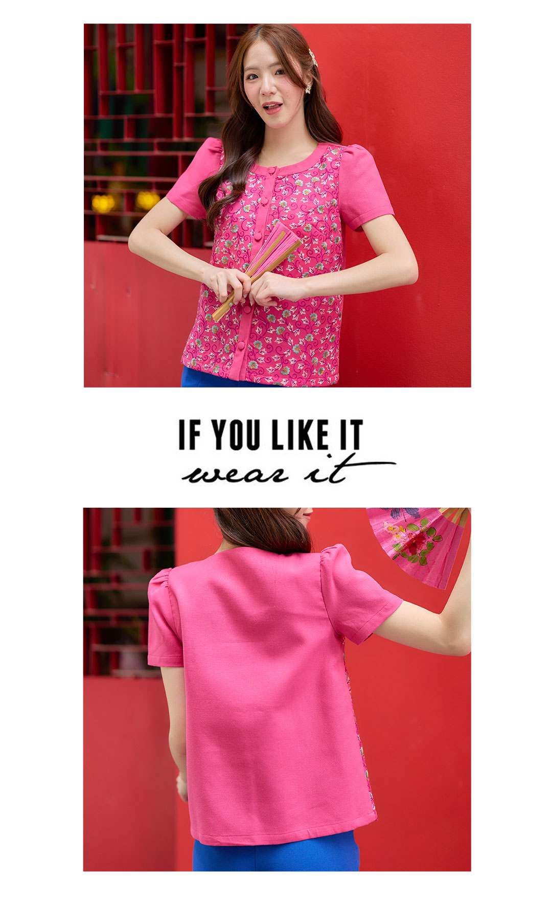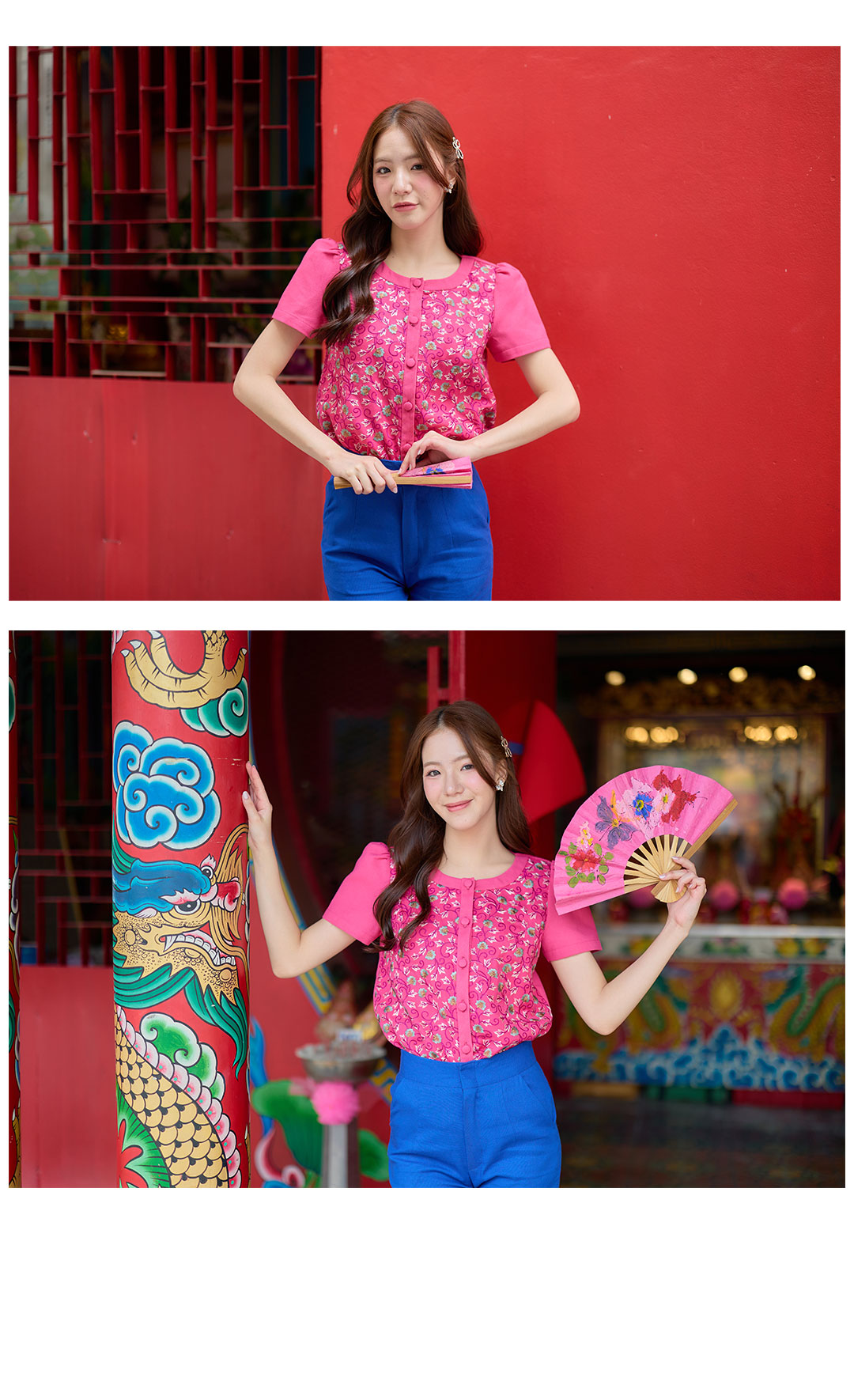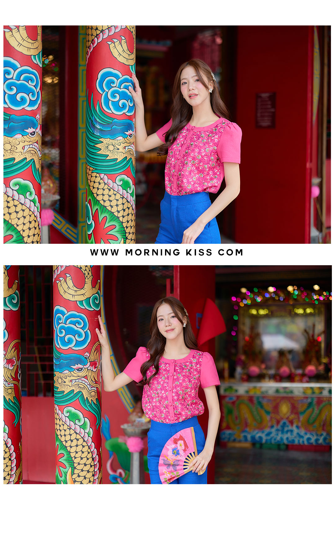 Premium Quality อีก 1 ไอเท็มแนะนำของคอลเลคชั่นตรุษจีนเลย โทนสีชมพู รุ่นนี้ดีไซน์ให้อารมณ์หวานๆ ตัดต่อผ้า 2 ชนิด ตัวเสื้อด้านหน้าเป็นผ้างานปักดอกไม้หวานต่อด้วยผ้าสีพื้น เนื้อผ้าอัดกาวทั้งตัว ทรงใส่ง่ายแมทกับกระโปรงกางเกงได้หมด งานตัดเย็บปราณีต จัดไปไม่ผิดหวังแน่นอนคะ