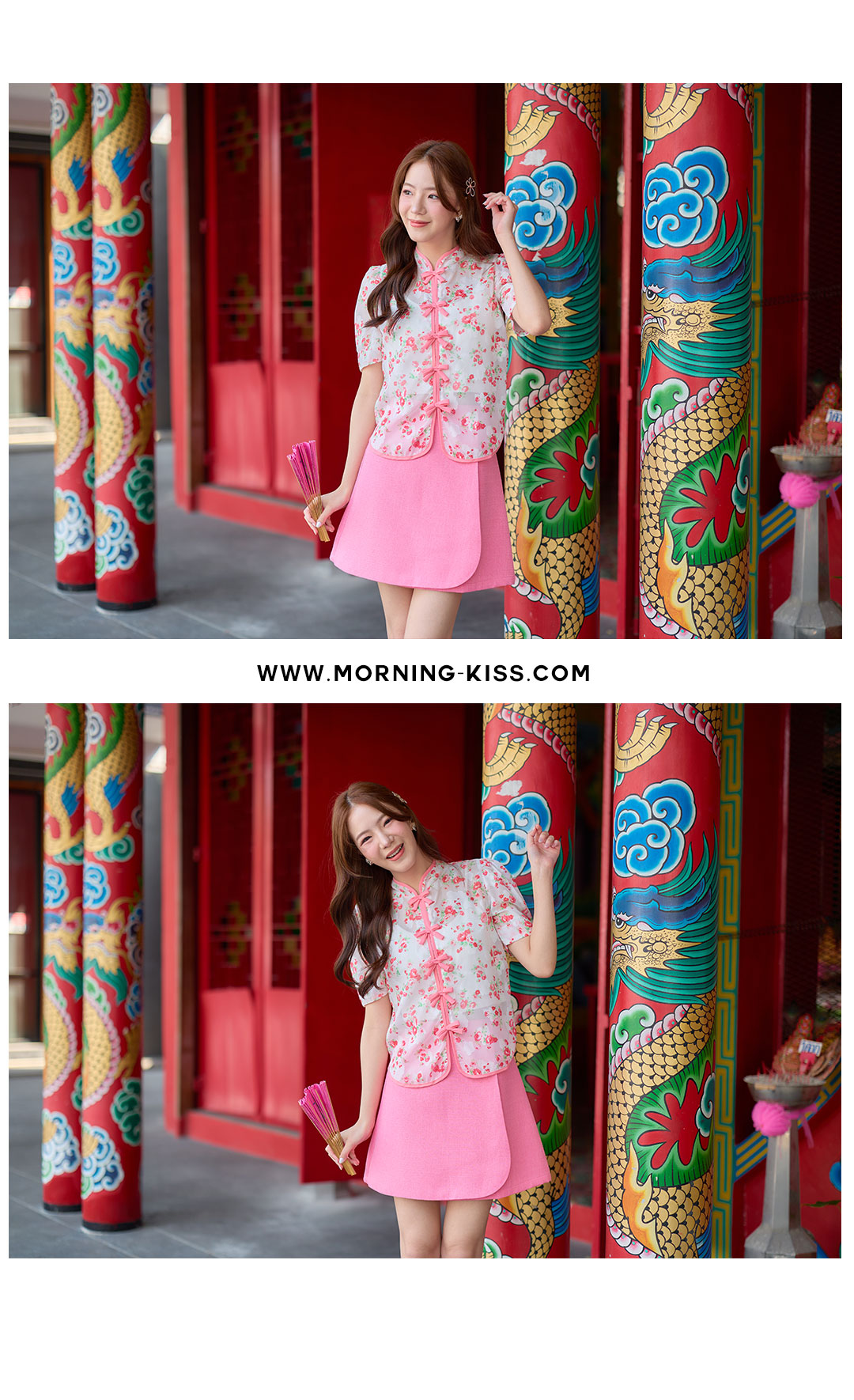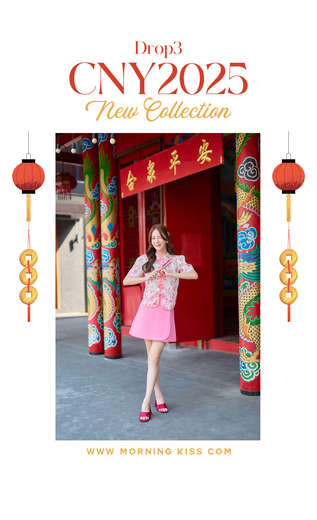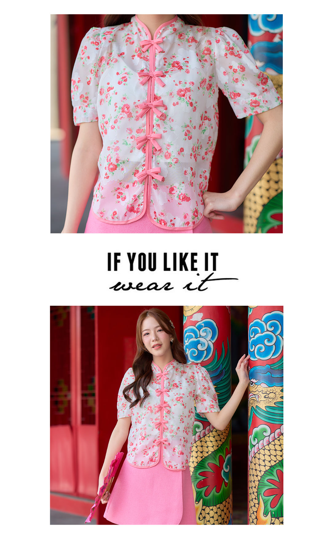 จัดให้อีก 1 แบบน่ารักๆ กับเสื้อคอจีนใส่รับอั่งเปาปีนี้ โทนสีขาวงานปริ้นลายดอกสวยหวานน่ารักๆรอบคัว กุ๊นตัวเสื้อด้วยสีชมพู แต่งโบว์หลอกเรียงด้านหน้า ซิปซ่อนด้านหลัง มีซับในสายเดี่ยวให้ด้วยนะคะ จัดไปใส่ตรุษจีนนี้รับทรัพย์ เฮงๆ กันได้เลย