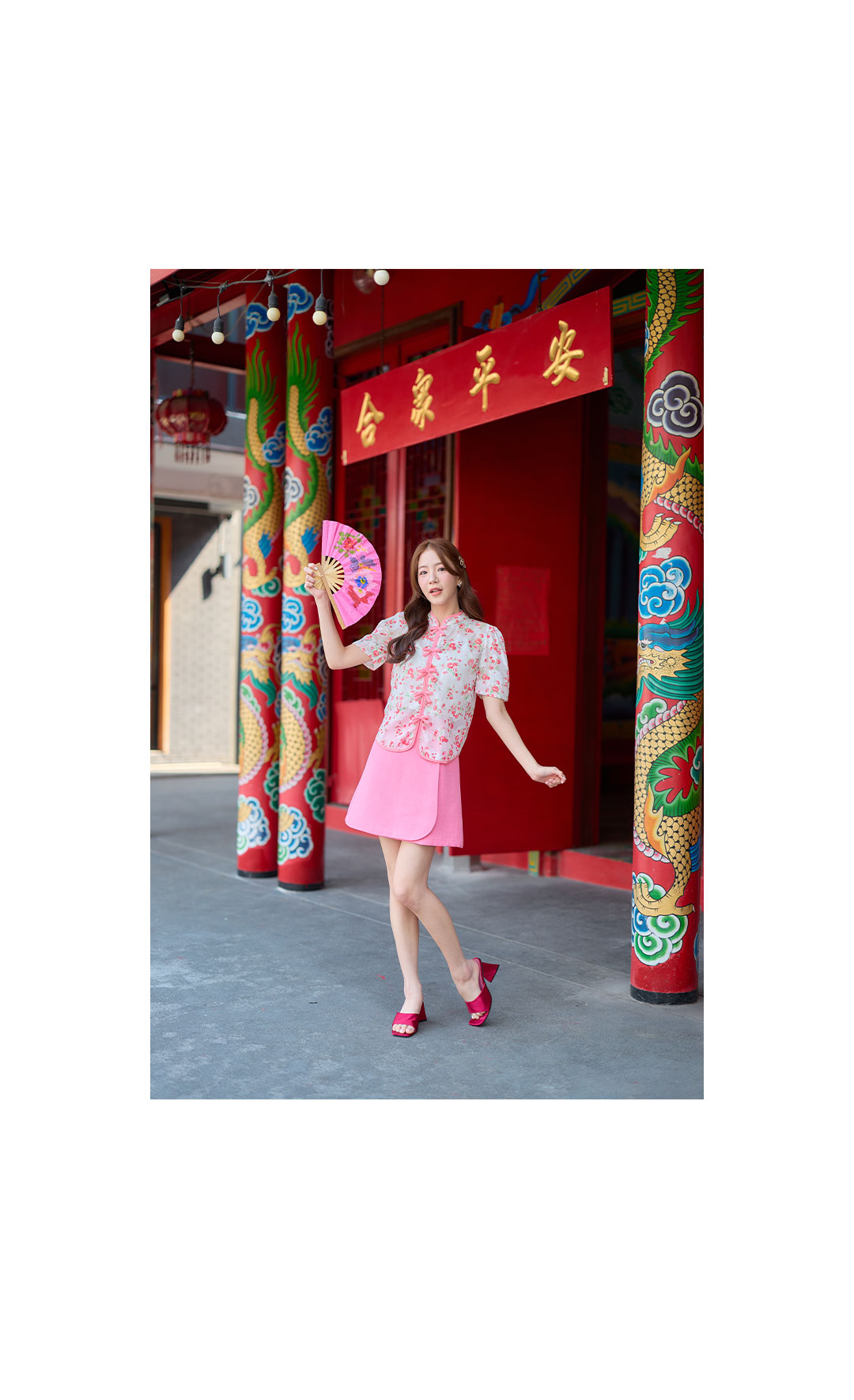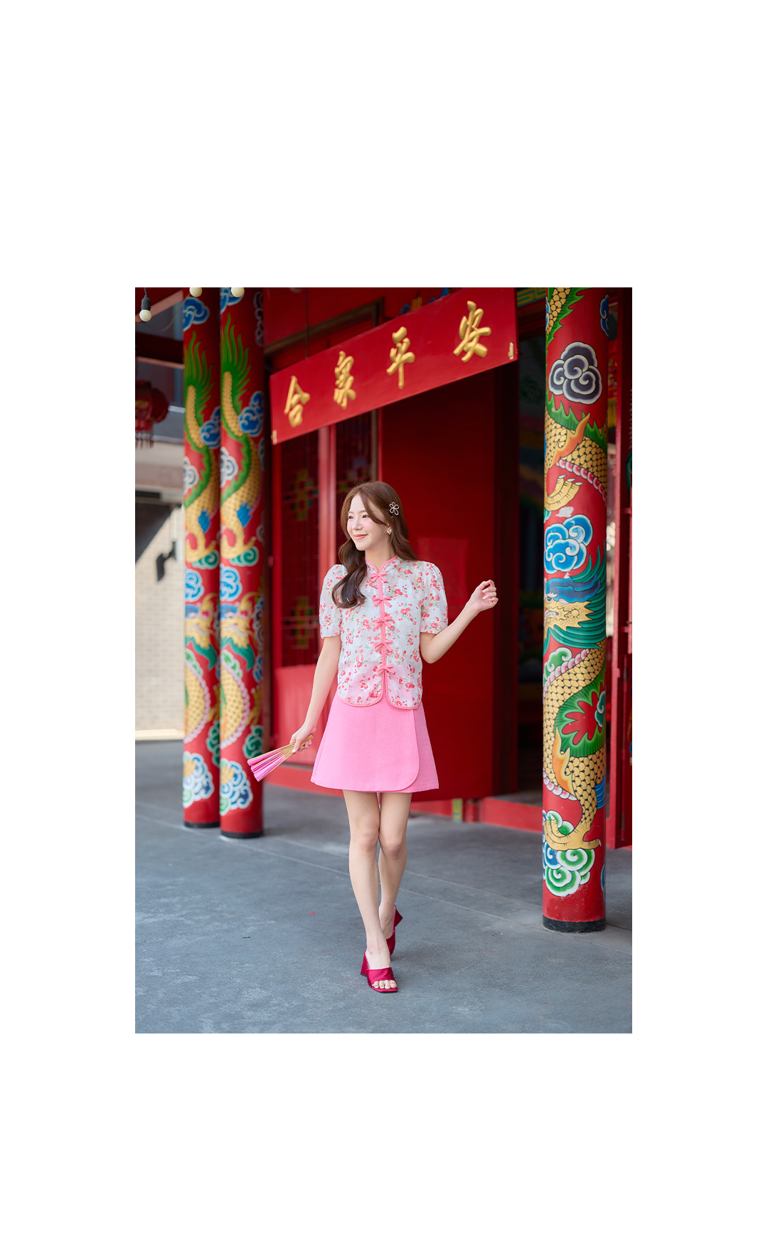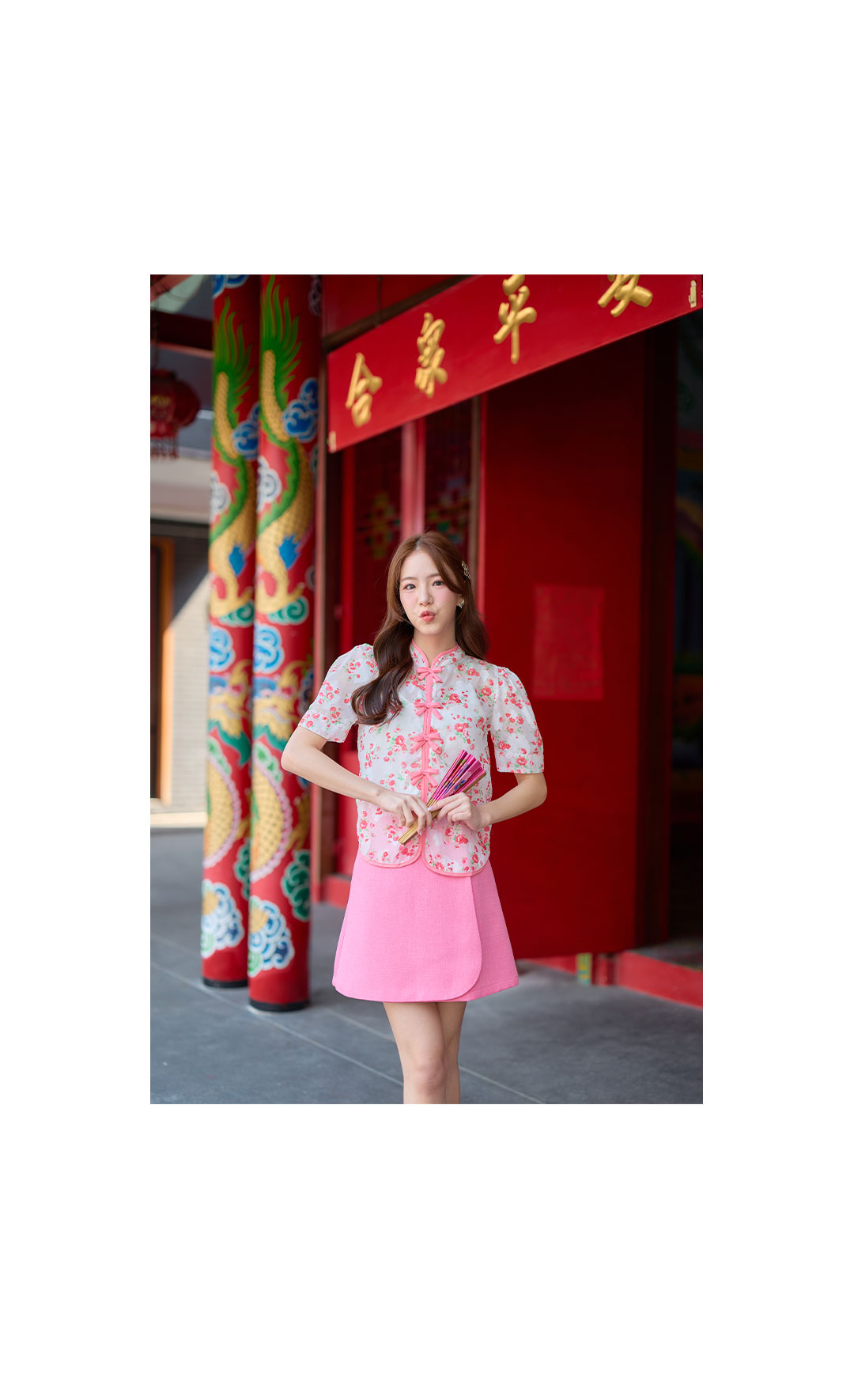 จัดให้อีก 1 แบบน่ารักๆ กับเสื้อคอจีนใส่รับอั่งเปาปีนี้ โทนสีขาวงานปริ้นลายดอกสวยหวานน่ารักๆรอบคัว กุ๊นตัวเสื้อด้วยสีชมพู แต่งโบว์หลอกเรียงด้านหน้า ซิปซ่อนด้านหลัง มีซับในสายเดี่ยวให้ด้วยนะคะ จัดไปใส่ตรุษจีนนี้รับทรัพย์ เฮงๆ กันได้เลย