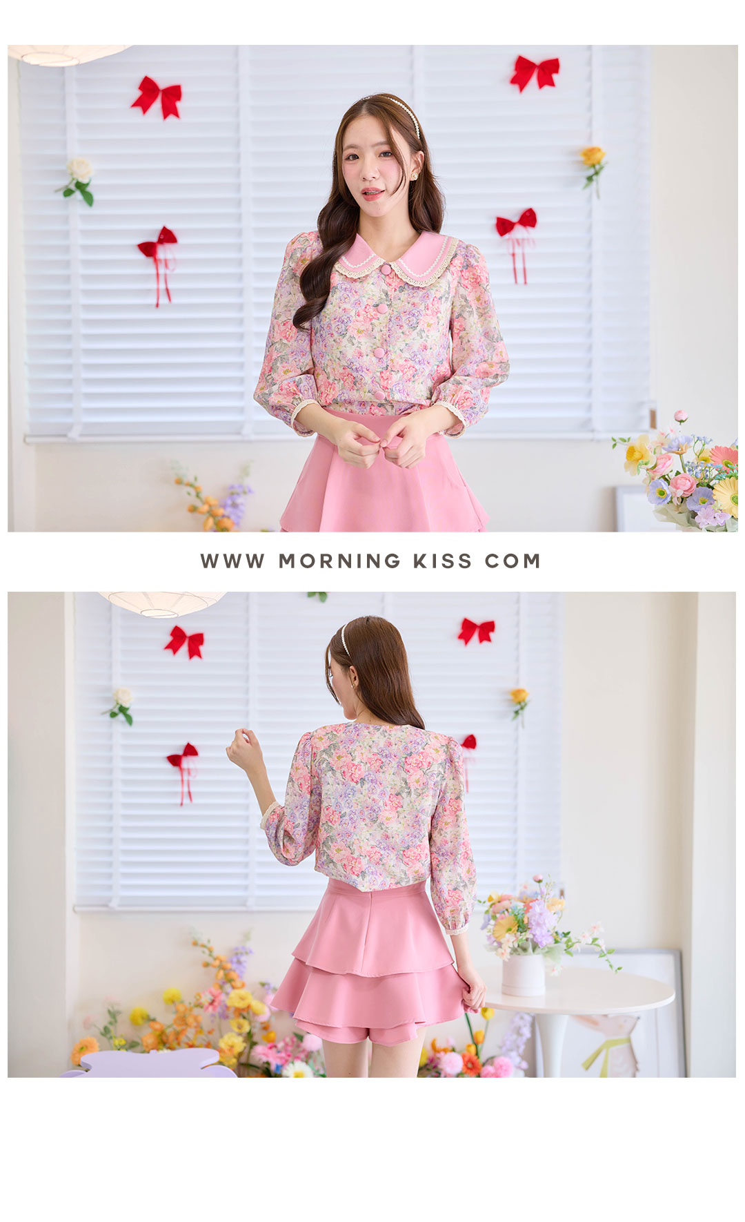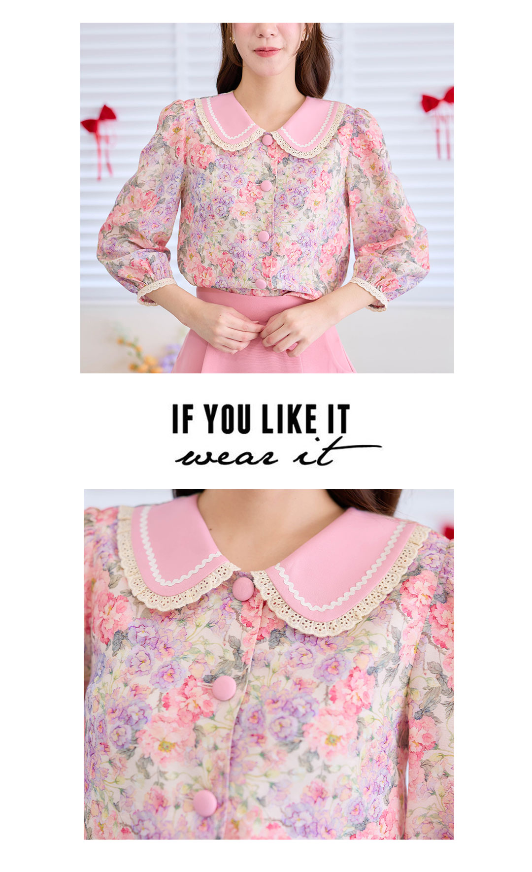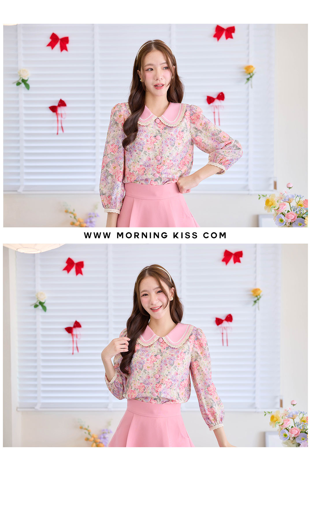 หวานฉ่ำๆกับลุคหวานๆเสื้อแขน 5 ส่วนลายดอก เนื้อผ้า Tencel งานปริ้นลายดอกไม้รอบตัว คอปกชมพูดีไซน์ปักเป้นหยักๆสีขาวกุ๊นระบายด้วยผ้าลูกไม้สีครีม ช่วงแขนทำพองๆนิดๆ ซับในช่วงตัว แมทกับกระโปรงหรือกางเกงก็น่ารัก ไอเท็มนี้แนะนำเลย ลุคคุณหนูหวานๆ ใส่ทำงานก็ได้ใส่เที่ยวก็น่ารัก รุ่นนี้จัดไปไม่ผิดหวังจริงๆ