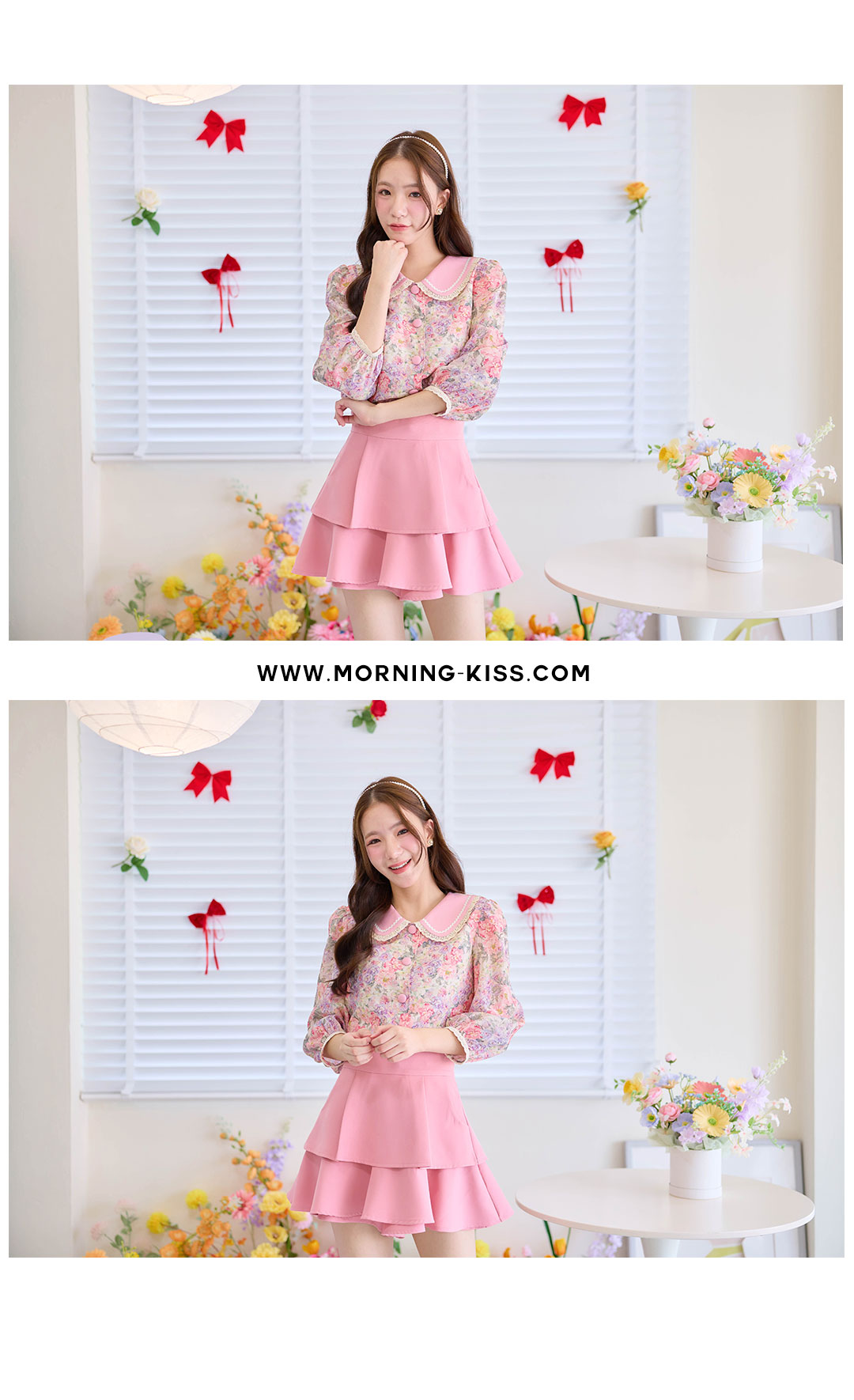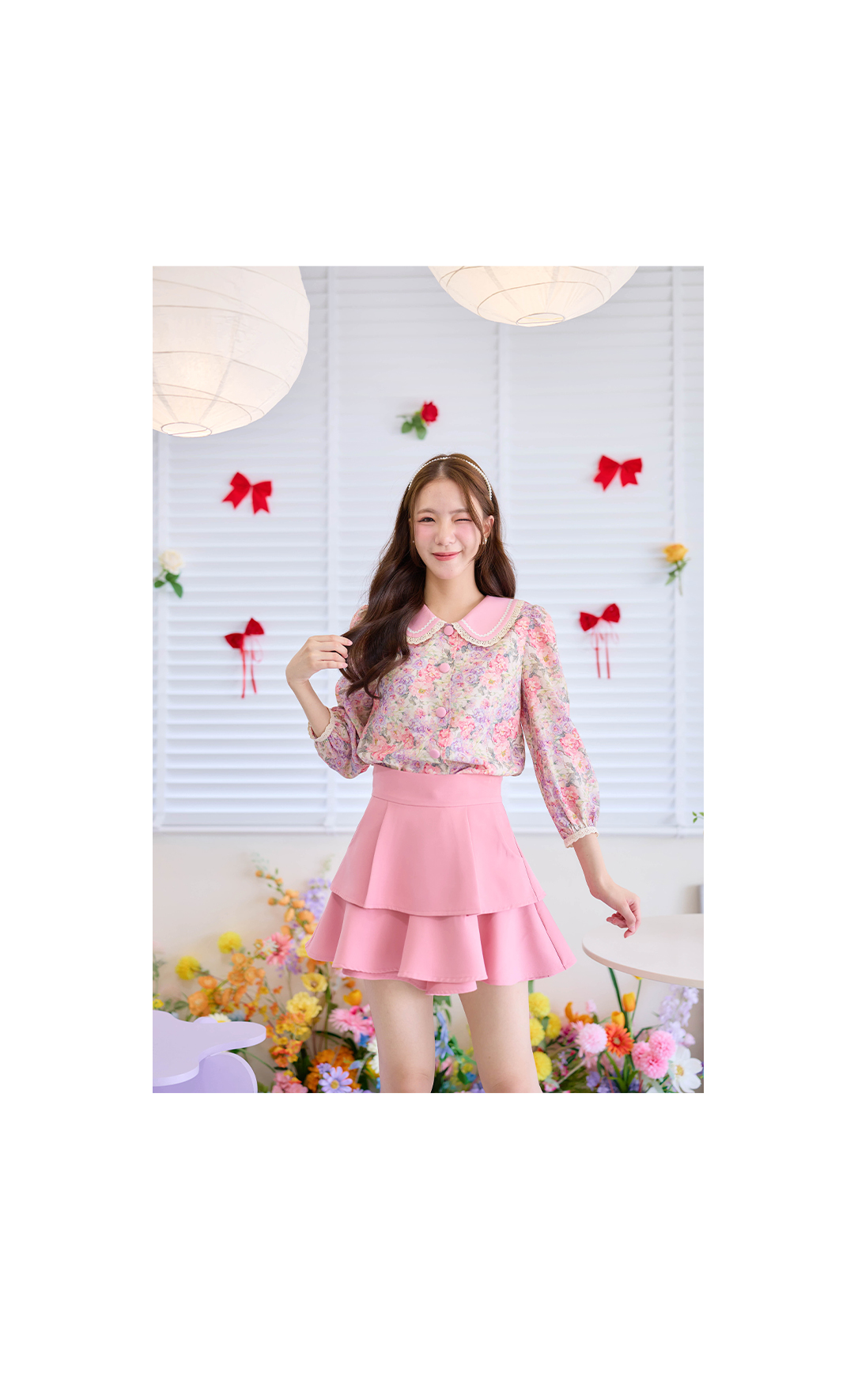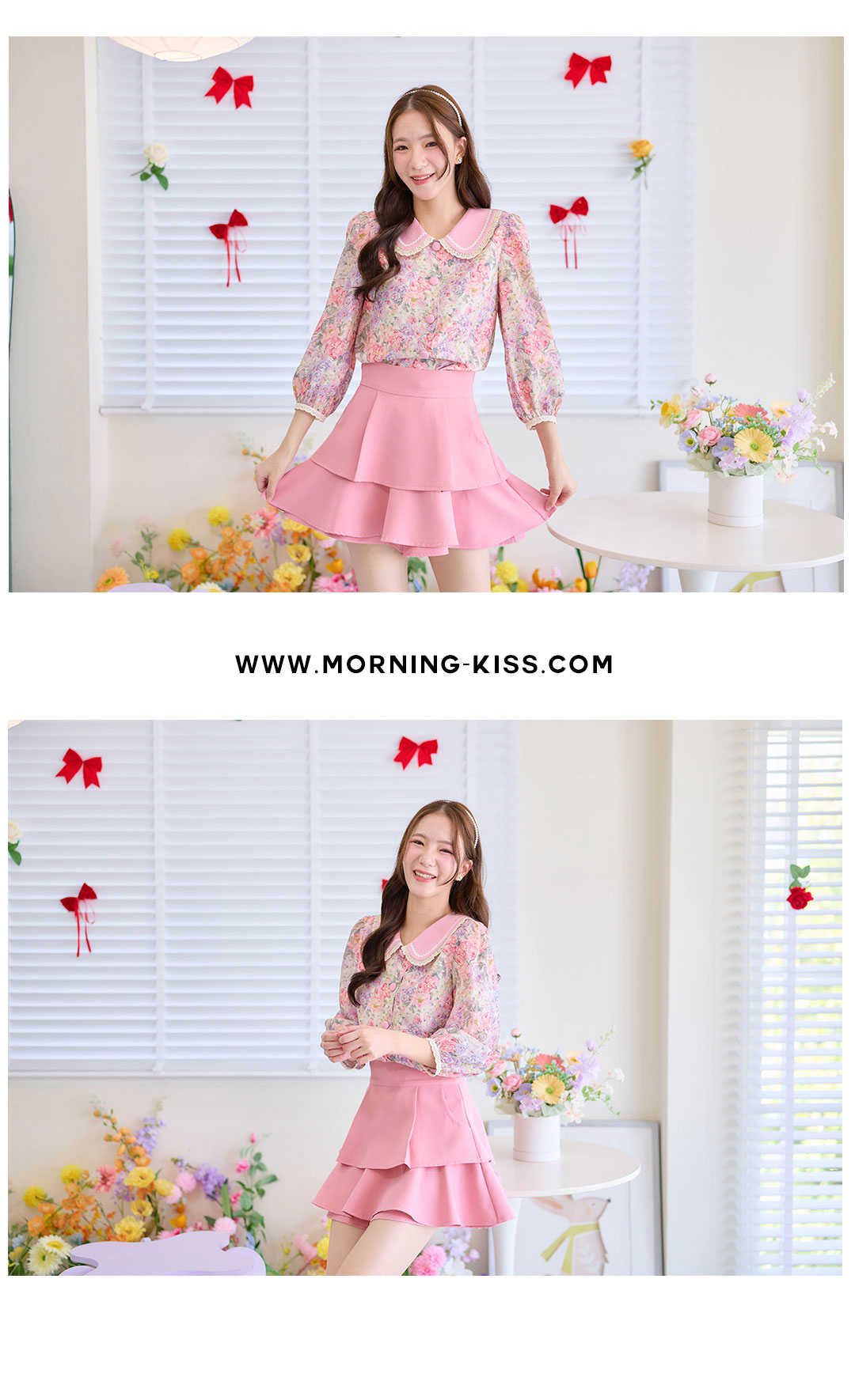 หวานฉ่ำๆกับลุคหวานๆเสื้อแขน 5 ส่วนลายดอก เนื้อผ้า Tencel งานปริ้นลายดอกไม้รอบตัว คอปกชมพูดีไซน์ปักเป้นหยักๆสีขาวกุ๊นระบายด้วยผ้าลูกไม้สีครีม ช่วงแขนทำพองๆนิดๆ ซับในช่วงตัว แมทกับกระโปรงหรือกางเกงก็น่ารัก ไอเท็มนี้แนะนำเลย ลุคคุณหนูหวานๆ ใส่ทำงานก็ได้ใส่เที่ยวก็น่ารัก รุ่นนี้จัดไปไม่ผิดหวังจริงๆ