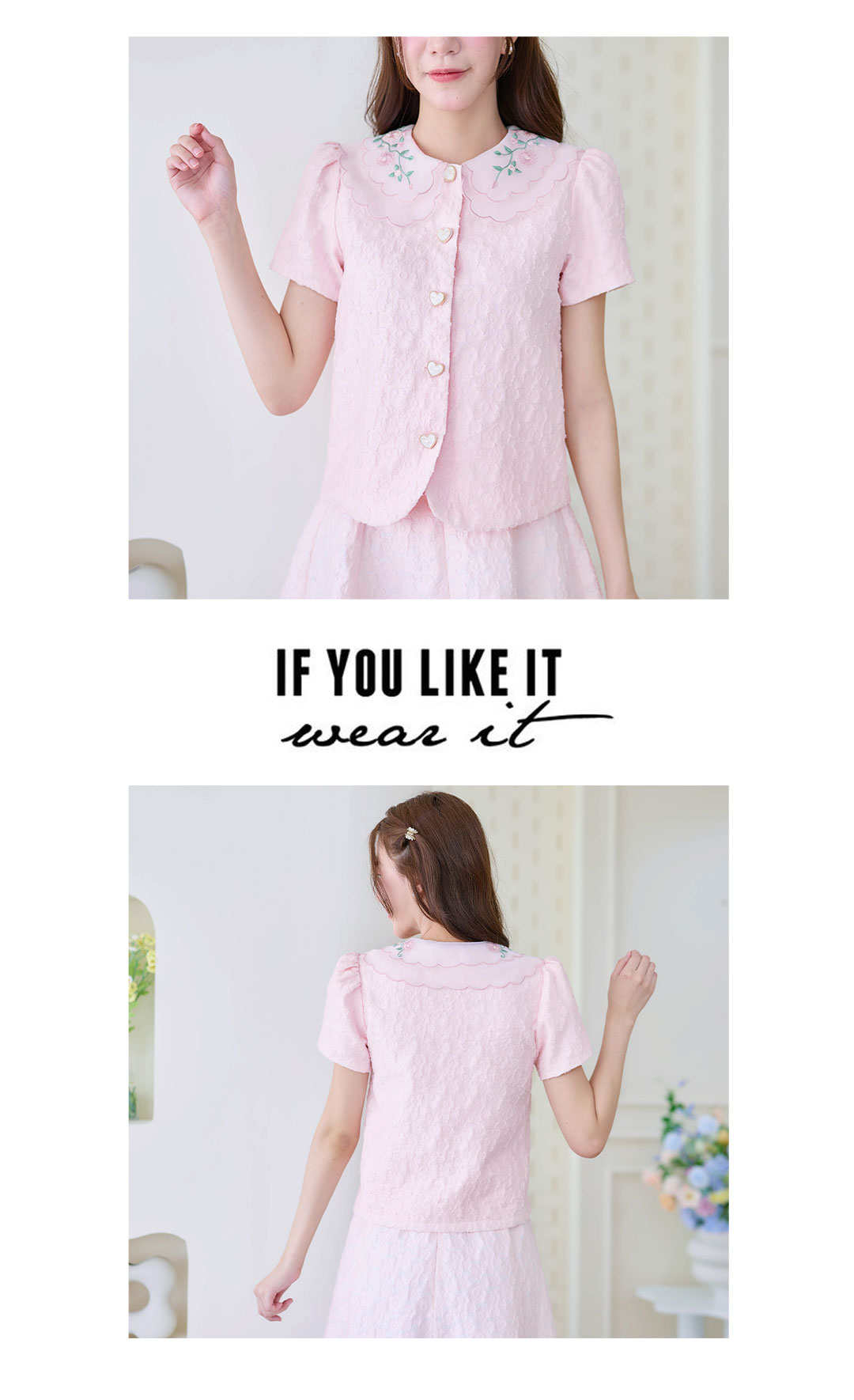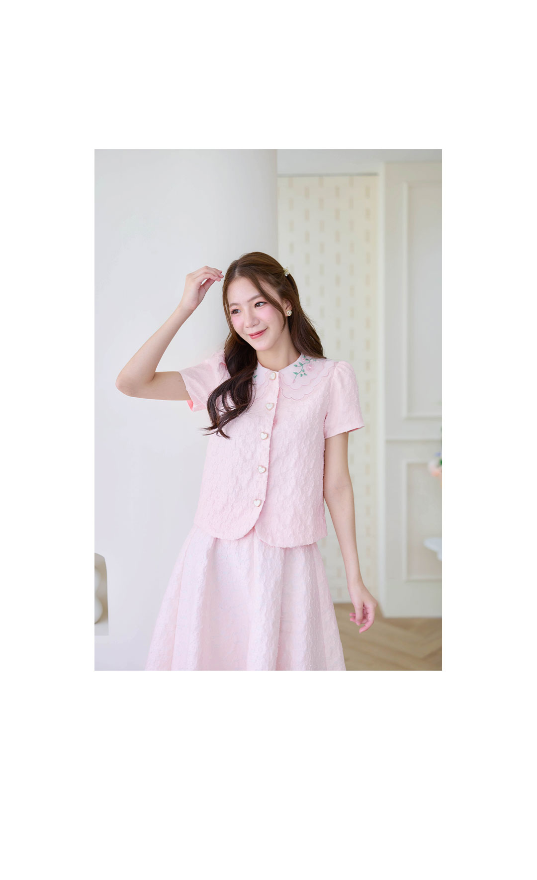 งานพรีเมียม ไอเท็มแนะนำ สวยหวานละมุนมากๆ พลาดไม่ได้เลยกับเสื้อผ้า Cotton ลูกไม้แบบนูนๆเนื้อผ้าแบบมี texture ในตัว ช่วงคอปก 2 ชั้นเป็นผ้าแก้วเนื้อนิ่มทำหยักๆกุ๊นขอบด้วยสีชมพู + แต่งงานปักดอกไม้ ดีไซน์ชายโค้งๆ แต่งกระดุมหัวใจเรียงหน้า ซับในทั้งตัว ลุคสวยหรู ไม่แน่นดีเทลเยอะ เป็นโทนใส่ง่ายๆใส่เที่ยวใส่ทำงานก็สวยเริ่ด มีติดตู้ไว้ไม่ผิดหวังแน่นอน