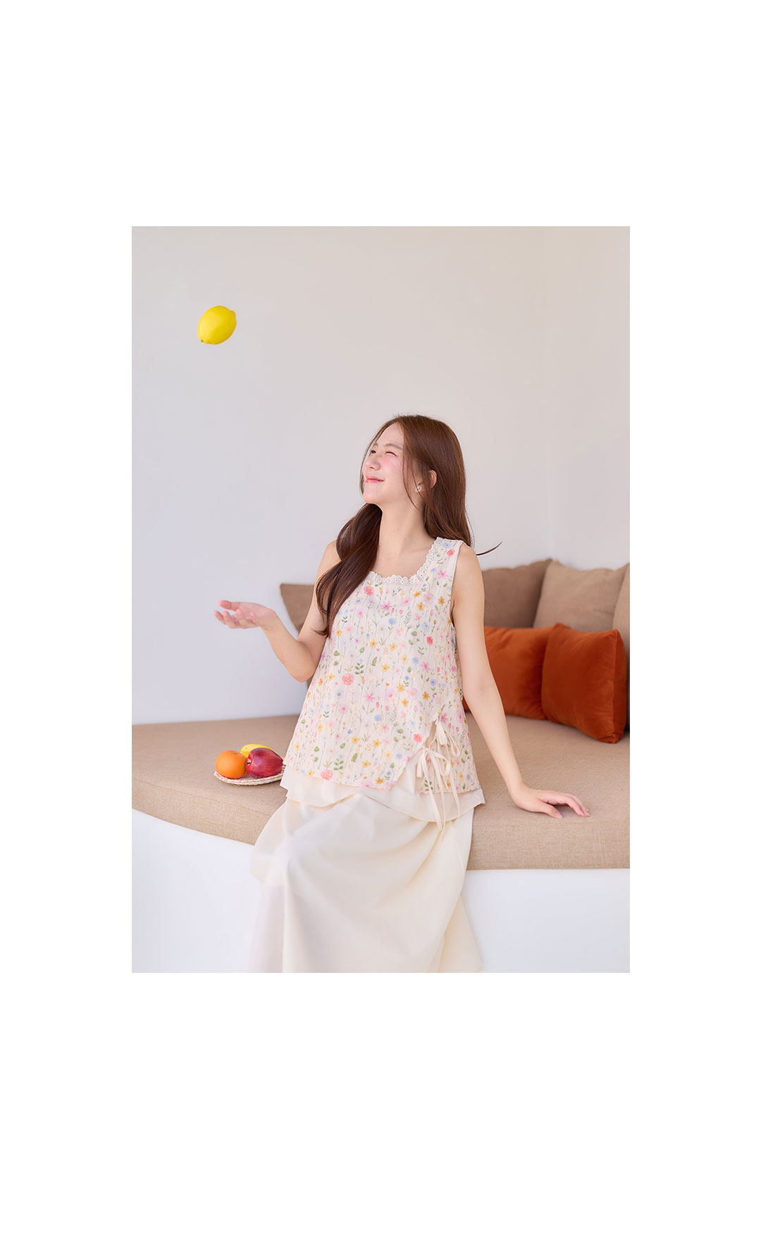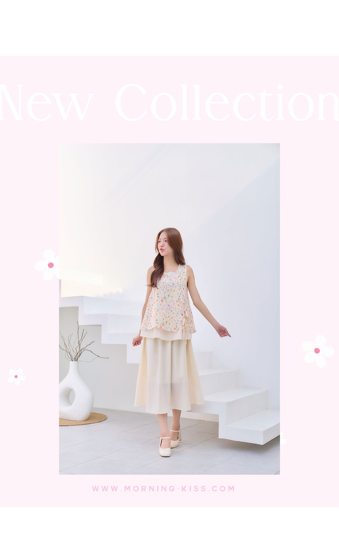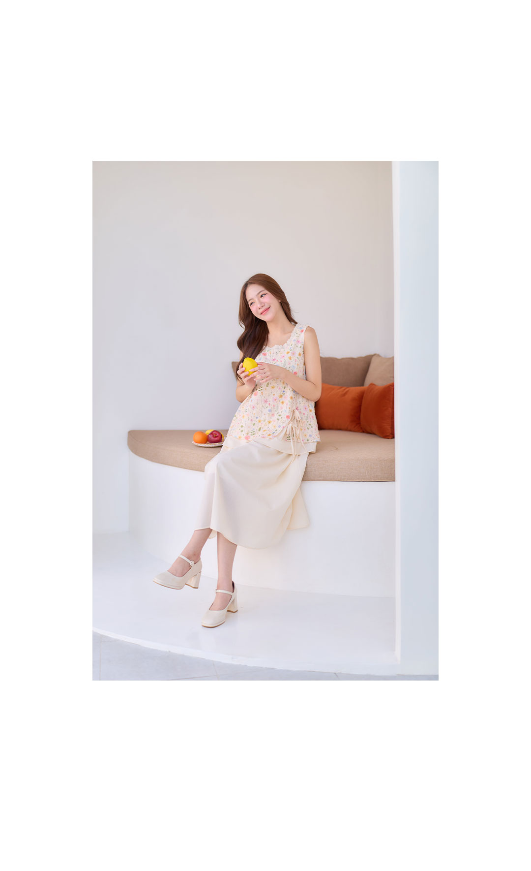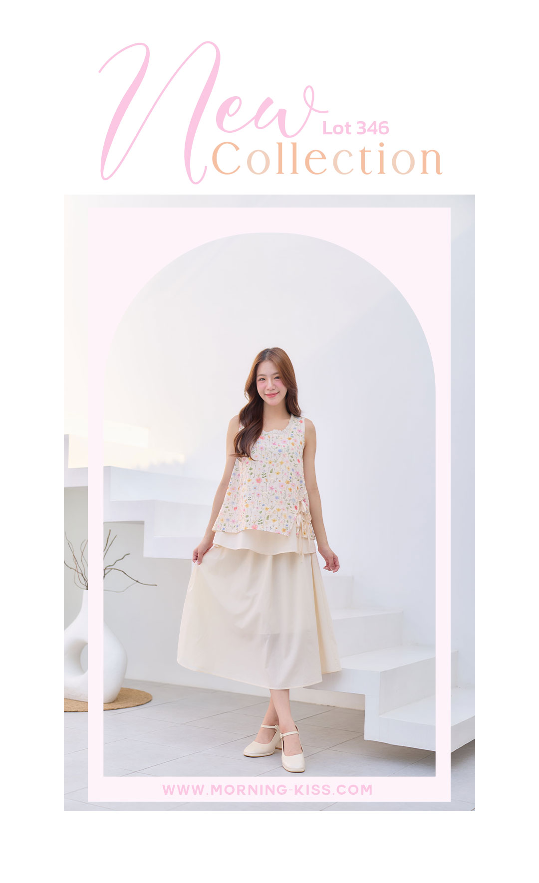 มาเพิ่มวันสดใสกับลุคหวานๆน่ารักๆ มาแพ็คคู่ เสื้อ+กระโปรง ใส่เข้าเซ็ทกันน่ารักมาก เสื้อแขนกุดสีครีมผ้า Cotton ฉลุลายลูกไม้งานพิมพ์ลายดอกไม้สีหวานๆ กุ๊นขอบคอด้วยผ้าฉลุลายลูกไม้เล็กๆ ชายเสื้อผ้าชขึ้นเล็กน้อยมีสายคู่ผูกเป็นโบว์น่ารักๆ ซับในทั้งตัว ตัวกระโปรงยาวสีครีมช่วงเอวเป็นยางยืด มีซับใน ใส่แยกชุดหรือใส่คู่เป้นเซ็ทก้น่ารัก งานดี ราคาคุ้มสุดๆ