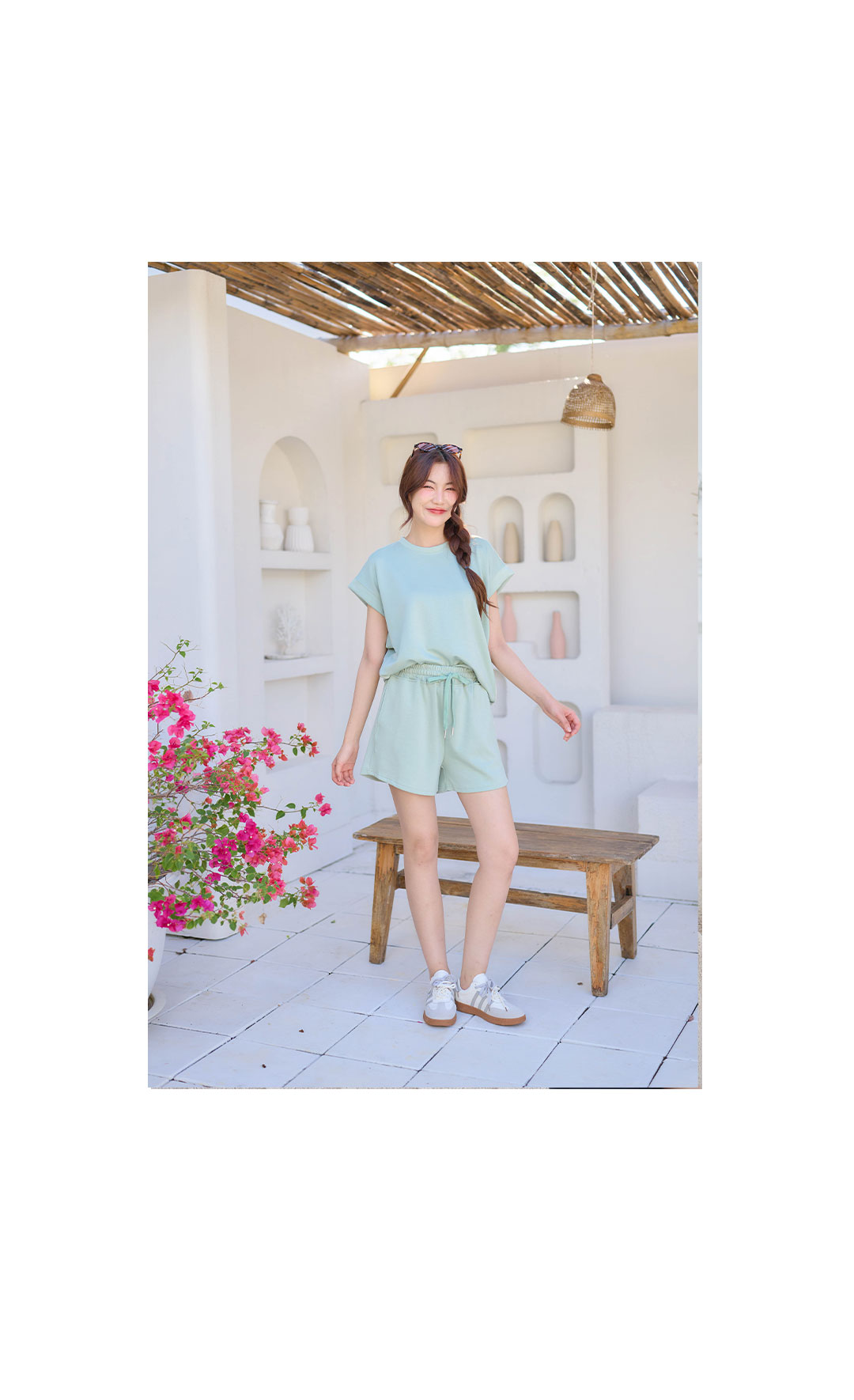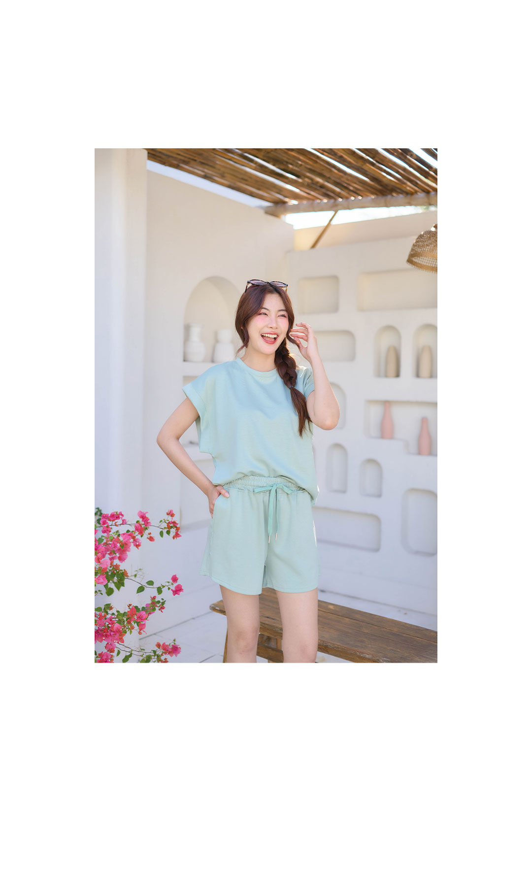 Recommend มาในแบบแพ็คคู่ เสื้อ+กางเกง เสื้อเป็นทรงแขนเต่อเนื้อผ้านุ่มนิ่มใส่สบายสุดๆ แมทกับกางเกงช่วงเอวเป็นยางยืดมีสายผูกให้ด้วยนคะ แต่งกระเป๋าจริง 2 ข้าง ซ้าย/ขวา ใส่แยกชุดหรือใส่คู่เป็นเซ็ทก็น่ารัก งานดี ราคาคุ้มสุดๆ