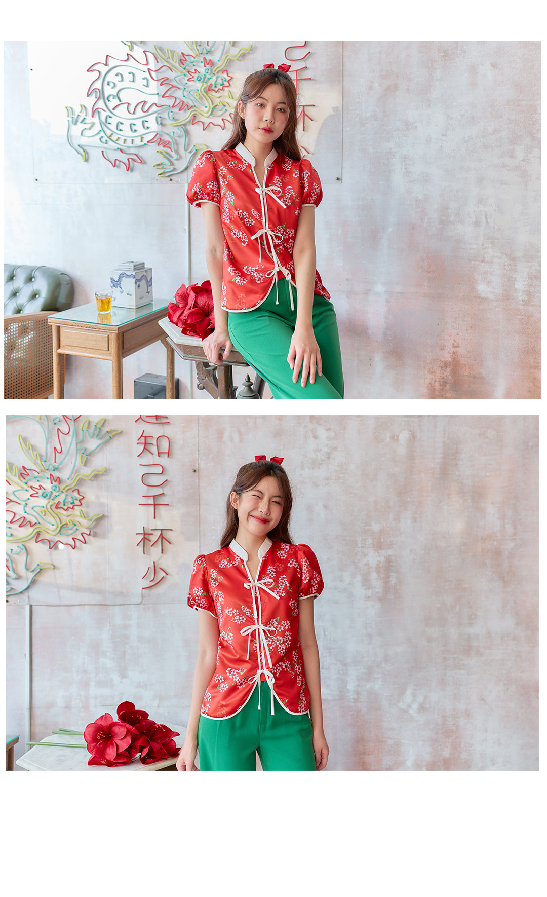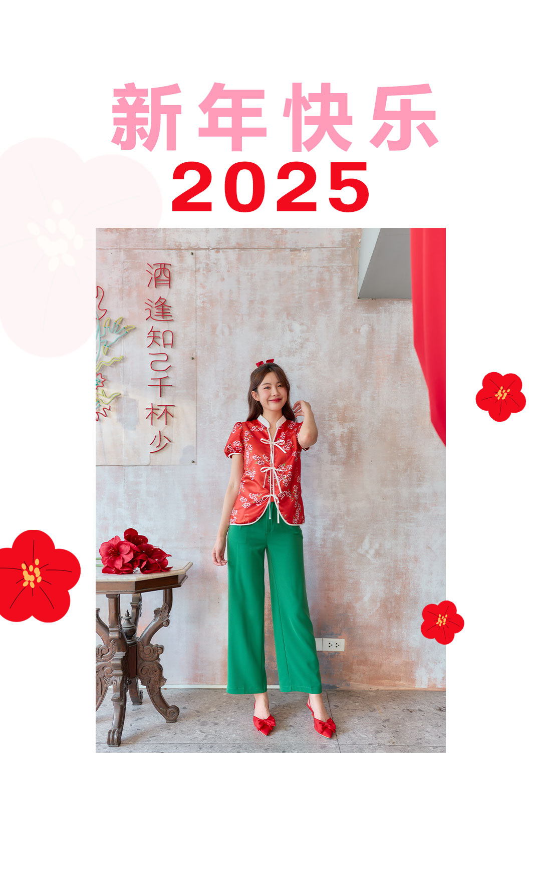 Premium Quality ไอเท็มที่ตั้งใจออกแบบมาในสไตส์ล้ำสมัย ดูโมเดิร์น สีแดงอมส้มสวยแจ่มว้าวเด่นมาก เป็นผ้าสั่งผลิตพิมพ์ลายเฉพาะของ Morningkiss ให้อารมณ์ตรุษจีนสุดๆ ใส่รับทรัพย์กันไปเลย ผ้าไหมซาตินใส่สบายมากๆ เนื้อลื่นเบาสบาย ไม่ร้อน ปริ้นดิจิตอลลายดอกไม้รอบตัว ปกจีนคอวี ใส่สบายไม่อึดอัด กุ๊นขอบด้วยสีขาวตัดกับตัวเสื้อได้อย่างลงตัว เป็นโบว์ผูกเรียงด้านหน้า ชายเสื้อด้านหน้าโค้ง ทรงใส่ง่ายแมทกับกางเกงแดงหรือกางเกงขาวก็น่ารัก งานตัดพรีเมียมขั้นสุด ซับในทั้งตัว จัดไปไม่ผิดหวังแน่นอนคะ การันตีงานสวยพรีเมียมมาก