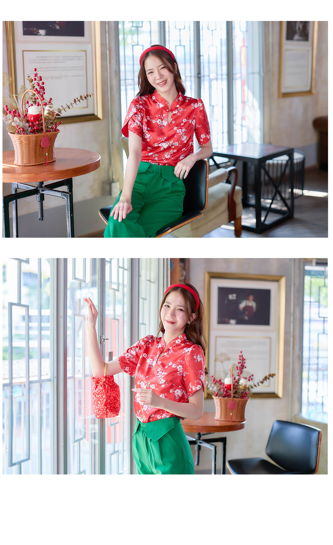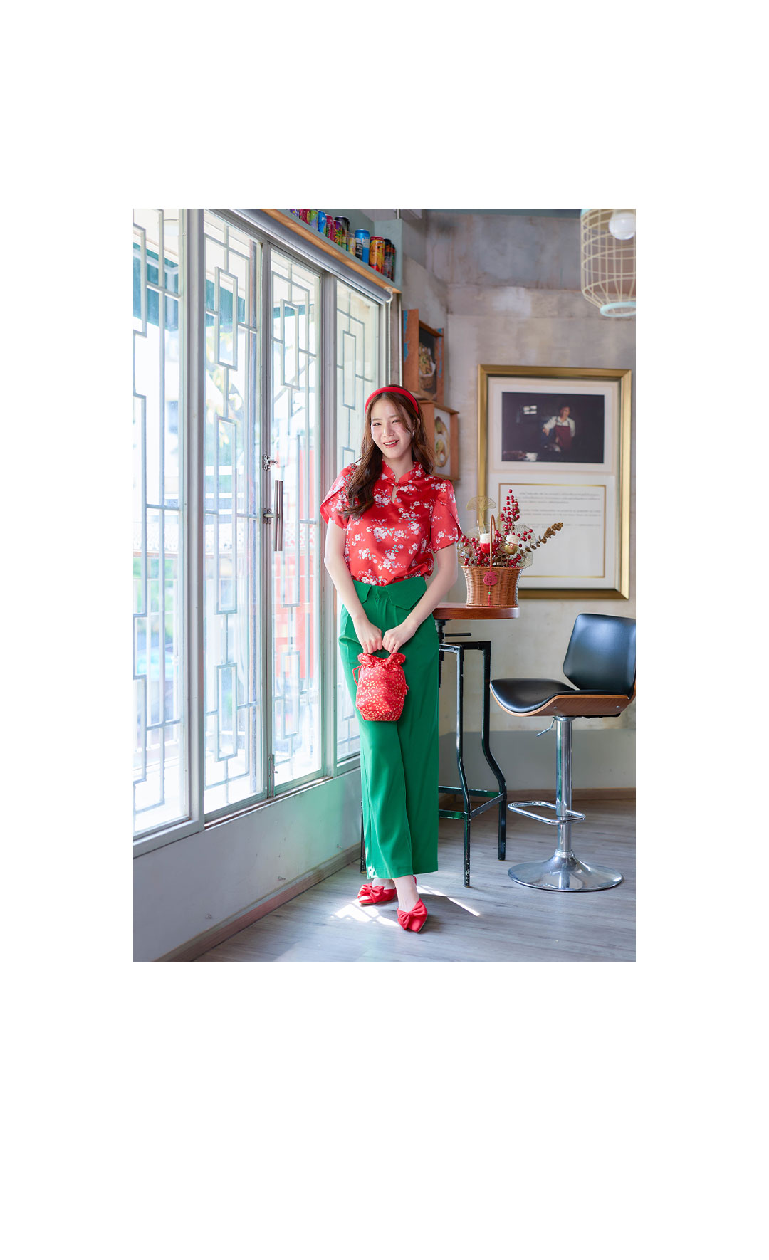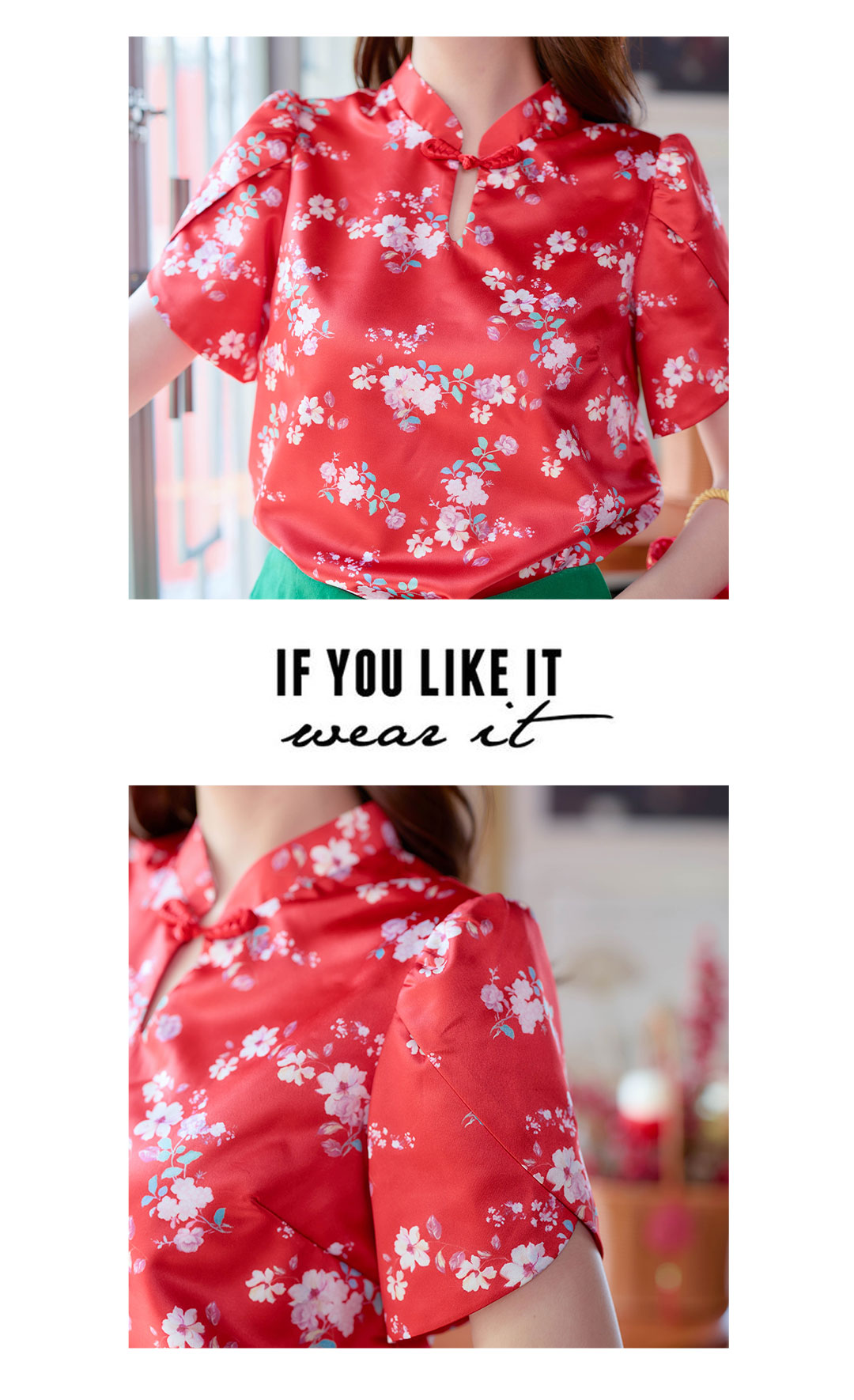 รุ่นนี้เลือกใช้ผ้าไหมซาตินลายดอกโทนหวานๆ เป็นลายดอกสีขาวตัดกับพื้นสีส้ม ให้อารมณ์ตรุษจีนสุดๆ ใส่รับทรัพย์กันไปเลย กับ เสื้อคอจีนลายดอก ทรงแขนกลีบบัว ติดกระดุมจีนช่วงคอ ทรงใส่ง่ายแมทกับกางเกงแดงหรือกางเกงขาก็น่ารัก งานตัดพรีเมียม ซับในทั้งตัว จัดไปไม่ผิดหวังแน่นอนคะ การันตีเลย