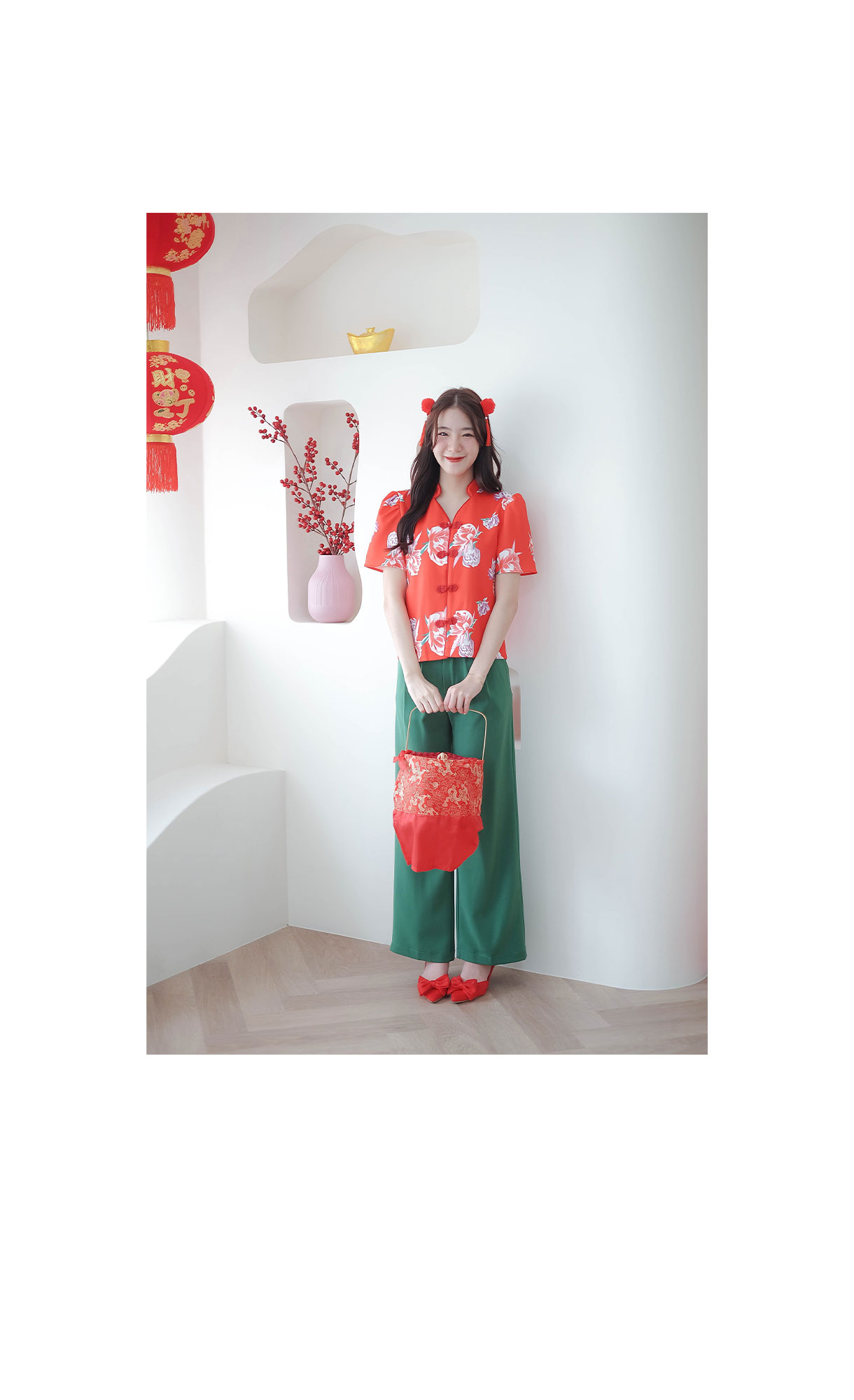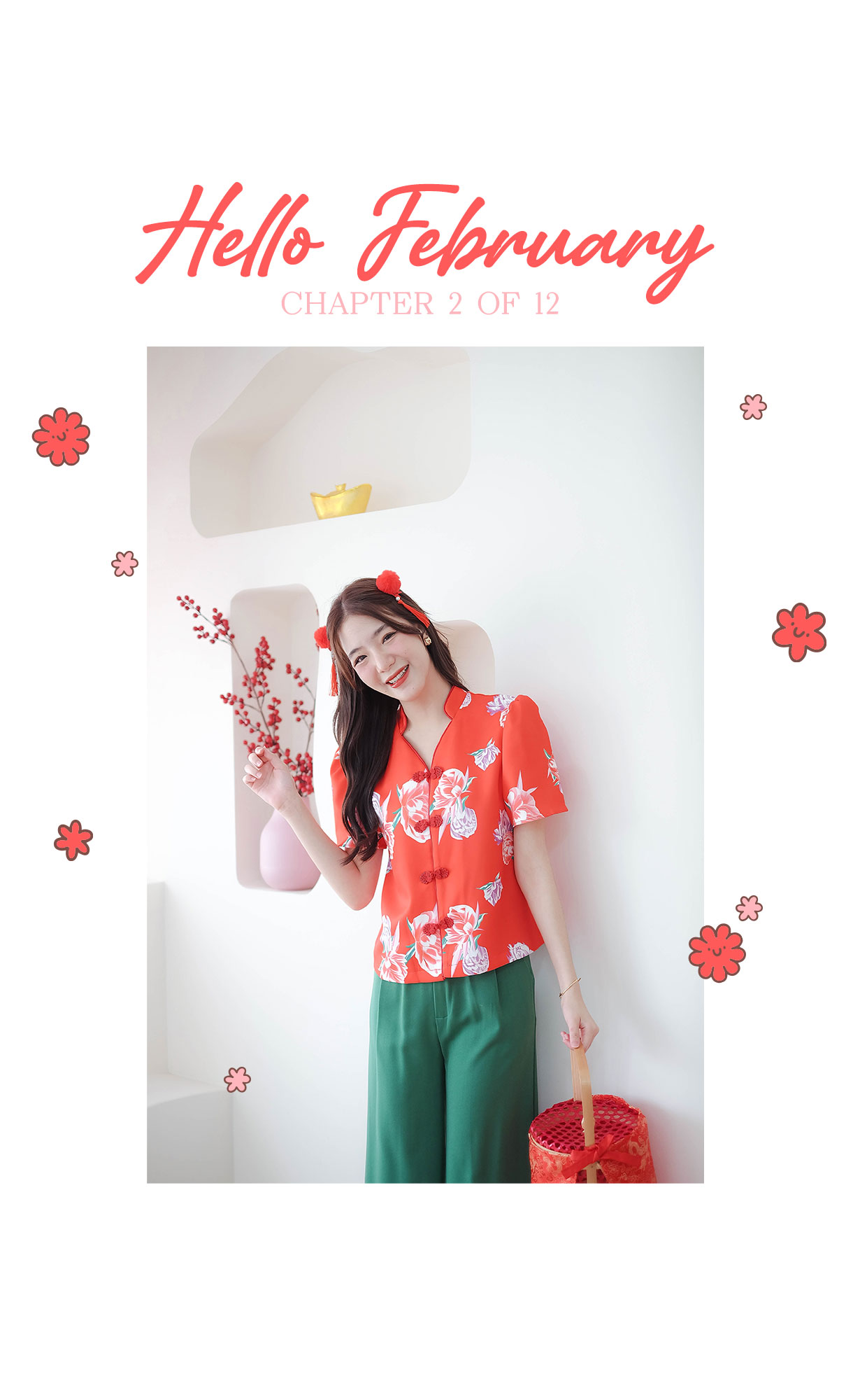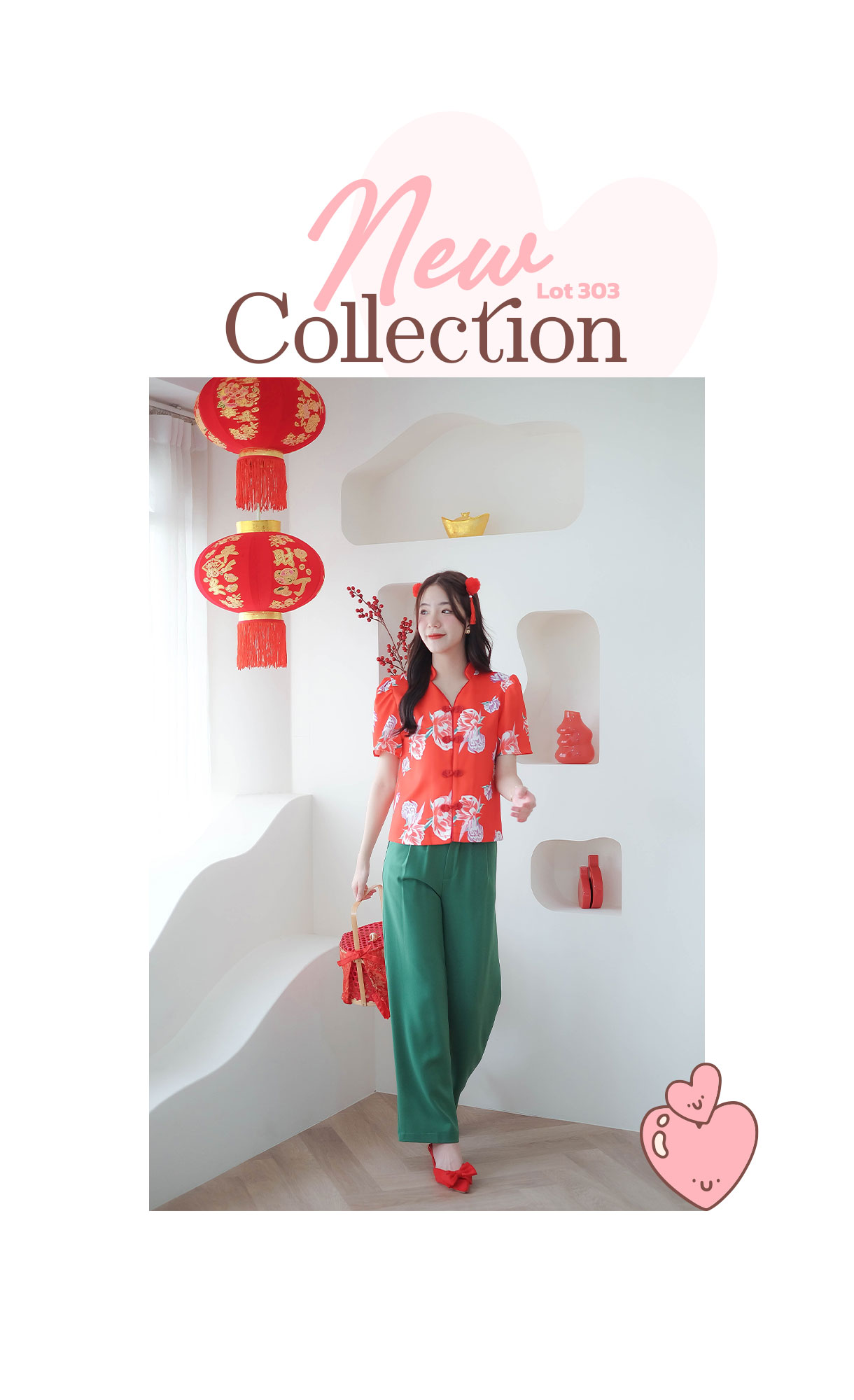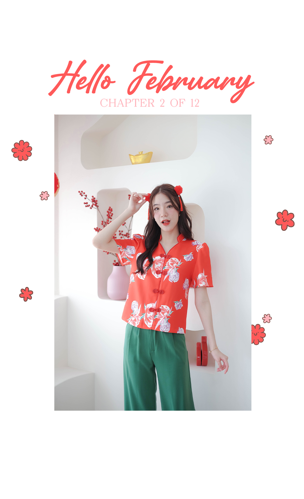 เสื้อคอจีนใส่รับอั่งเปาปีนี้ โทนสีแดงอมส้ม กุ๊นขอบด้วยสีแดง งานปริ้นลายดอกใหญ่หวานๆ แต่งกระดุมจีนสีแดงเรียงด้านหน้า ทรงใส่ง่ายแมทกับกระโปรงกางเกงได้หมด จัดไปใส่ตรุษจีนนี้รับทรัพย์ เฮงๆ กันได้เลย
