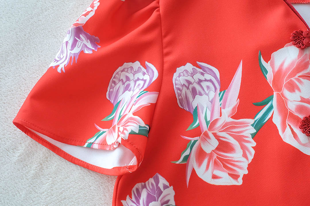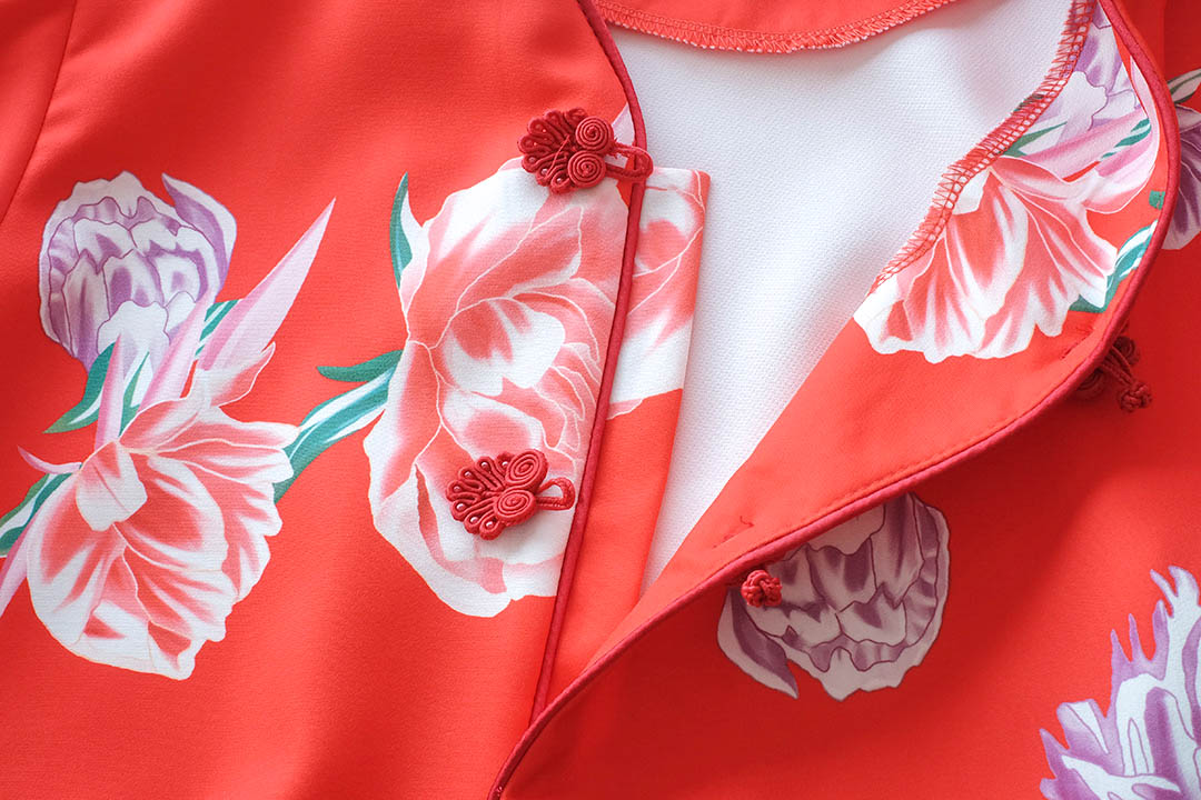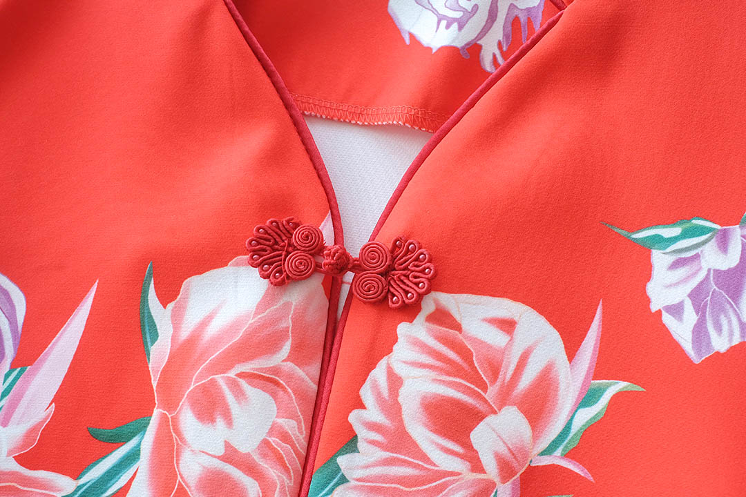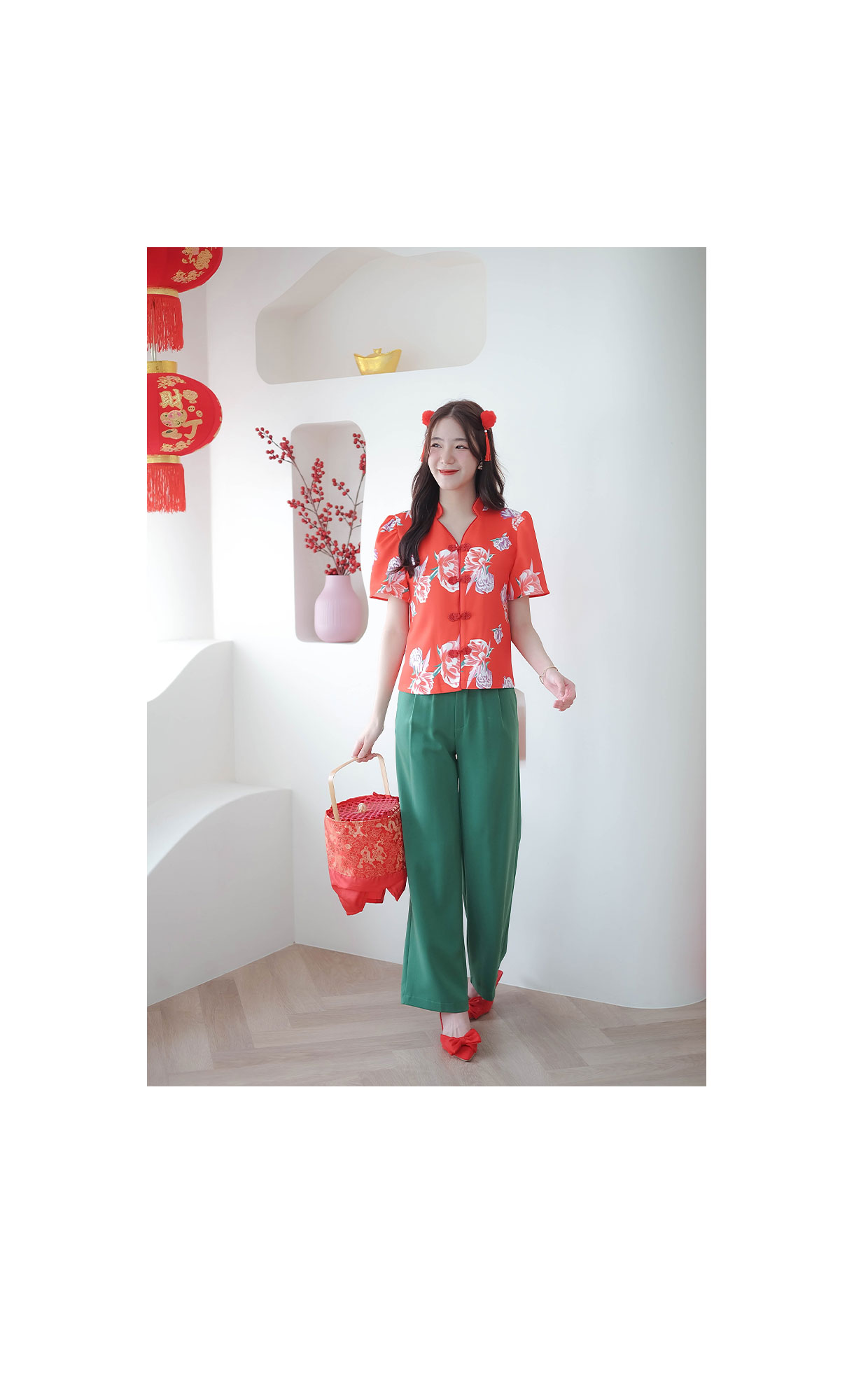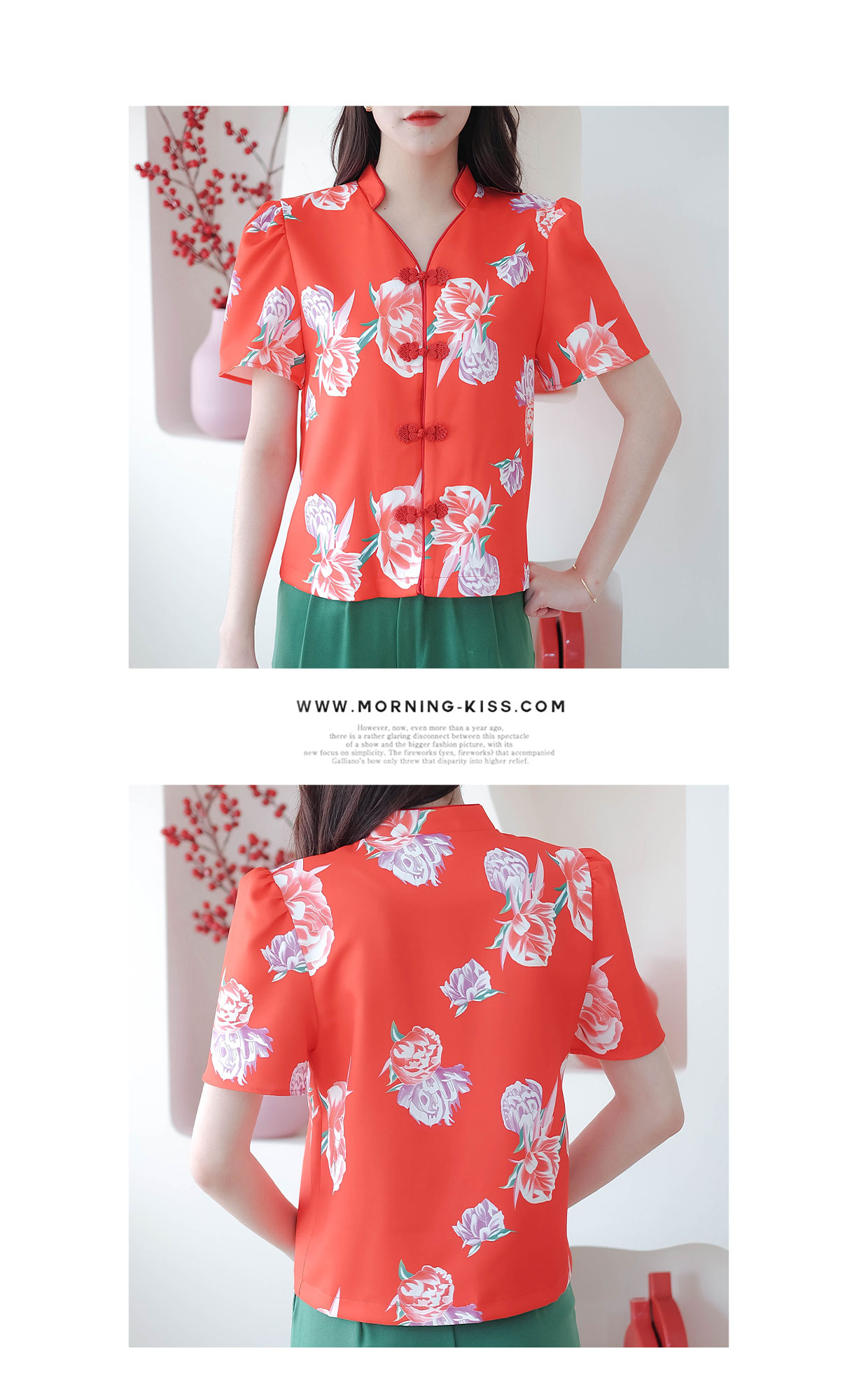 เสื้อคอจีนใส่รับอั่งเปาปีนี้ โทนสีแดงอมส้ม กุ๊นขอบด้วยสีแดง งานปริ้นลายดอกใหญ่หวานๆ แต่งกระดุมจีนสีแดงเรียงด้านหน้า ทรงใส่ง่ายแมทกับกระโปรงกางเกงได้หมด จัดไปใส่ตรุษจีนนี้รับทรัพย์ เฮงๆ กันได้เลย